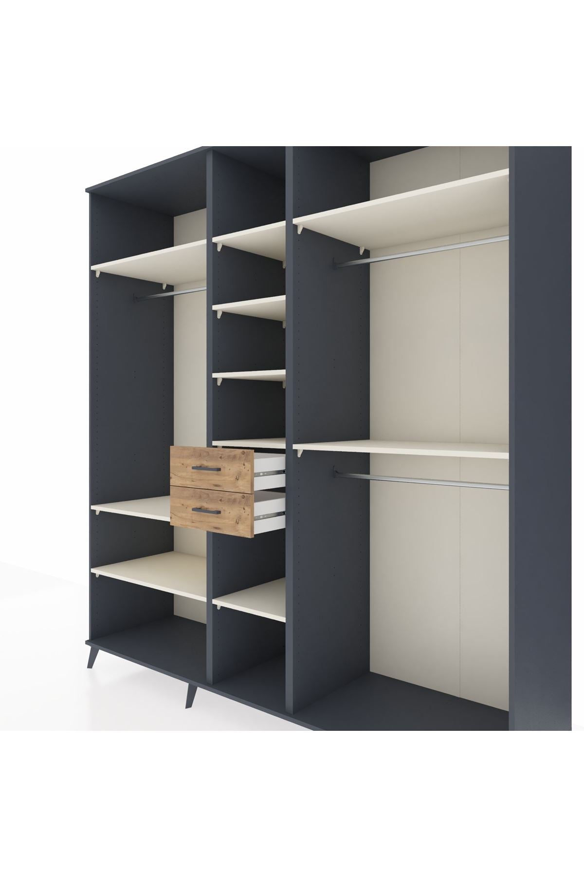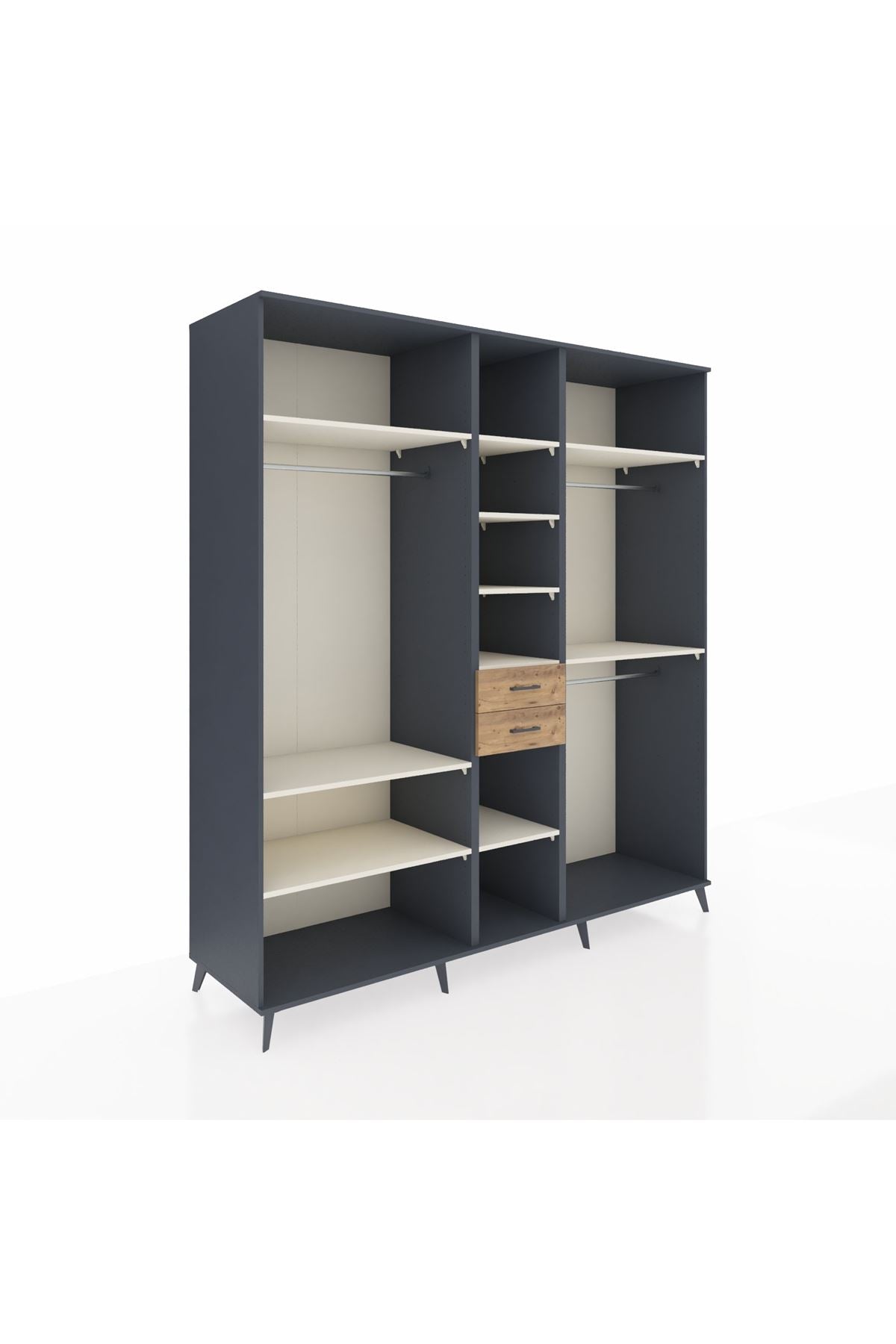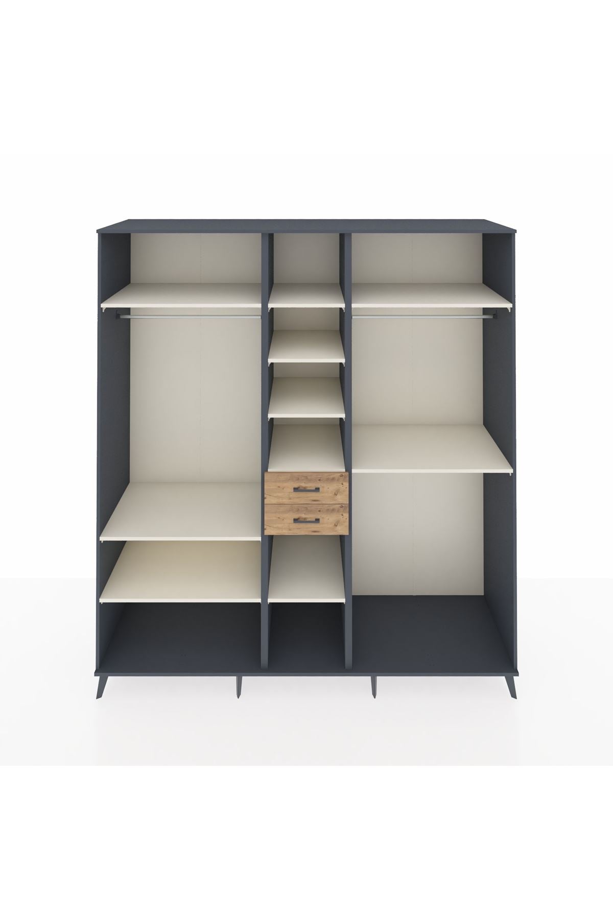 Kronos Dolap 10 Raflı 2 Çekmeceli 3 Askılı 220x59x243 Antrasit-Aytaşı/Çam