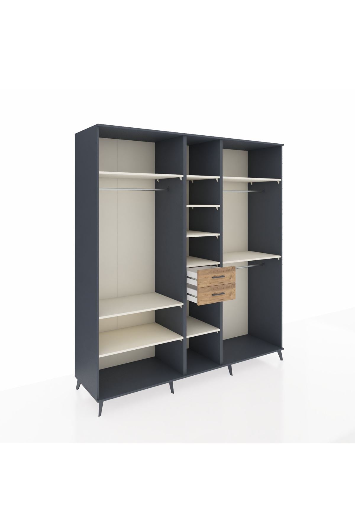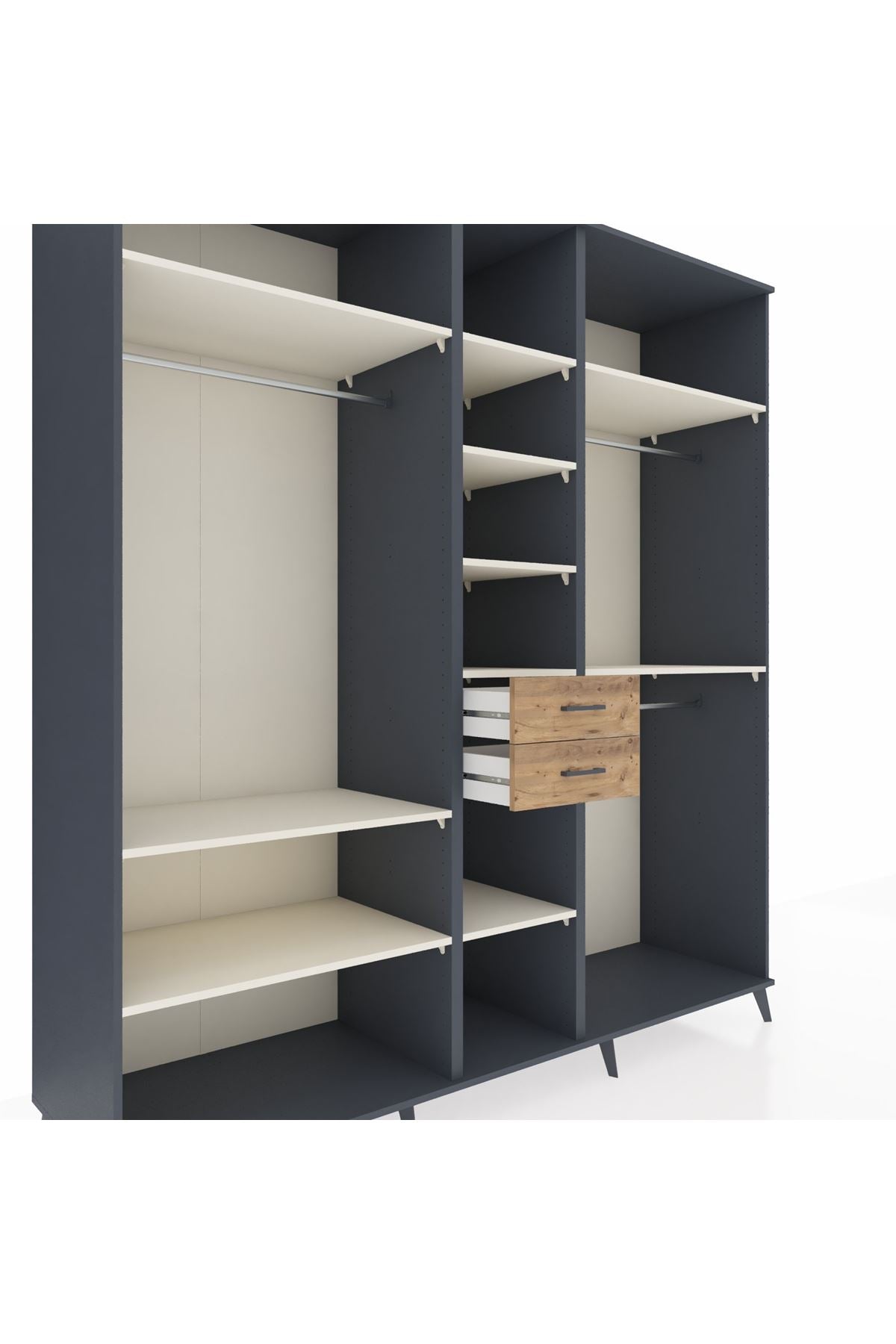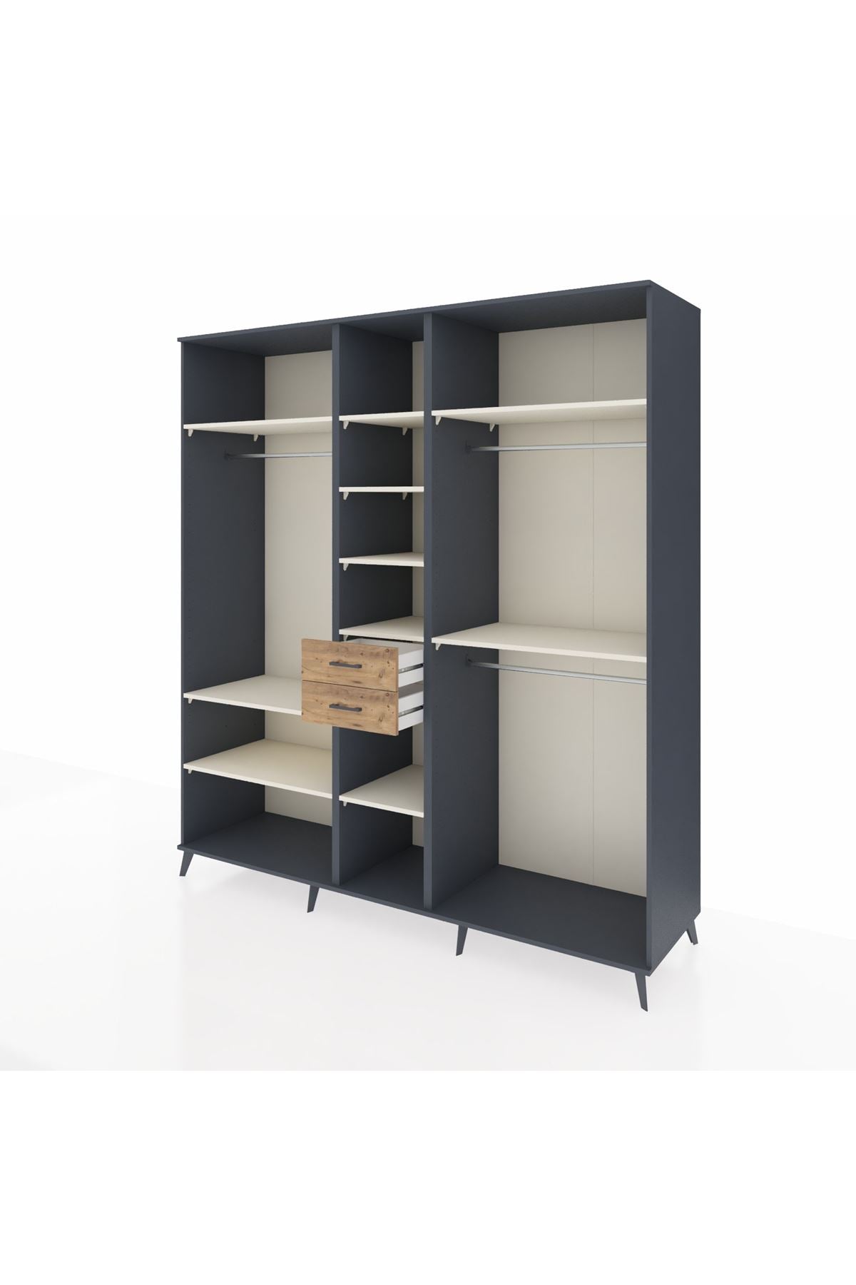 Kronos Dolap 10 Raflı 2 Çekmeceli 3 Askılı 220x59x243 Antrasit-Aytaşı/Çam