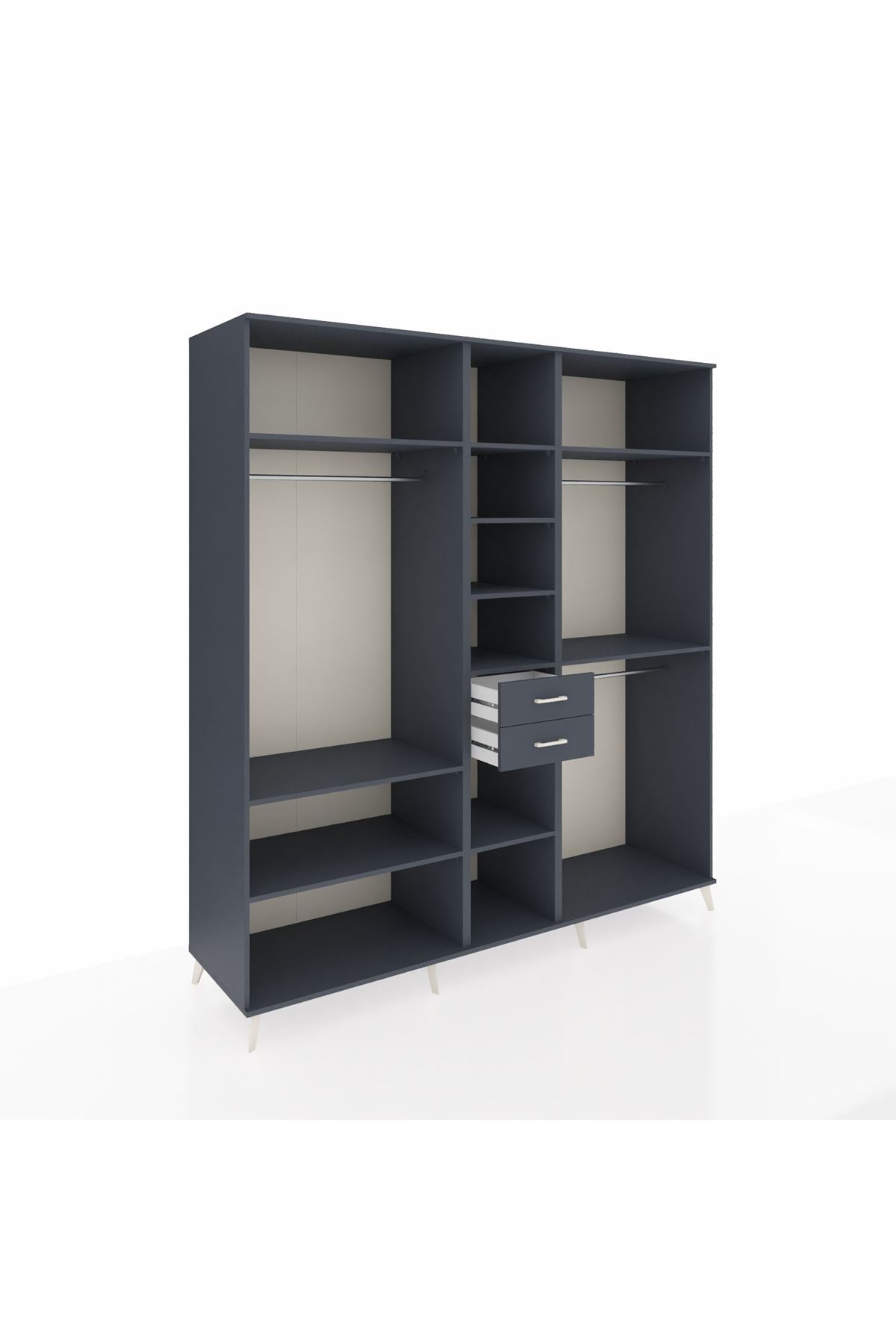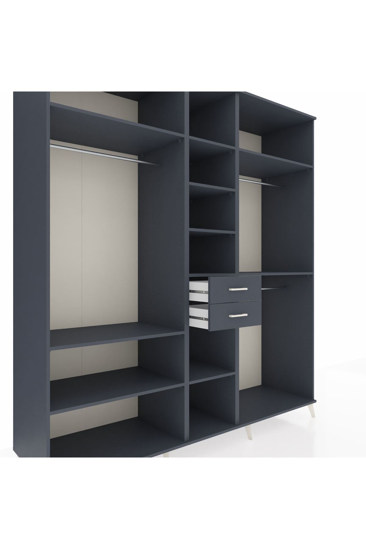 Kronos Dolap 10 Raflı 2 Çekmeceli 3 Askılı 220x59x243 Antrasit-Antrasit/Antrasit