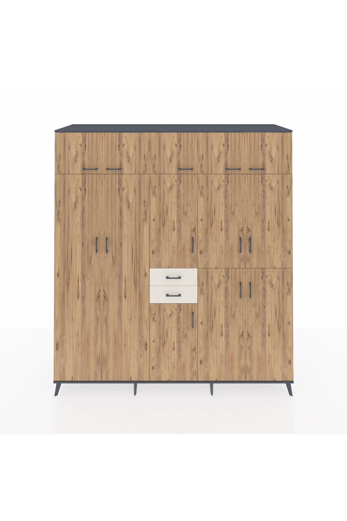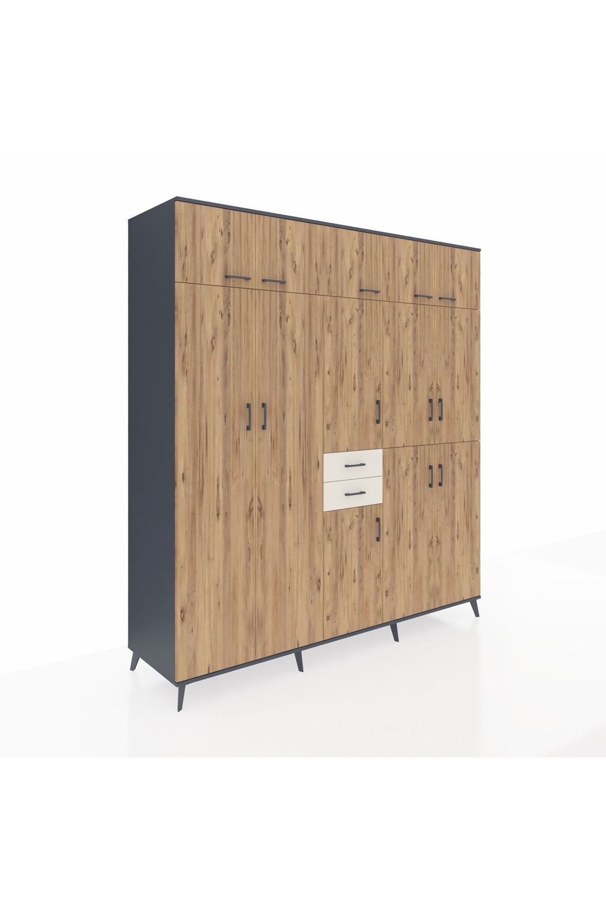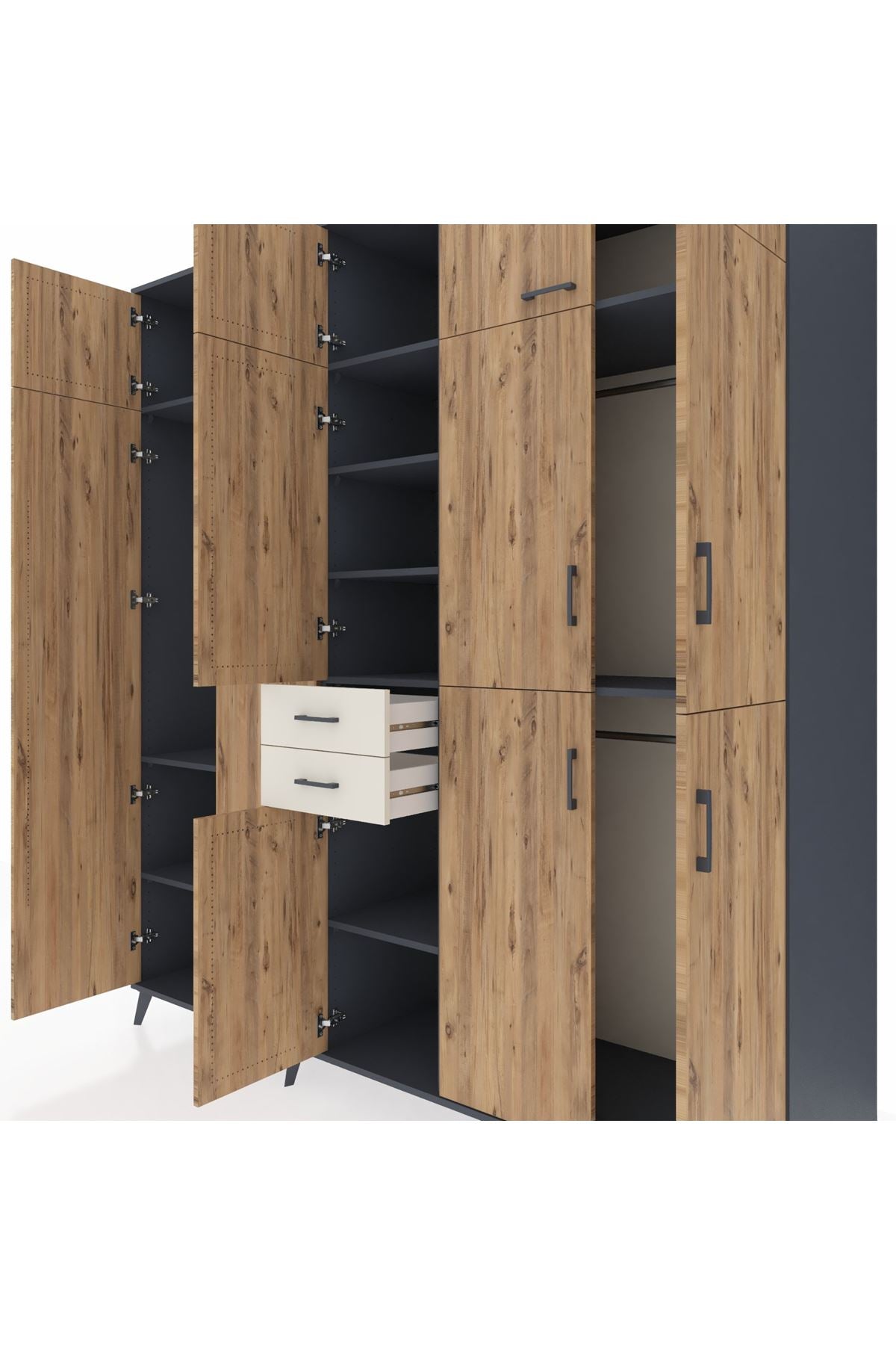Kronos Dolap 10 Raflı 2 Çekmeceli 3 Askılı 220x59x243 Antrasit-Çam/Aytaşı