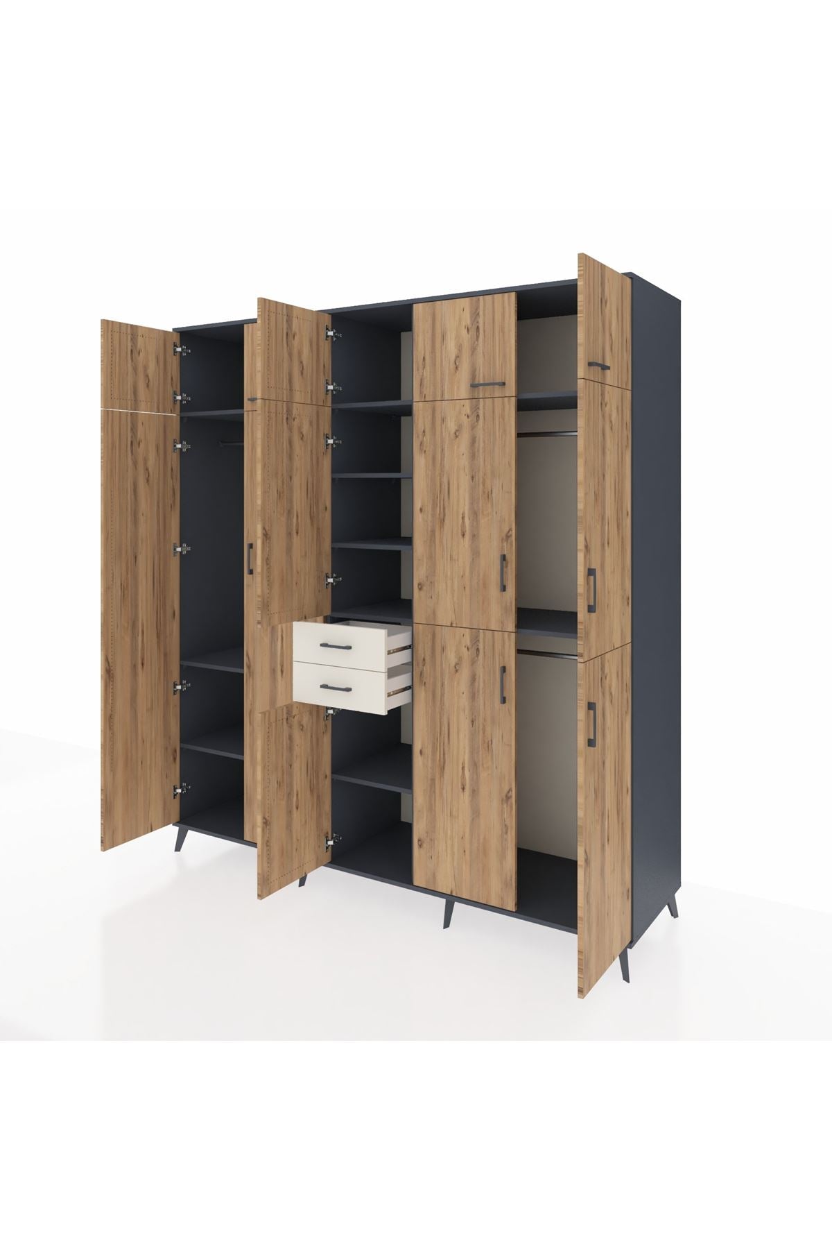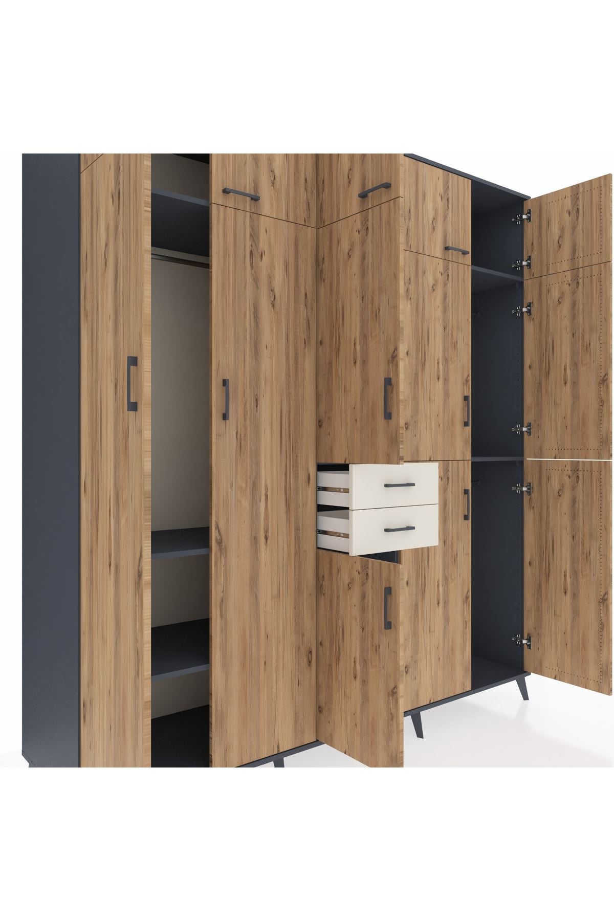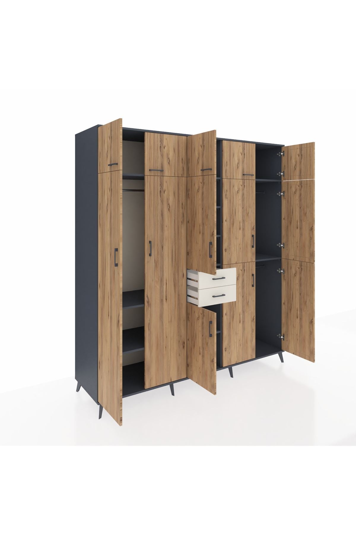 Kronos Dolap 10 Raflı 2 Çekmeceli 3 Askılı 220x59x243 Antrasit-Çam/Aytaşı