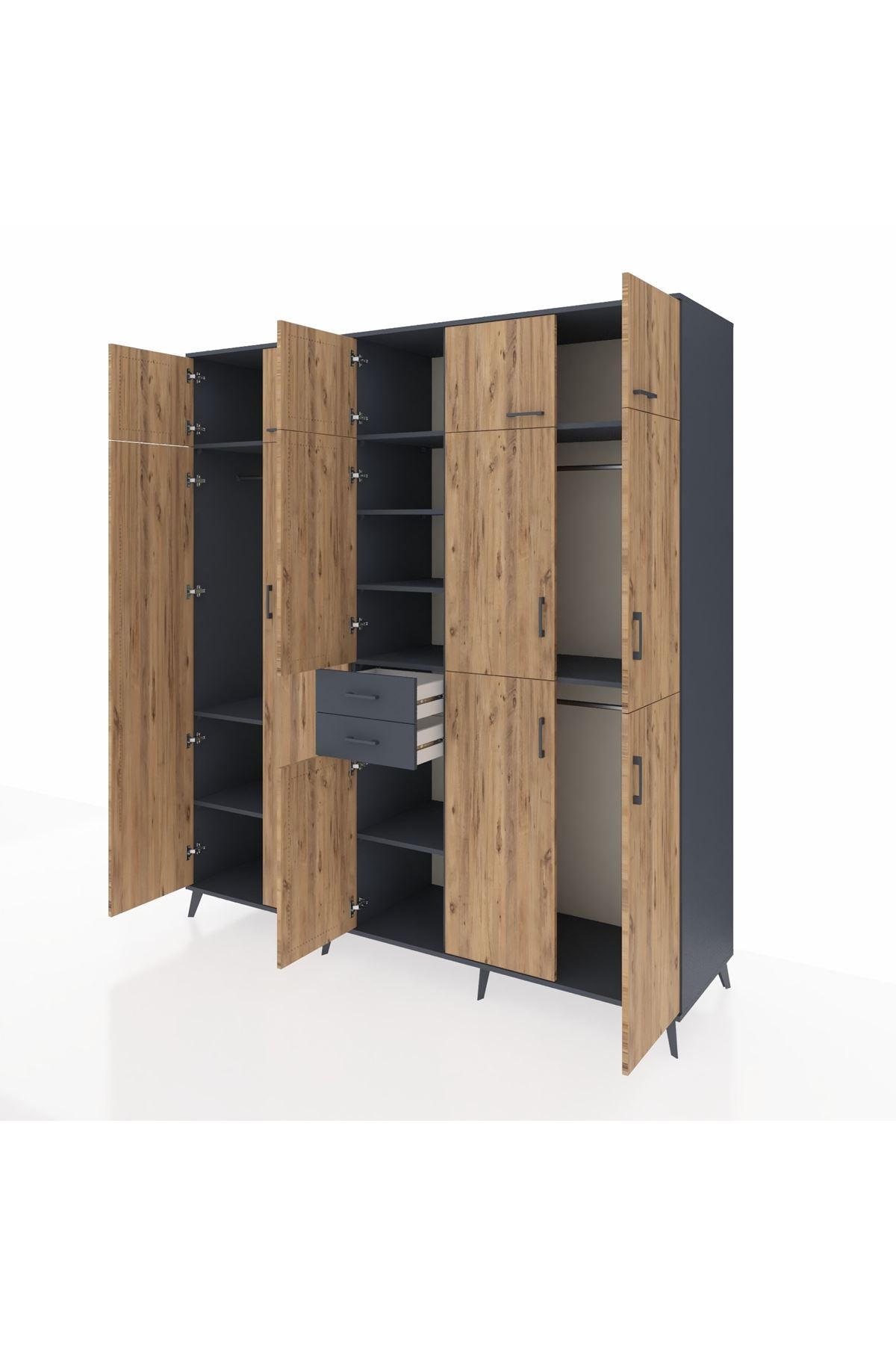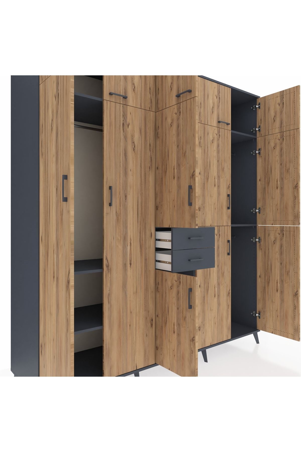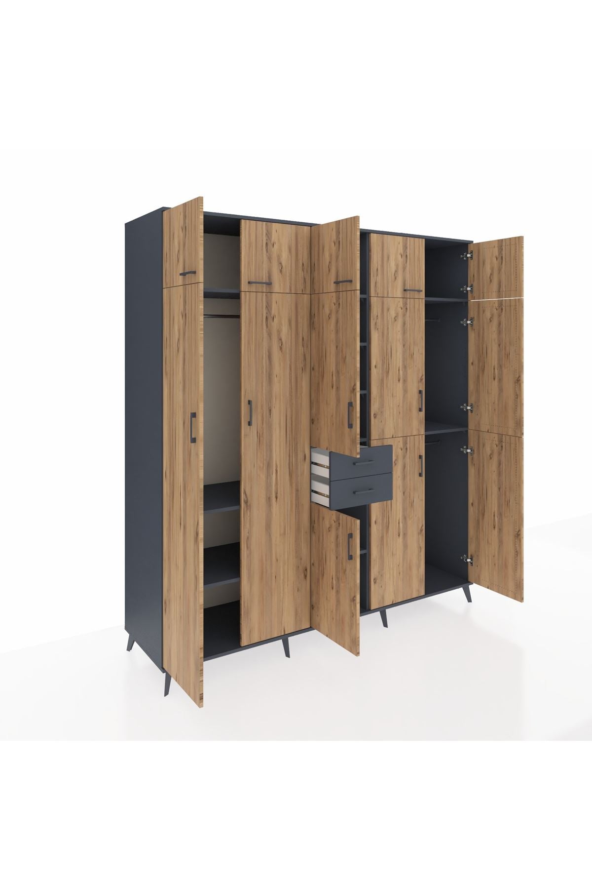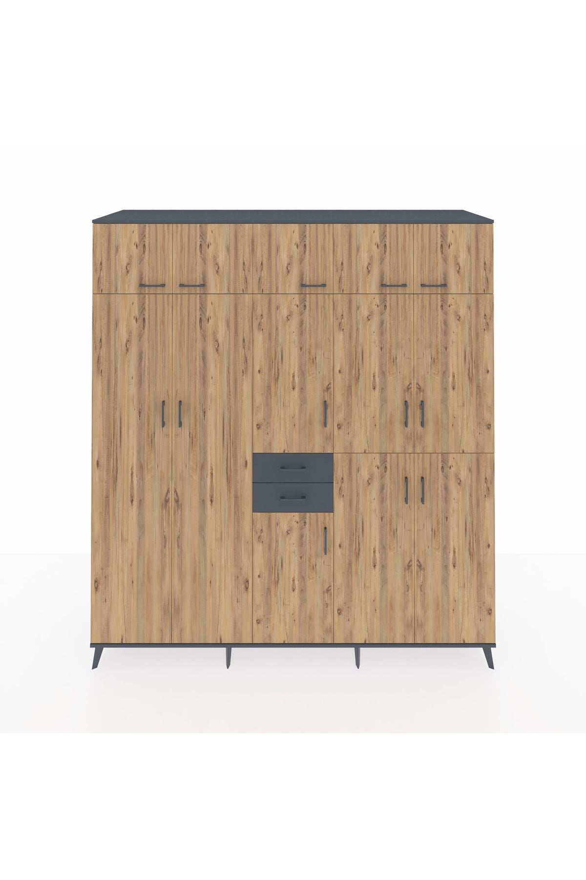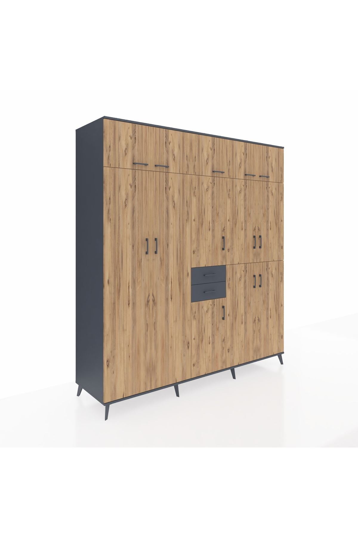 Kronos Dolap 10 Raflı 2 Çekmeceli 3 Askılı 220x59x243 Antrasit-Çam/Antrasit
