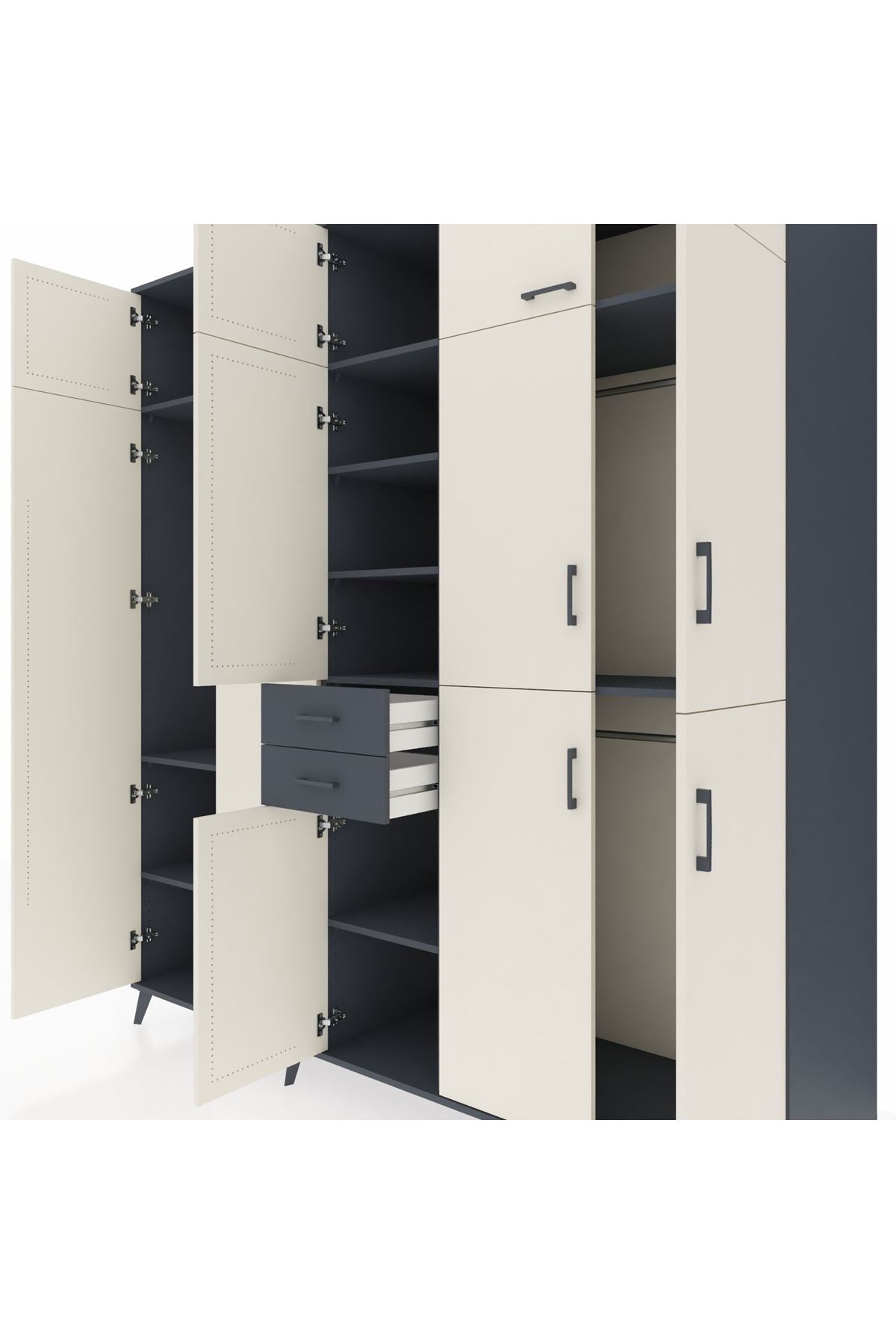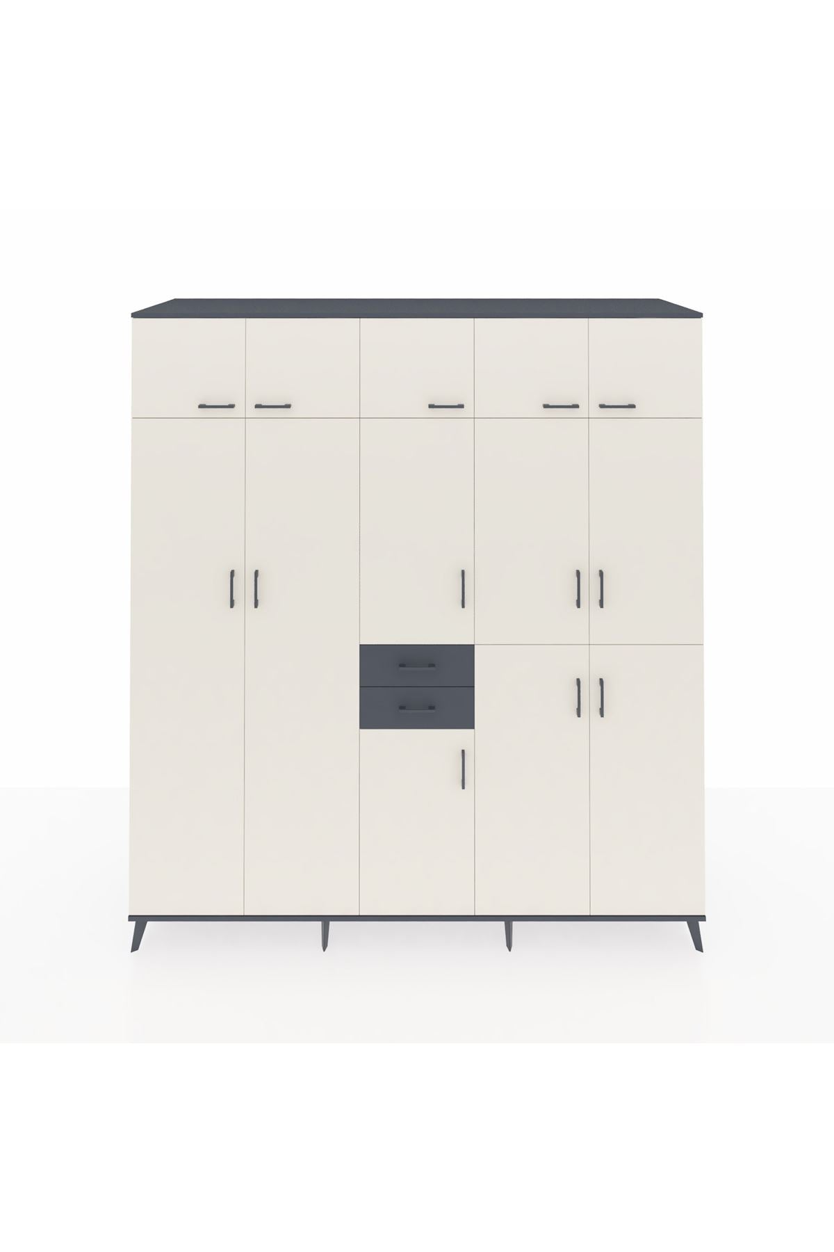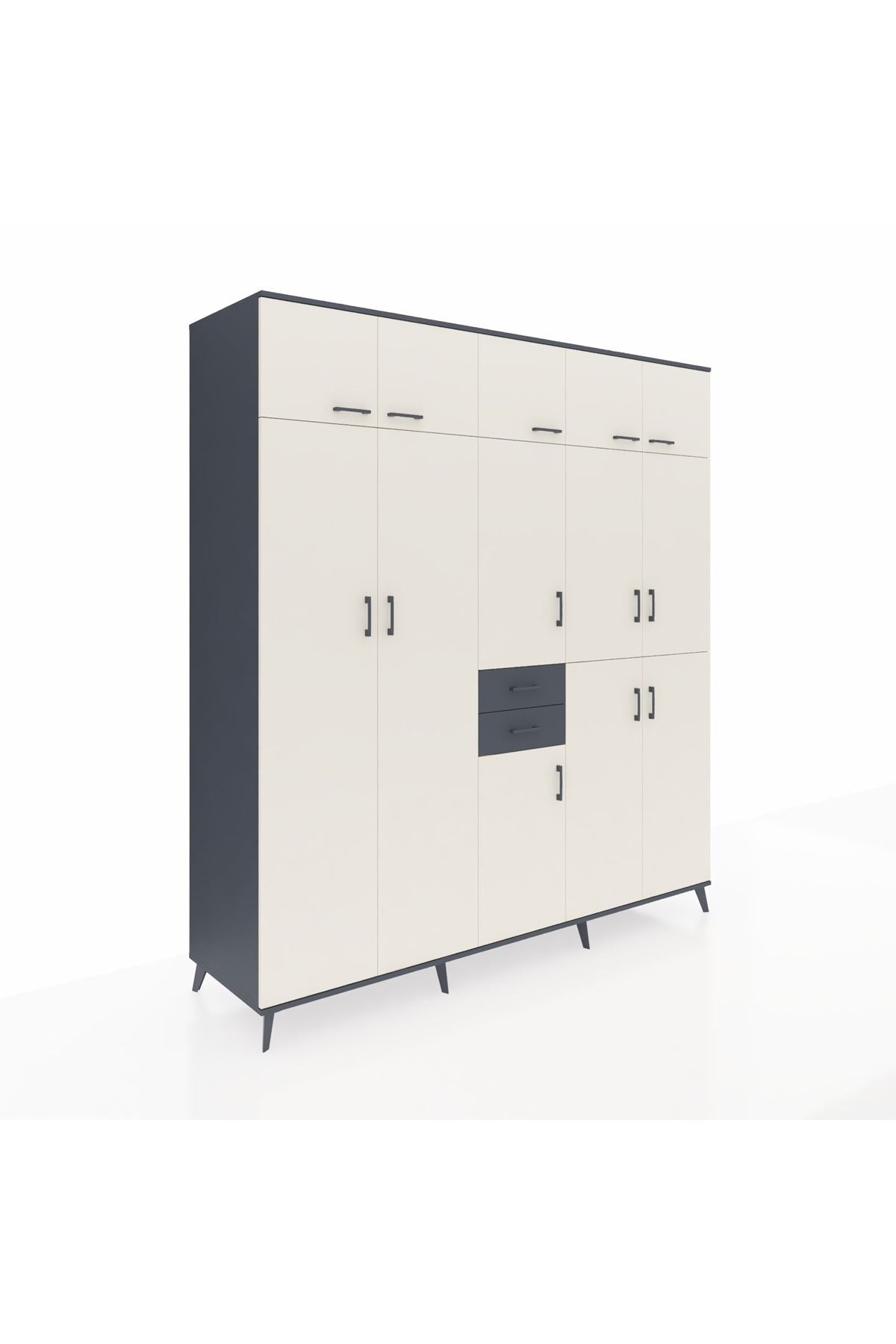 Kronos Dolap 10 Raflı 2 Çekmeceli 3 Askılı 220x59x243 Antrasit-Aytaşı/Antrasit