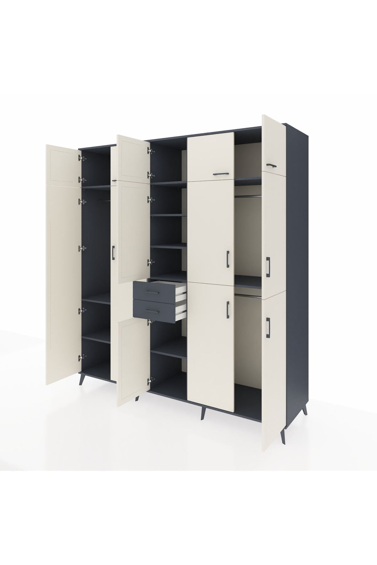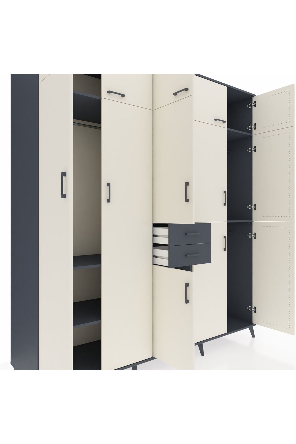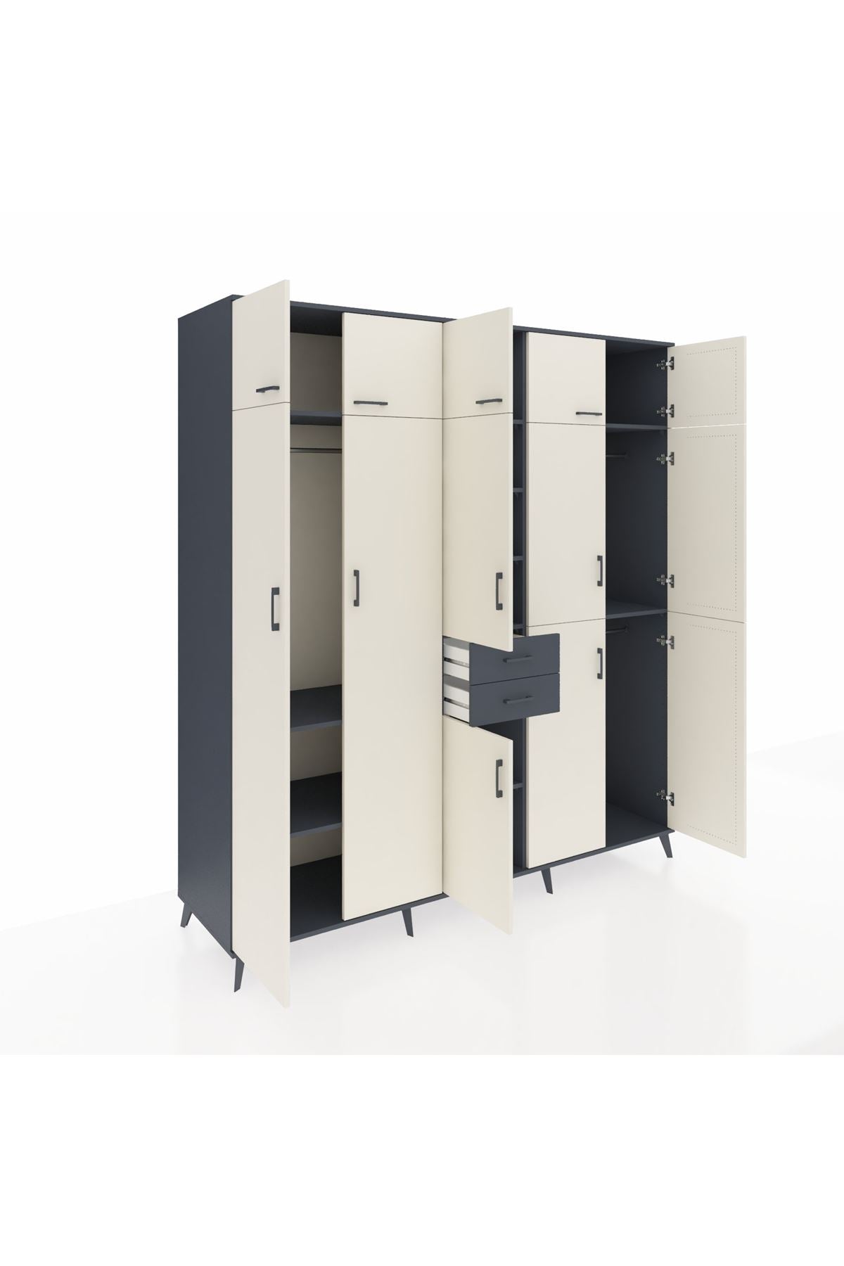 Kronos Dolap 10 Raflı 2 Çekmeceli 3 Askılı 220x59x243 Antrasit-Aytaşı/Antrasit