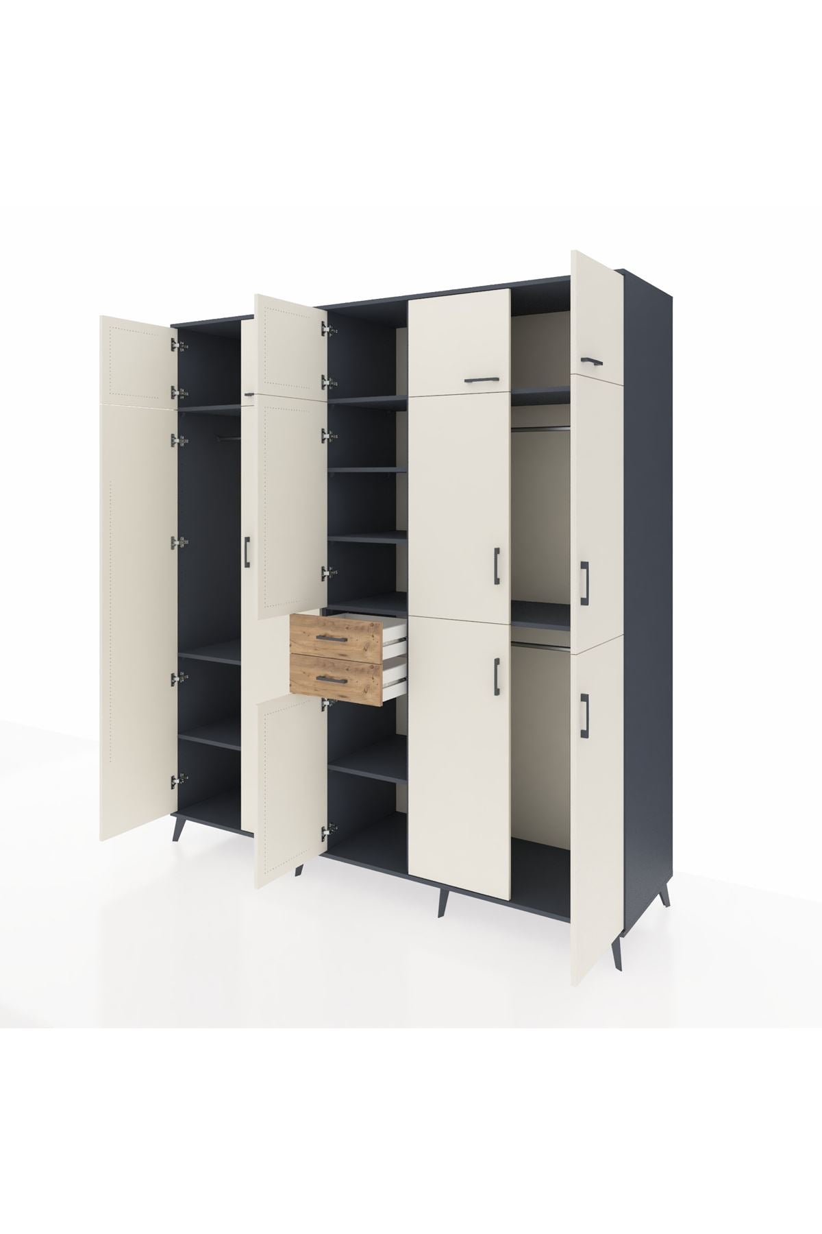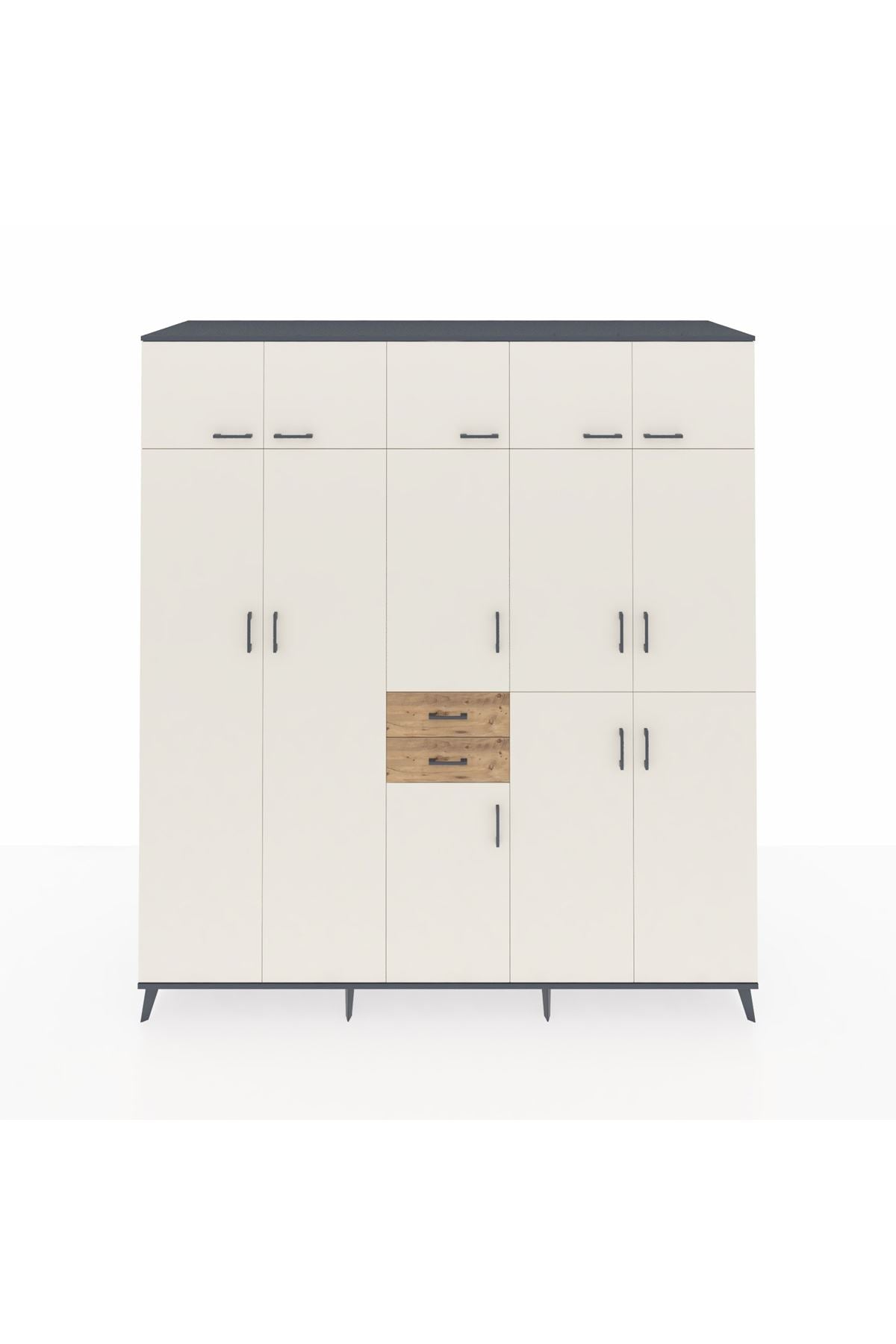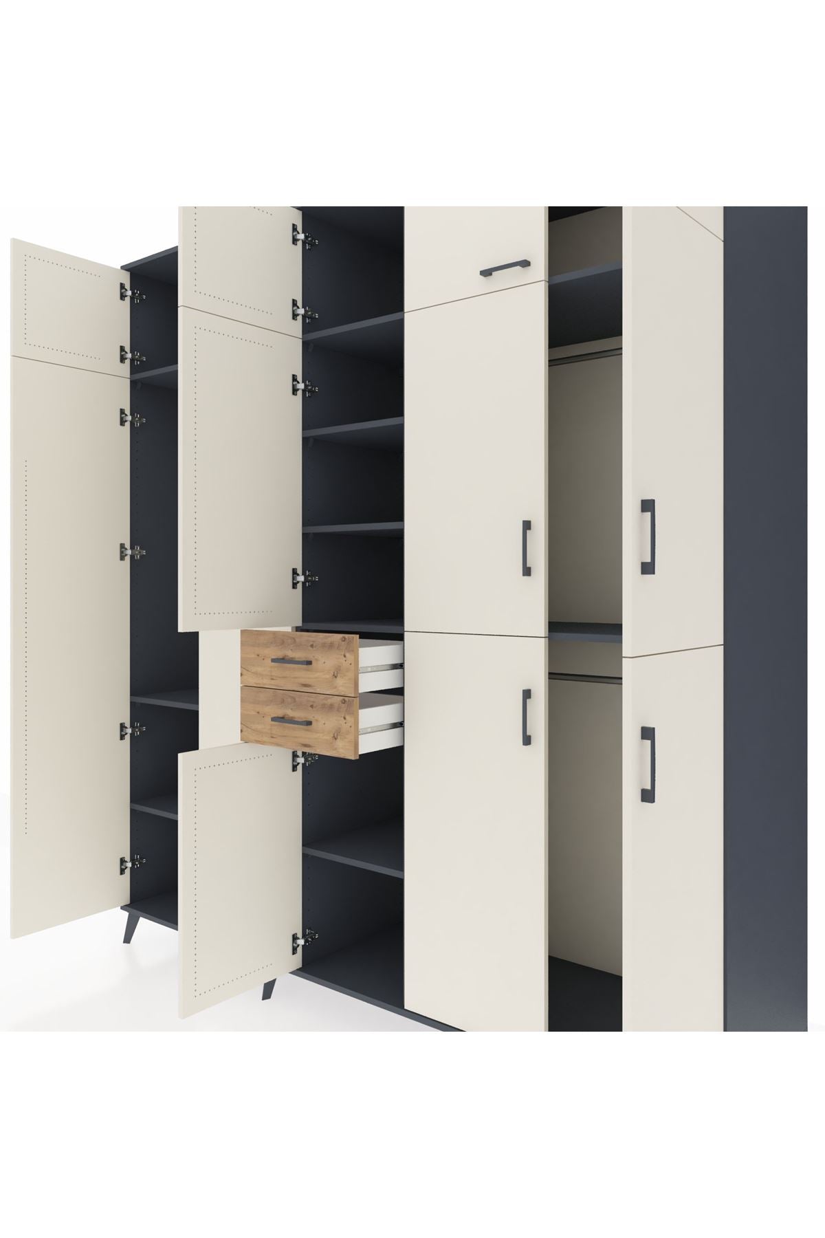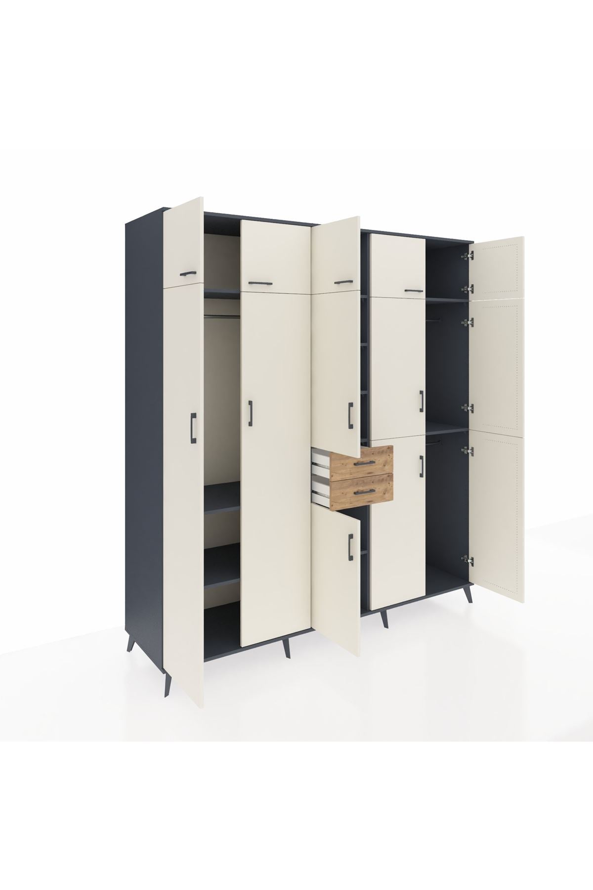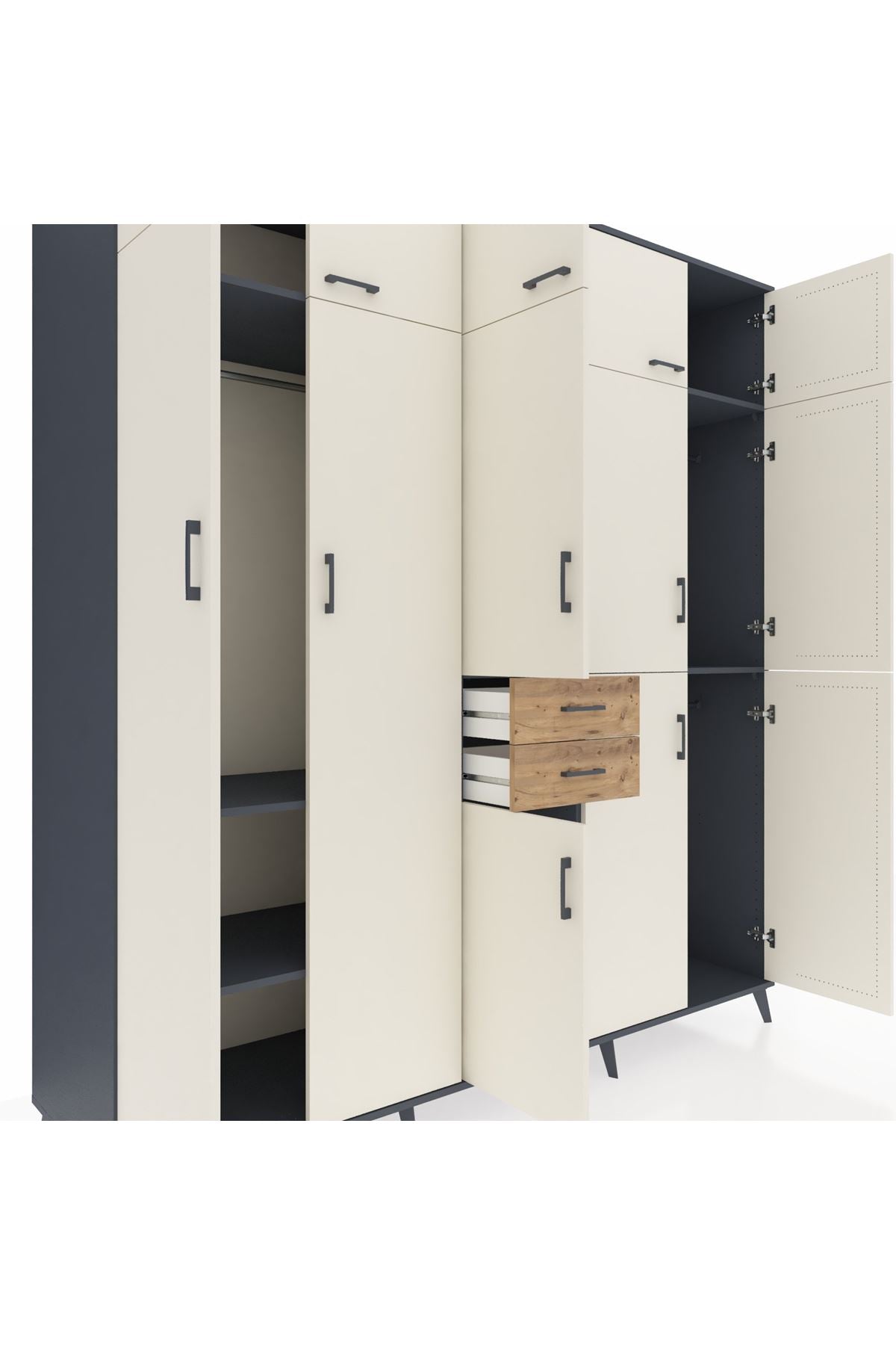Kronos Dolap 10 Raflı 2 Çekmeceli 3 Askılı 220x59x243 Antrasit-Aytaşı/Çam