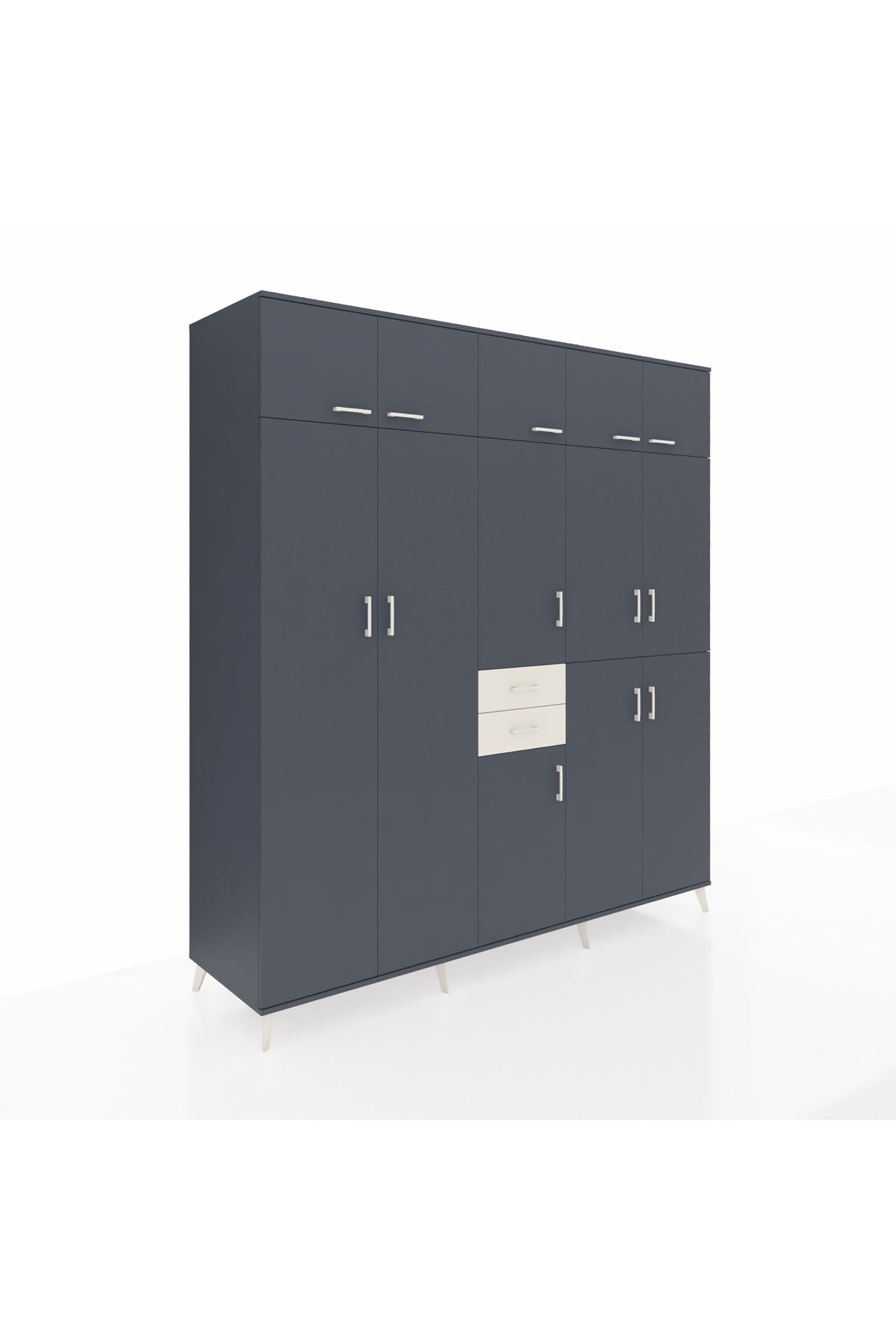 Kronos Dolap 10 Raflı 2 Çekmeceli 3 Askılı 220x59x243 Antrasit-Antrasit/Aytaşı