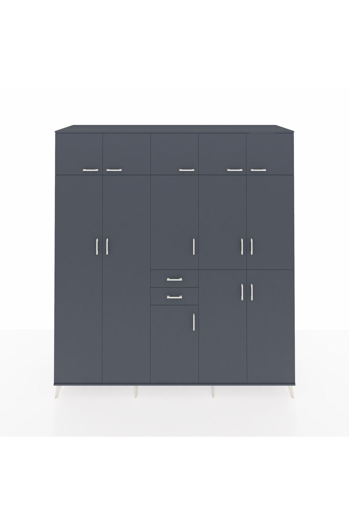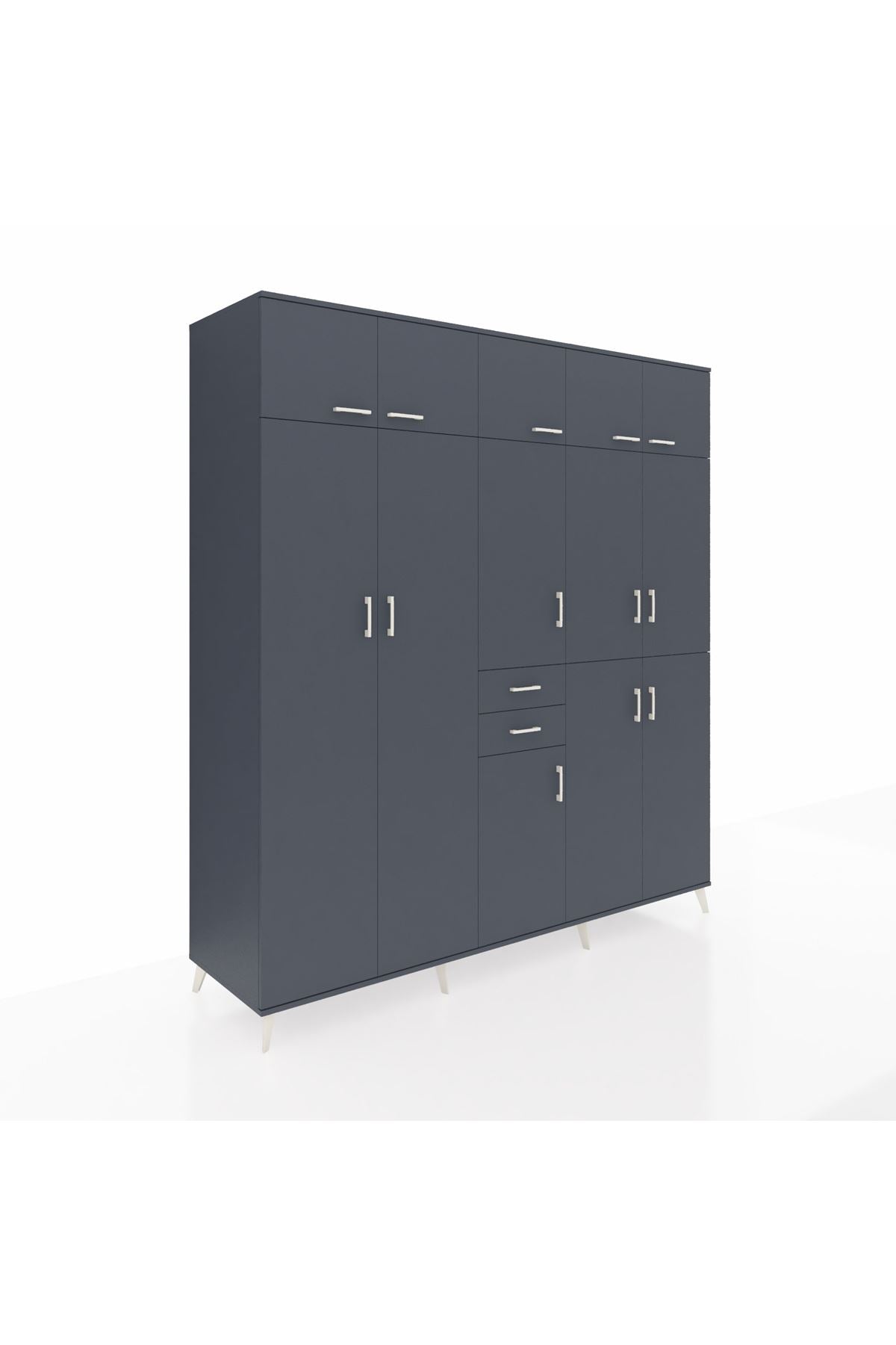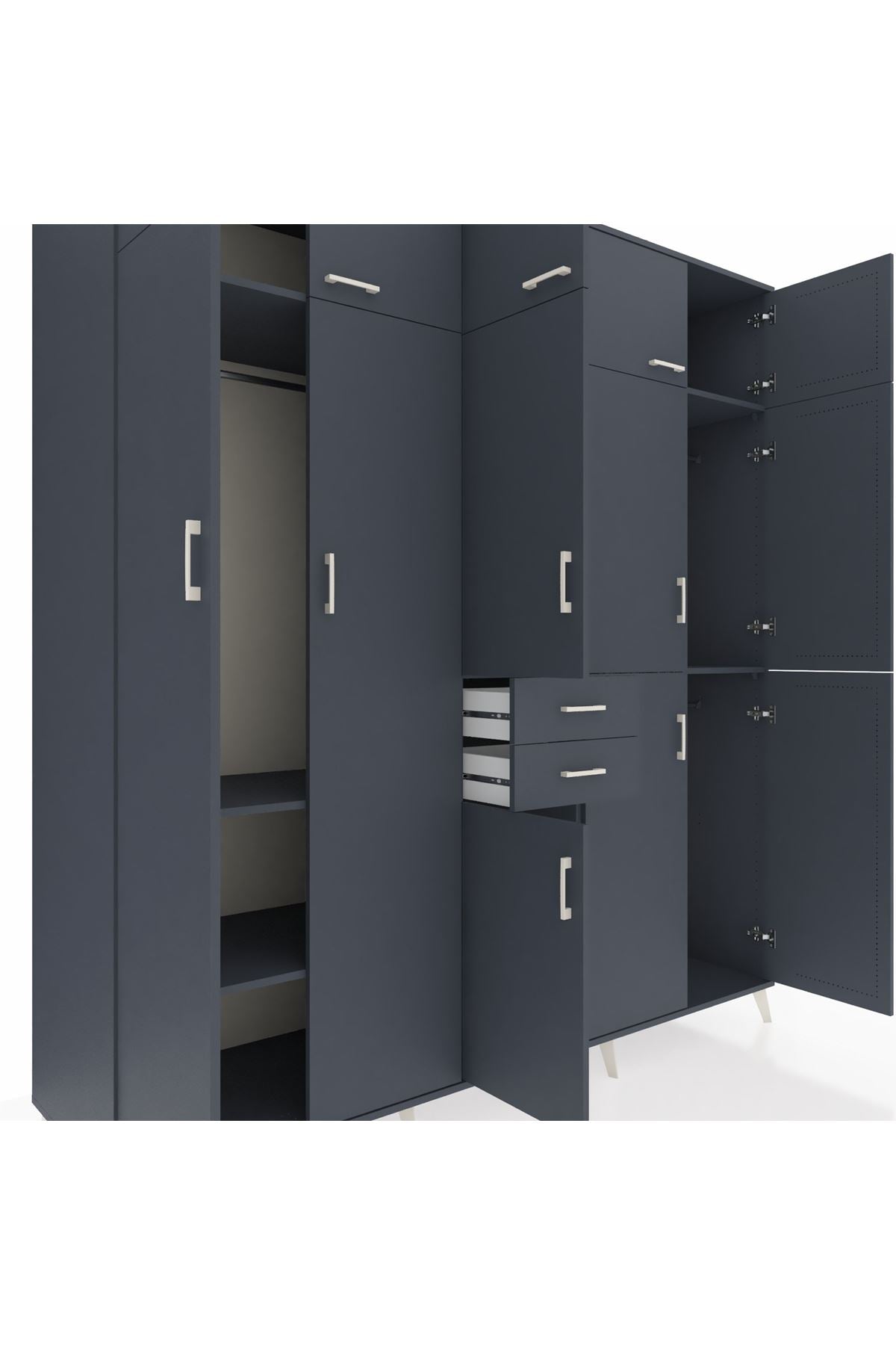Kronos Dolap 10 Raflı 2 Çekmeceli 3 Askılı 220x59x243 Antrasit-Antrasit/Antrasit
