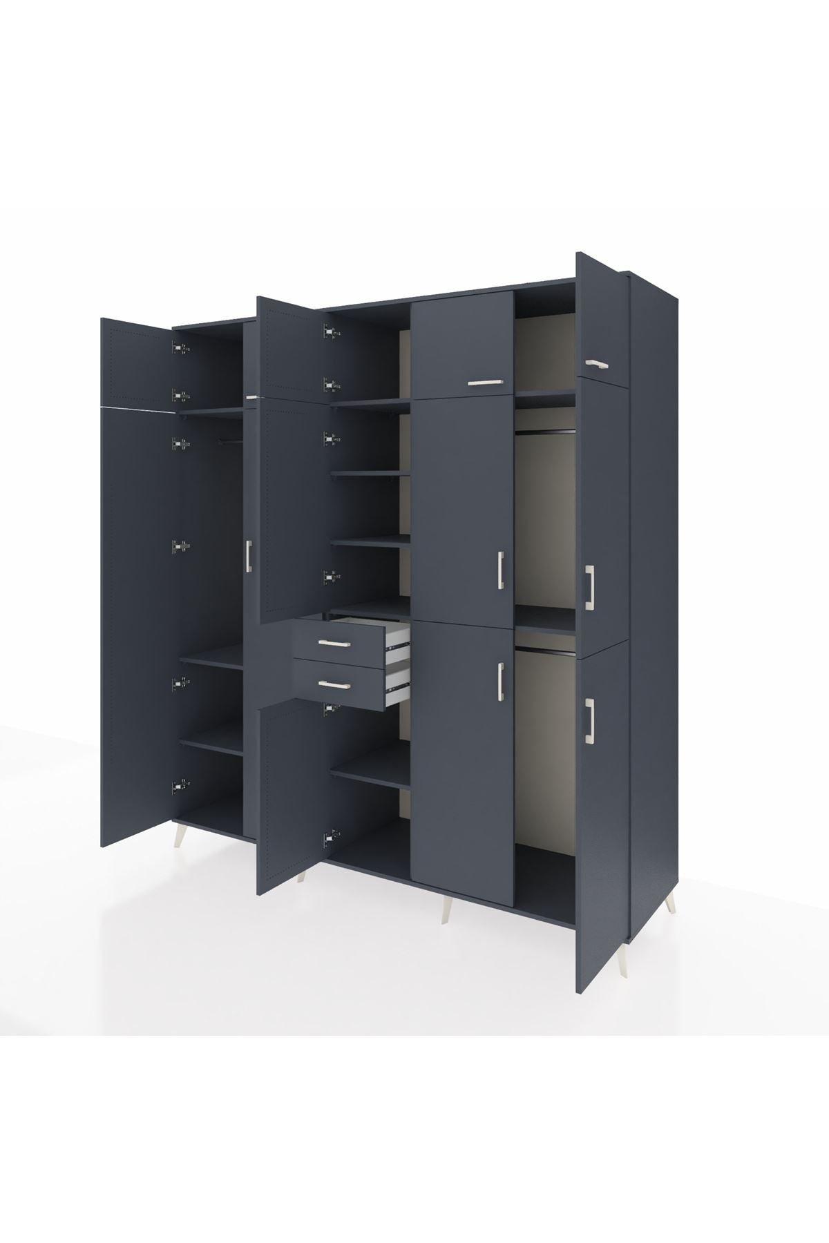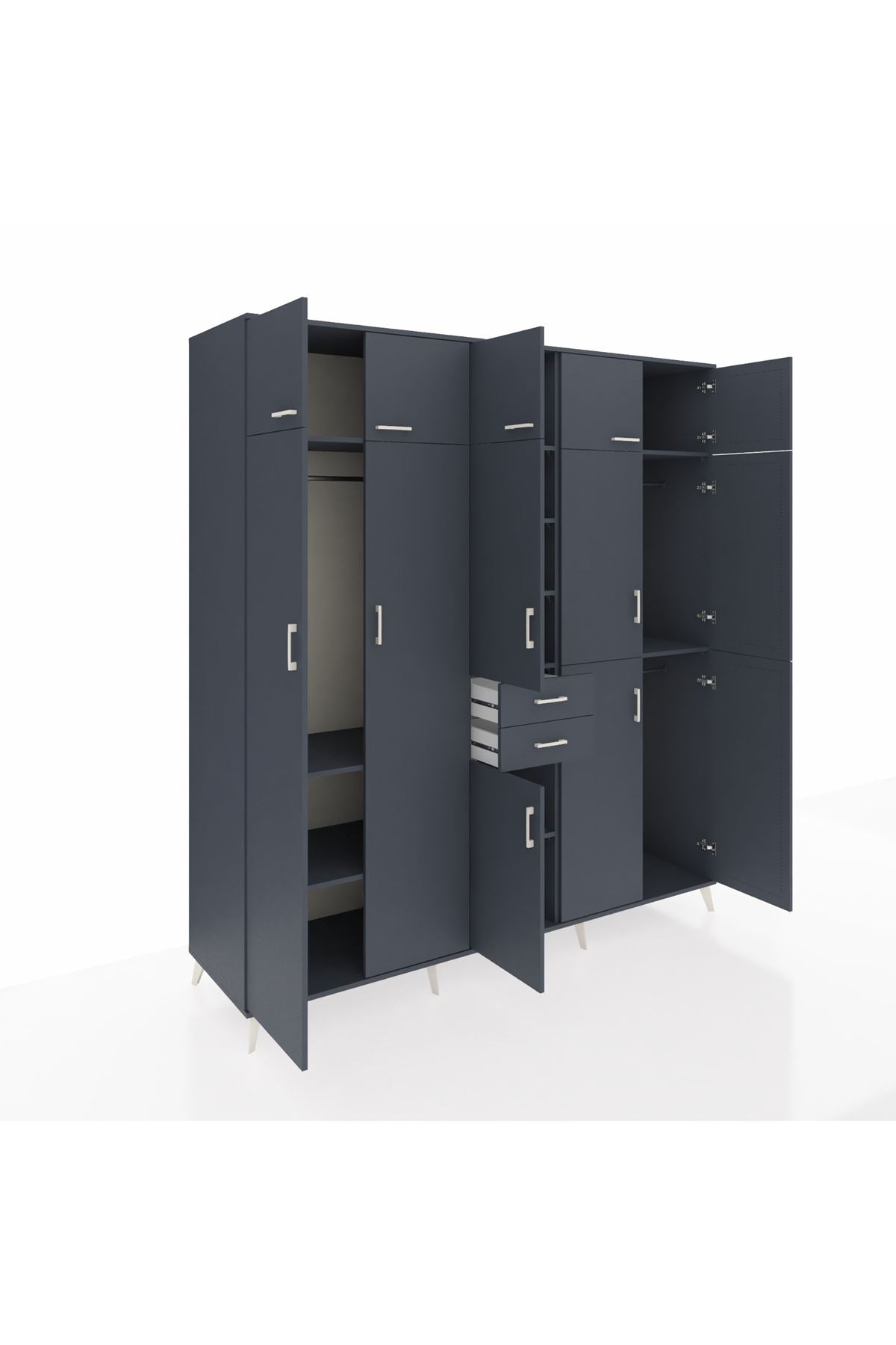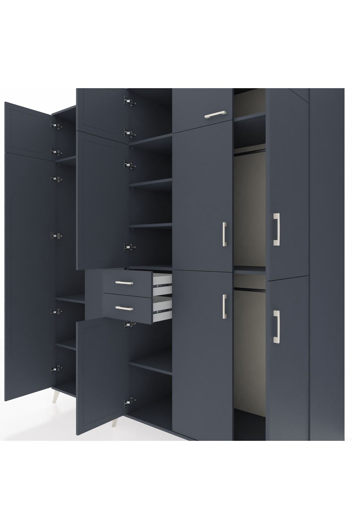 Kronos Dolap 10 Raflı 2 Çekmeceli 3 Askılı 220x59x243 Antrasit-Antrasit/Antrasit