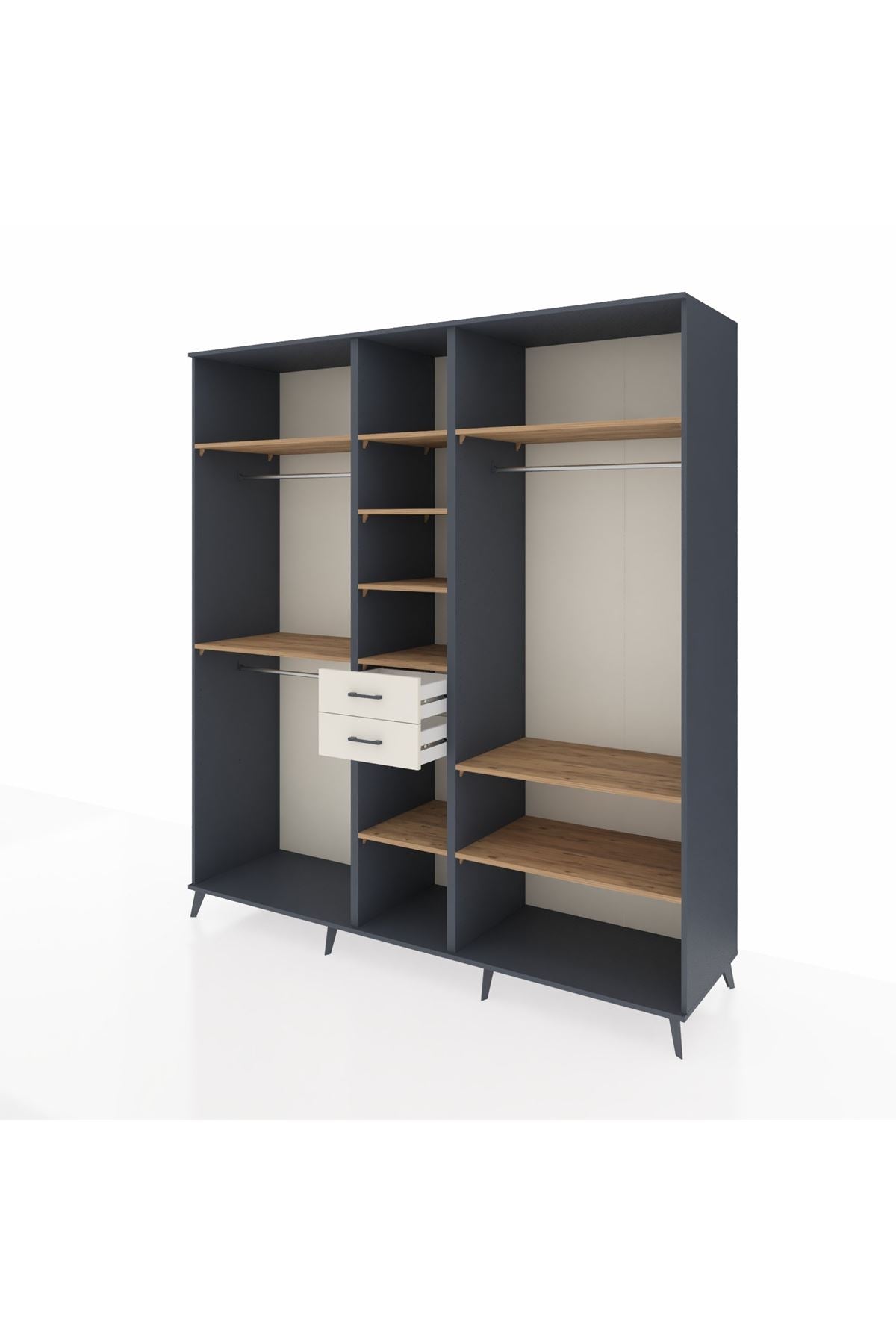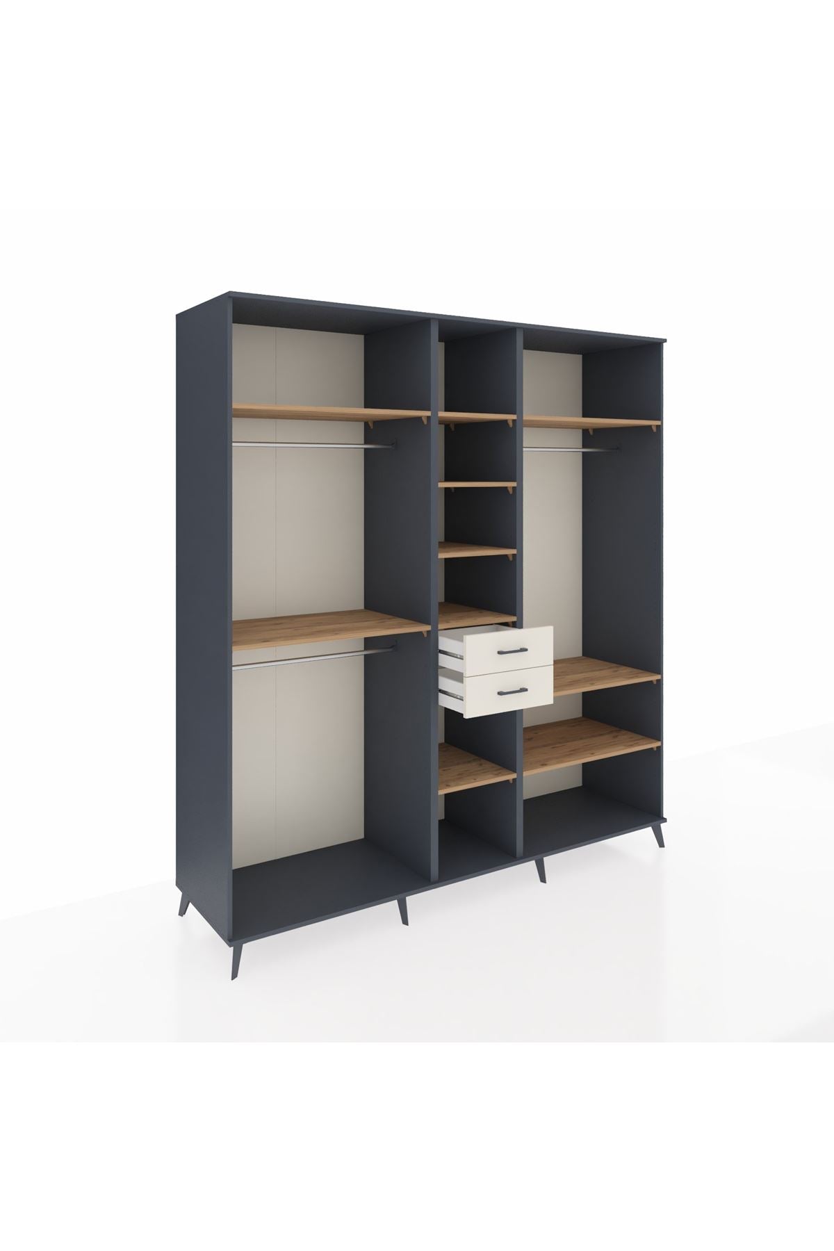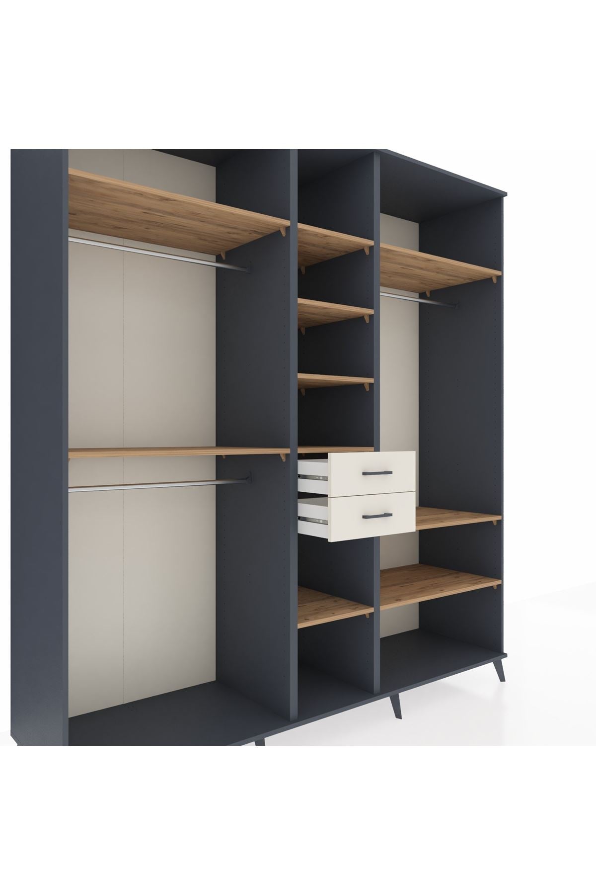 Kronos Dolap 10 Raflı 2 Çekmeceli 3 Askılı 220x59x243 Antrasit-Çam/Aytaşı