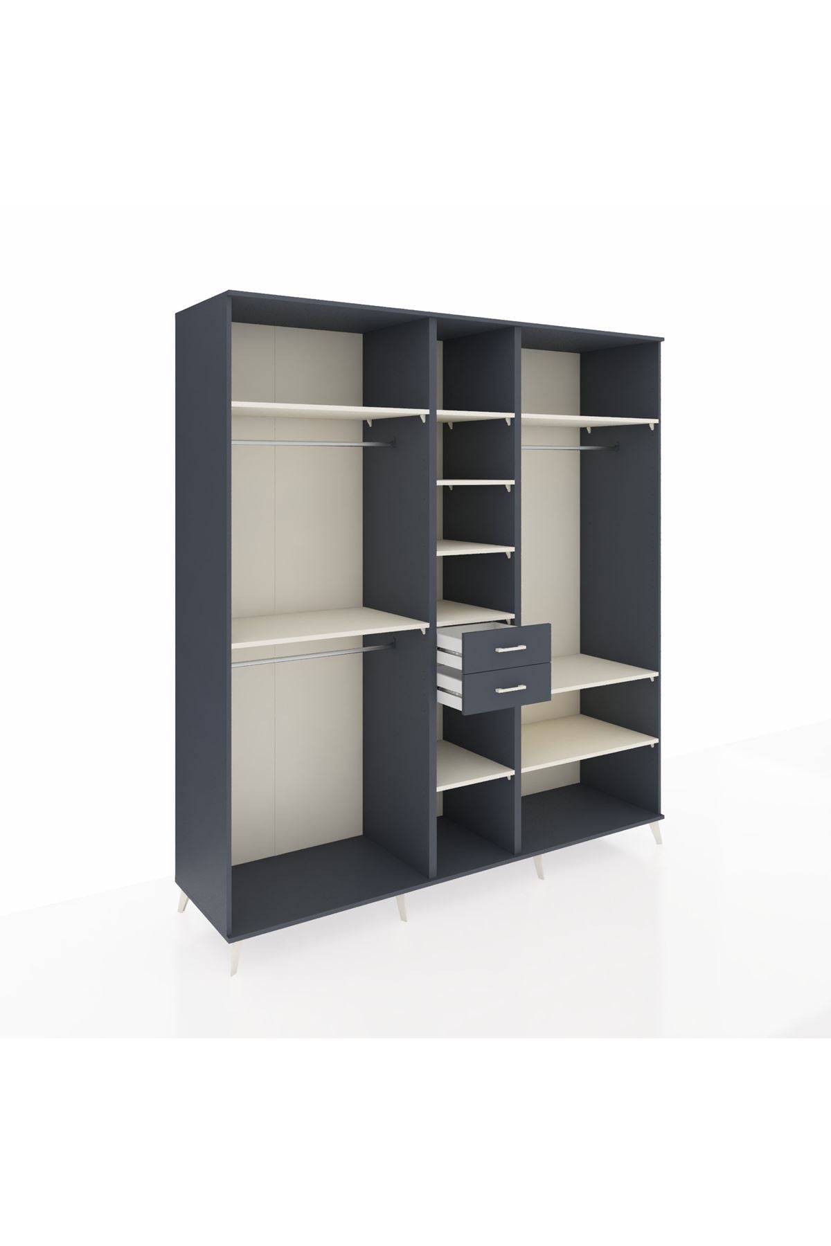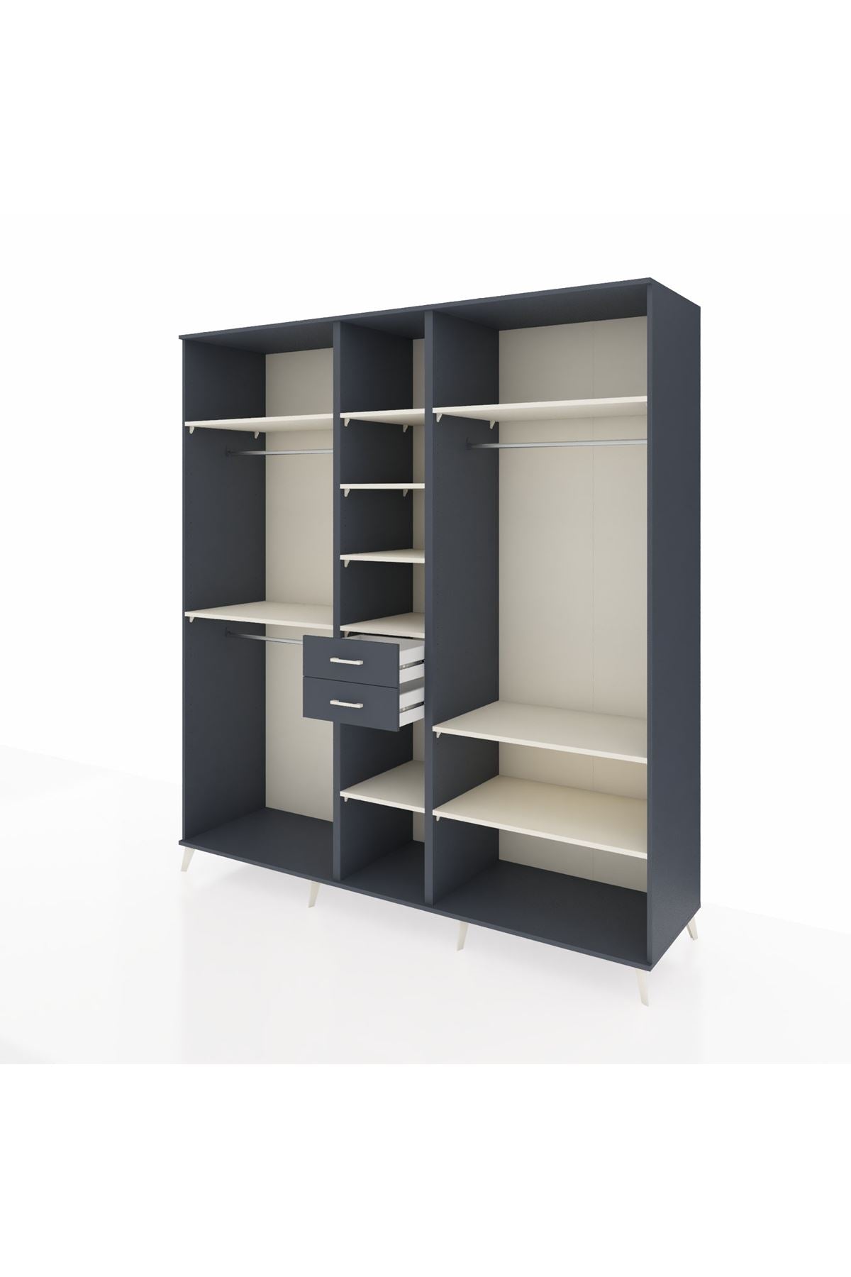 Kronos Dolap 10 Raflı 2 Çekmeceli 3 Askılı 220x59x243 Antrasit-Aytaşı/Antrasit