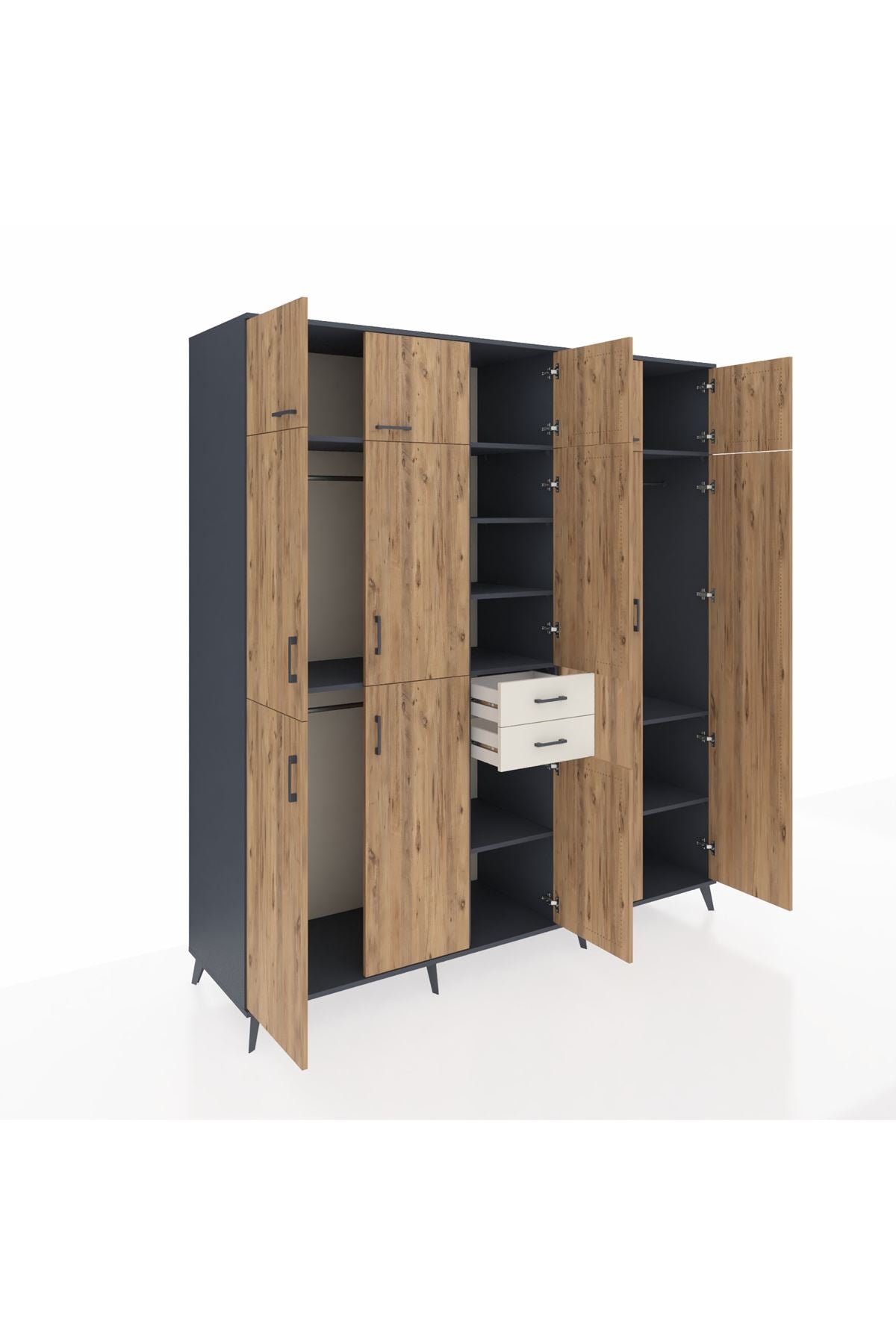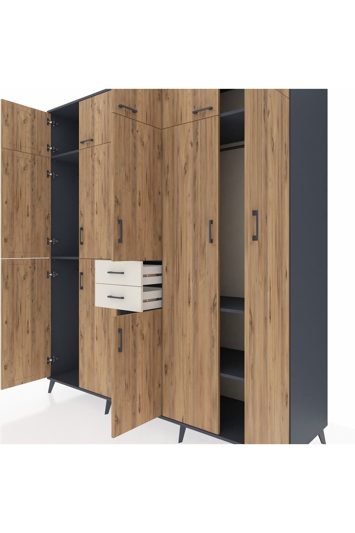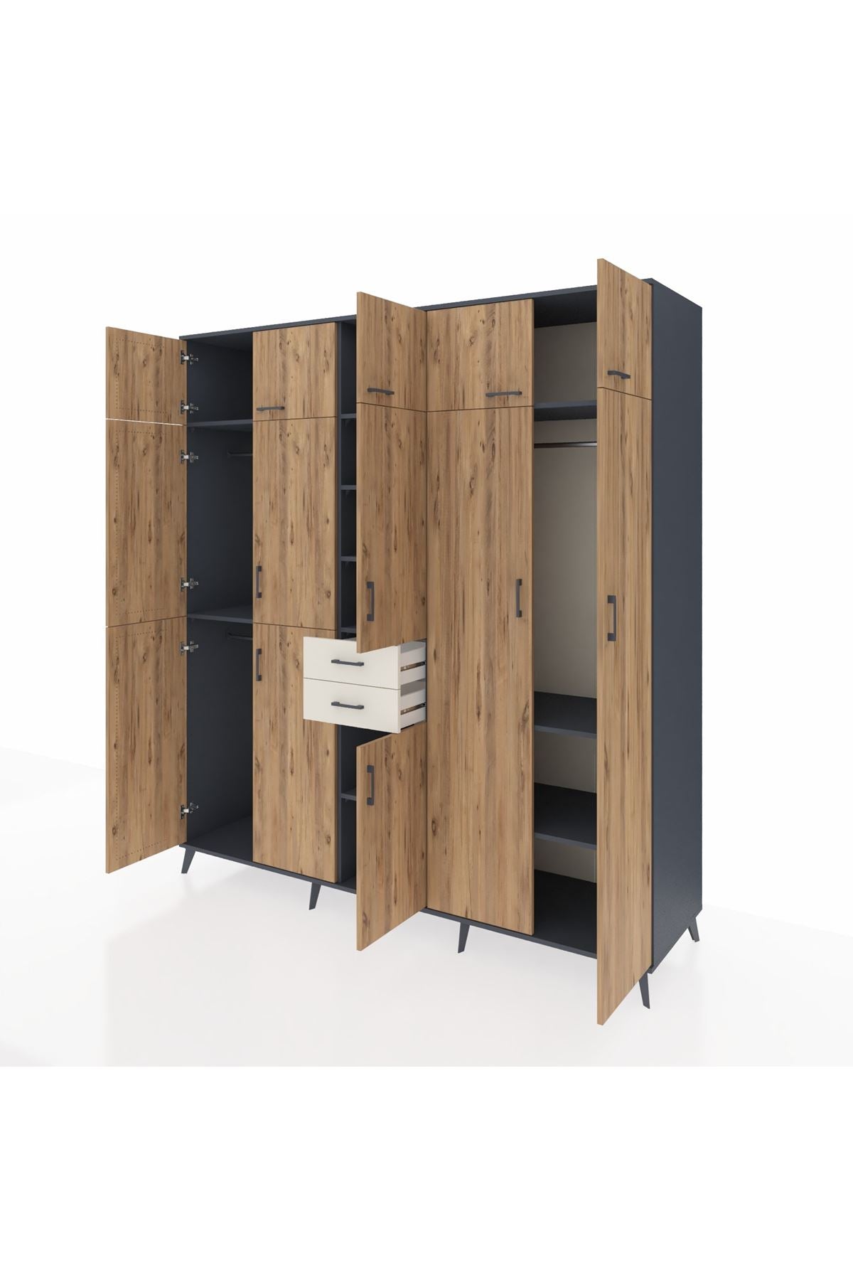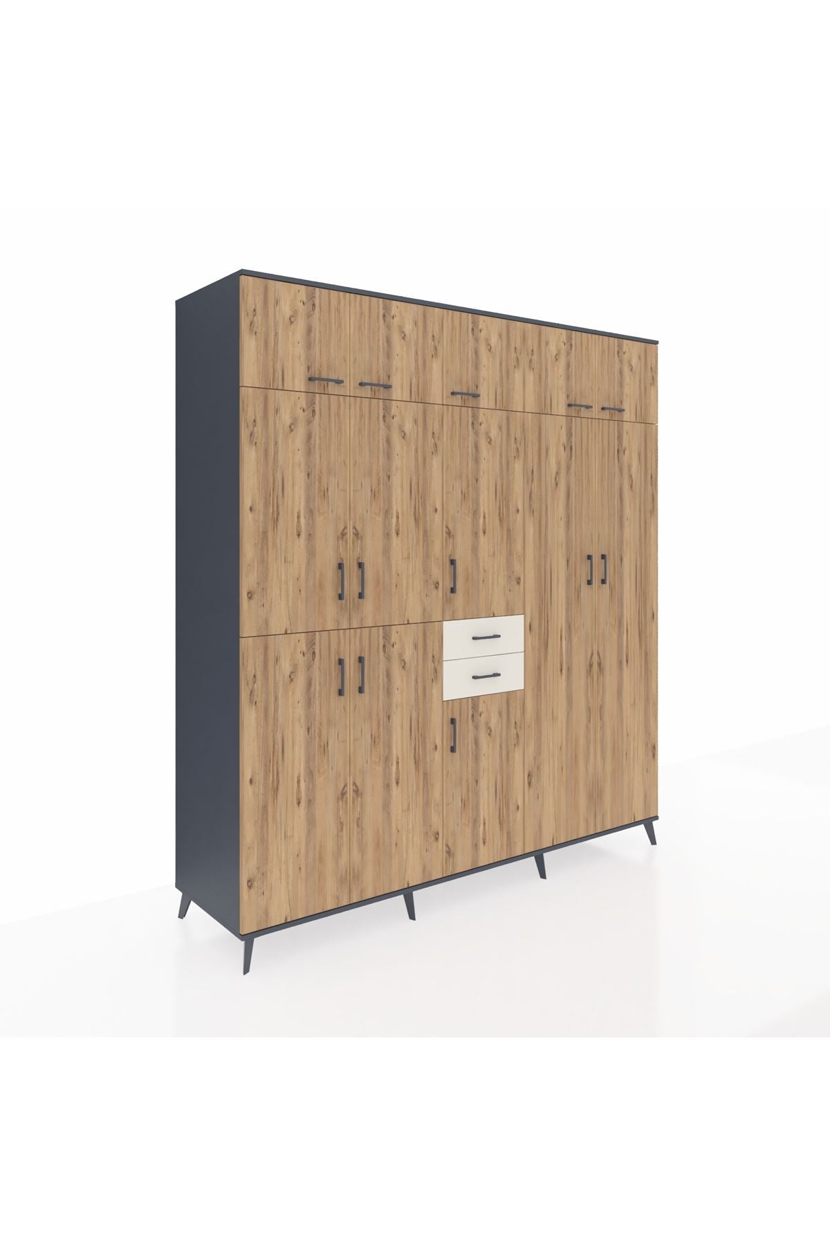 Kronos Dolap 10 Raflı 2 Çekmeceli 3 Askılı 220x59x243 Antrasit-Çam/Aytaşı