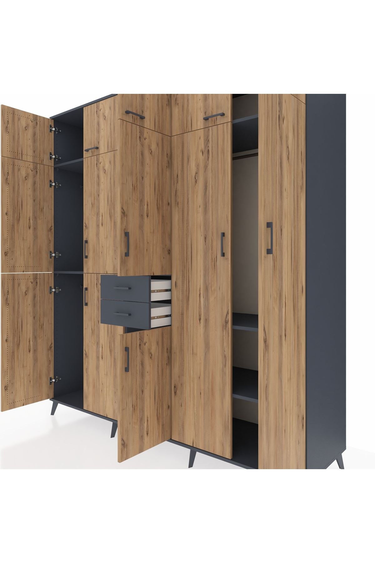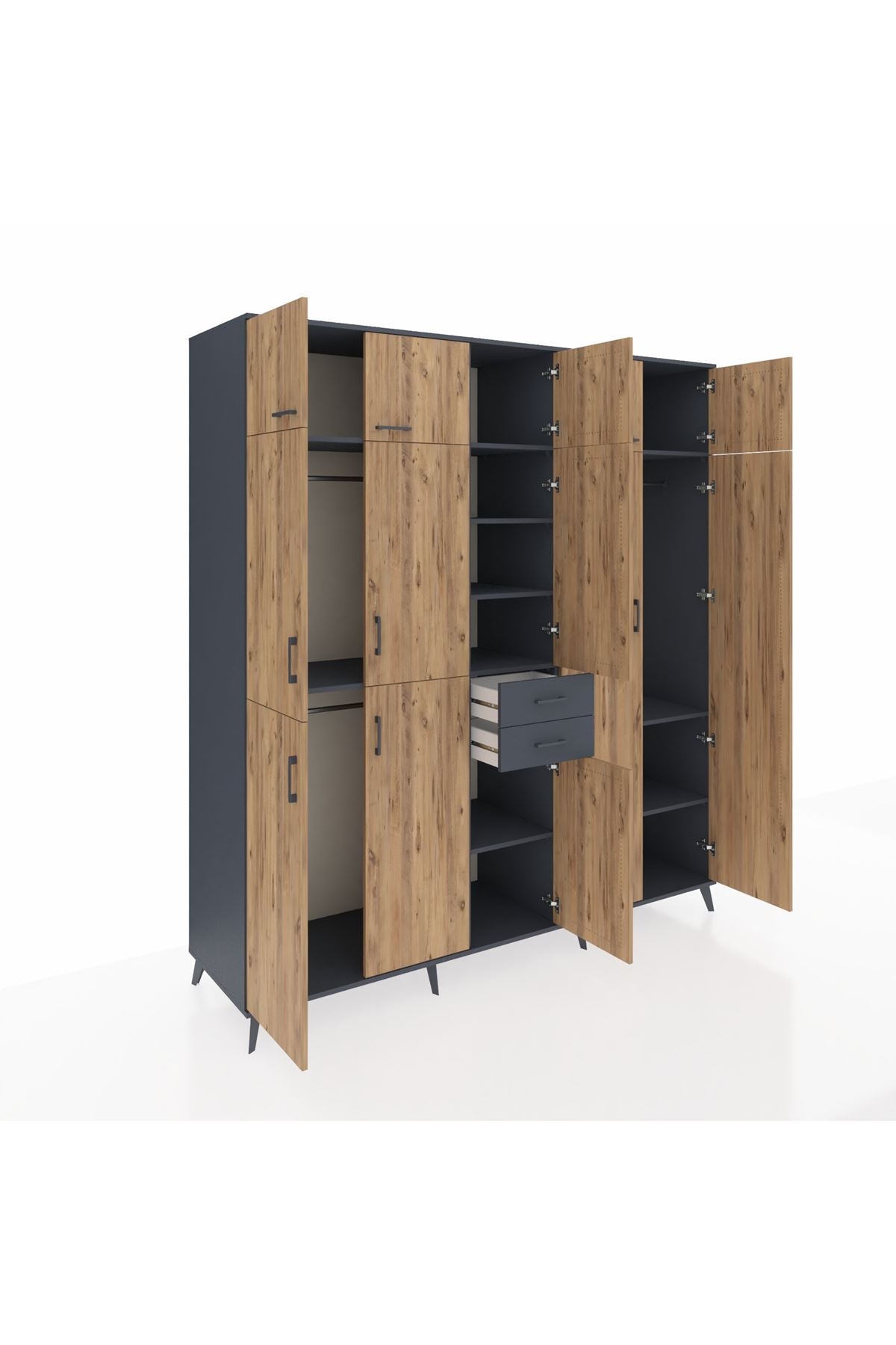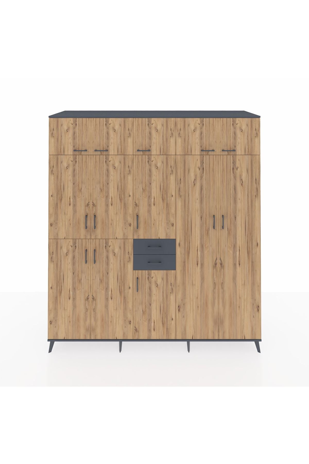 Kronos Dolap 10 Raflı 2 Çekmeceli 3 Askılı 220x59x243 Antrasit-Çam/Antrasit