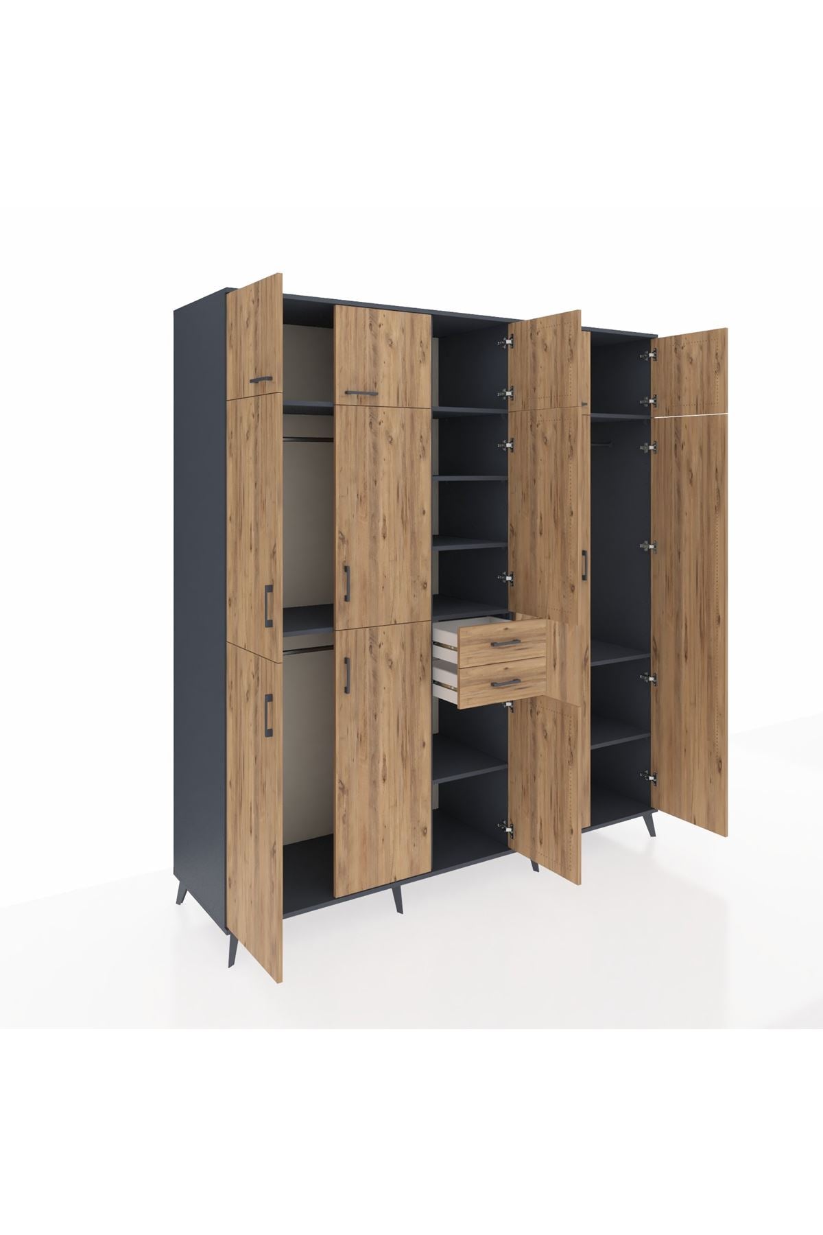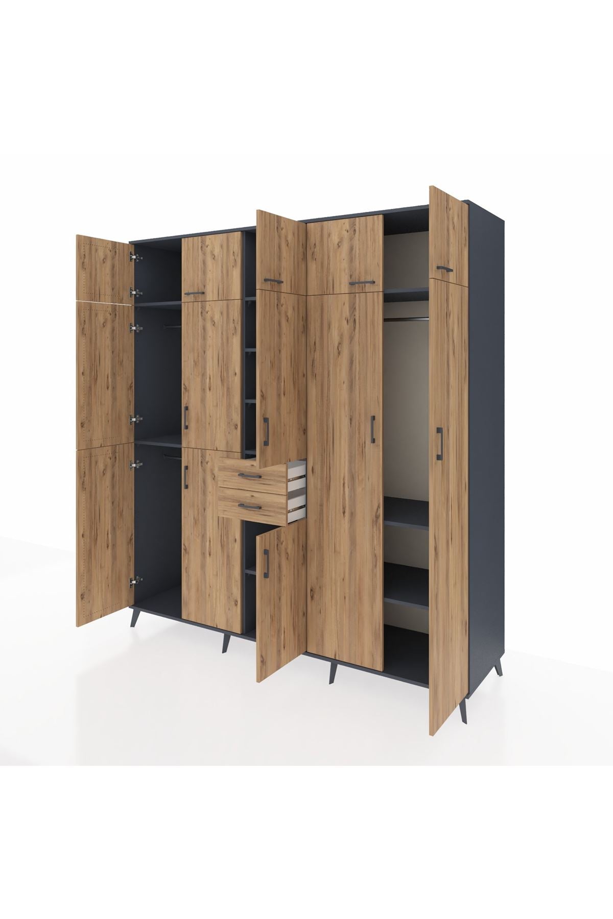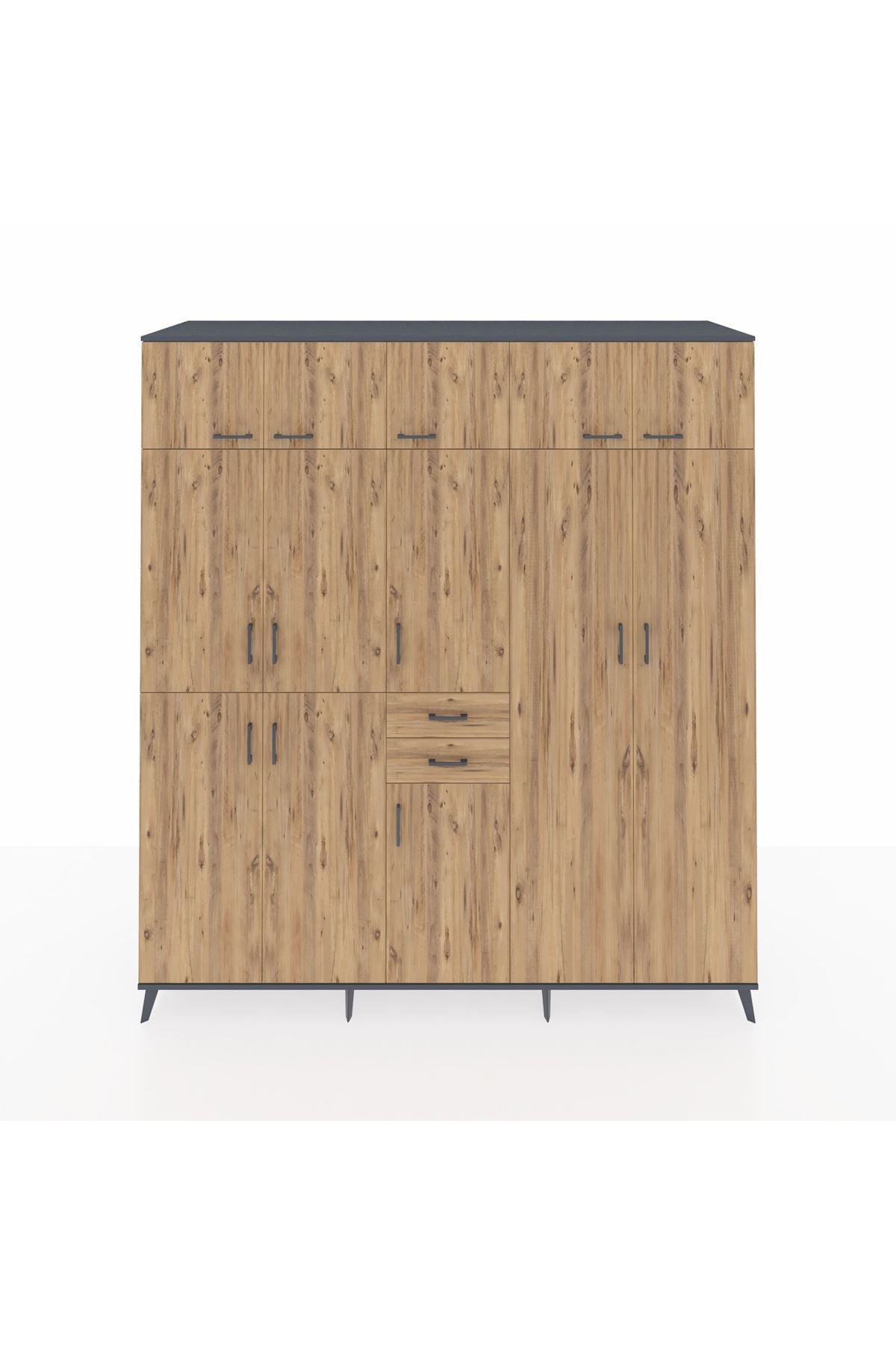 Kronos Dolap 10 Raflı 2 Çekmeceli 3 Askılı 220x59x243 Antrasit-Çam/Çam