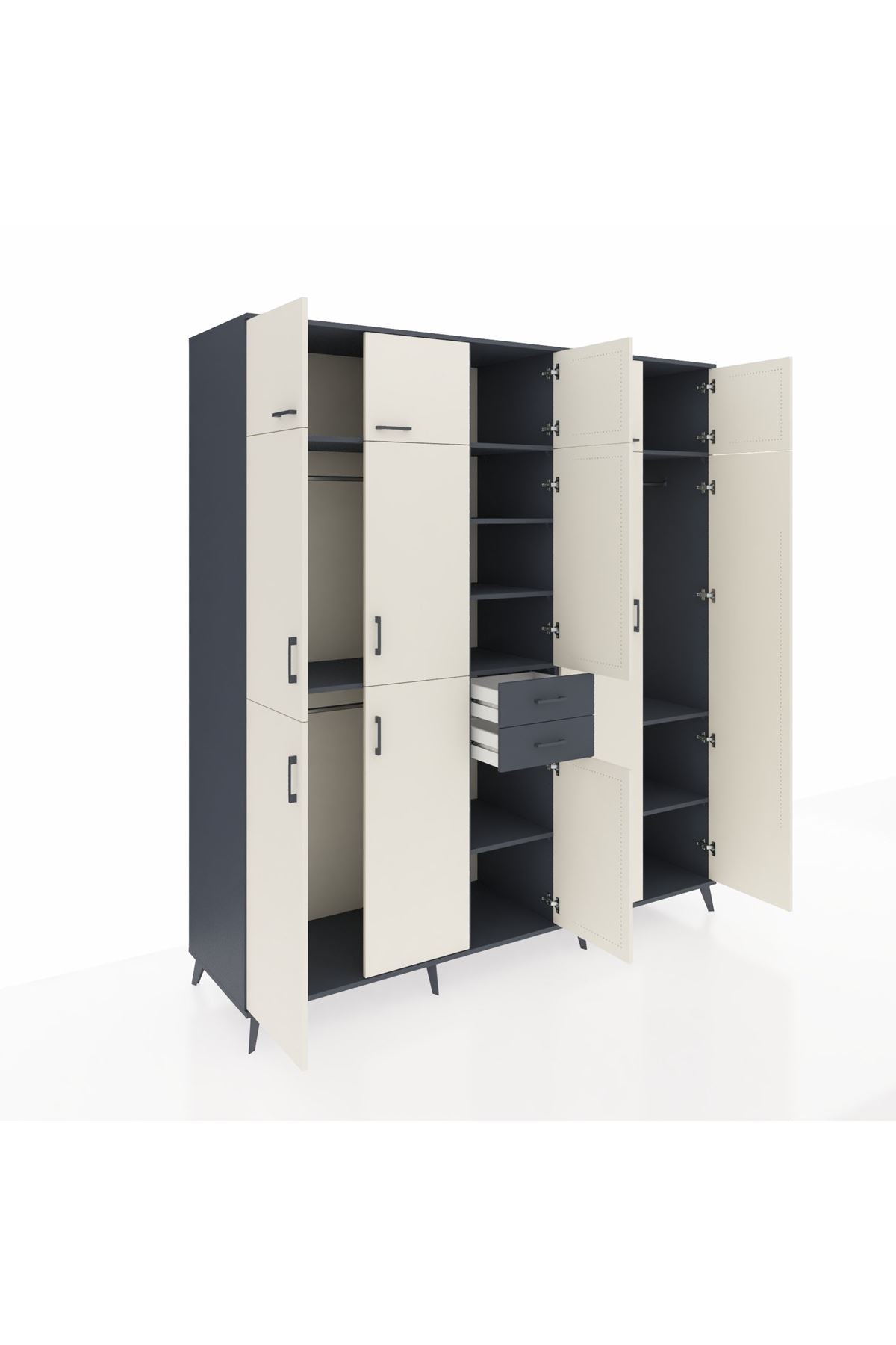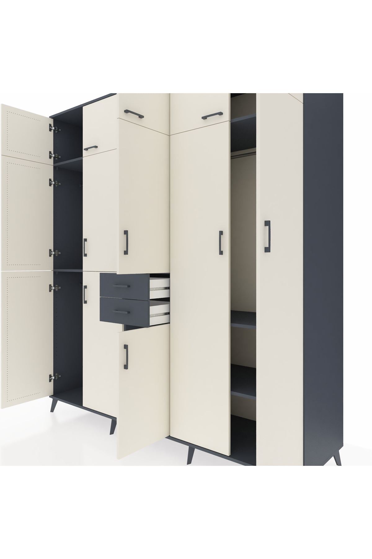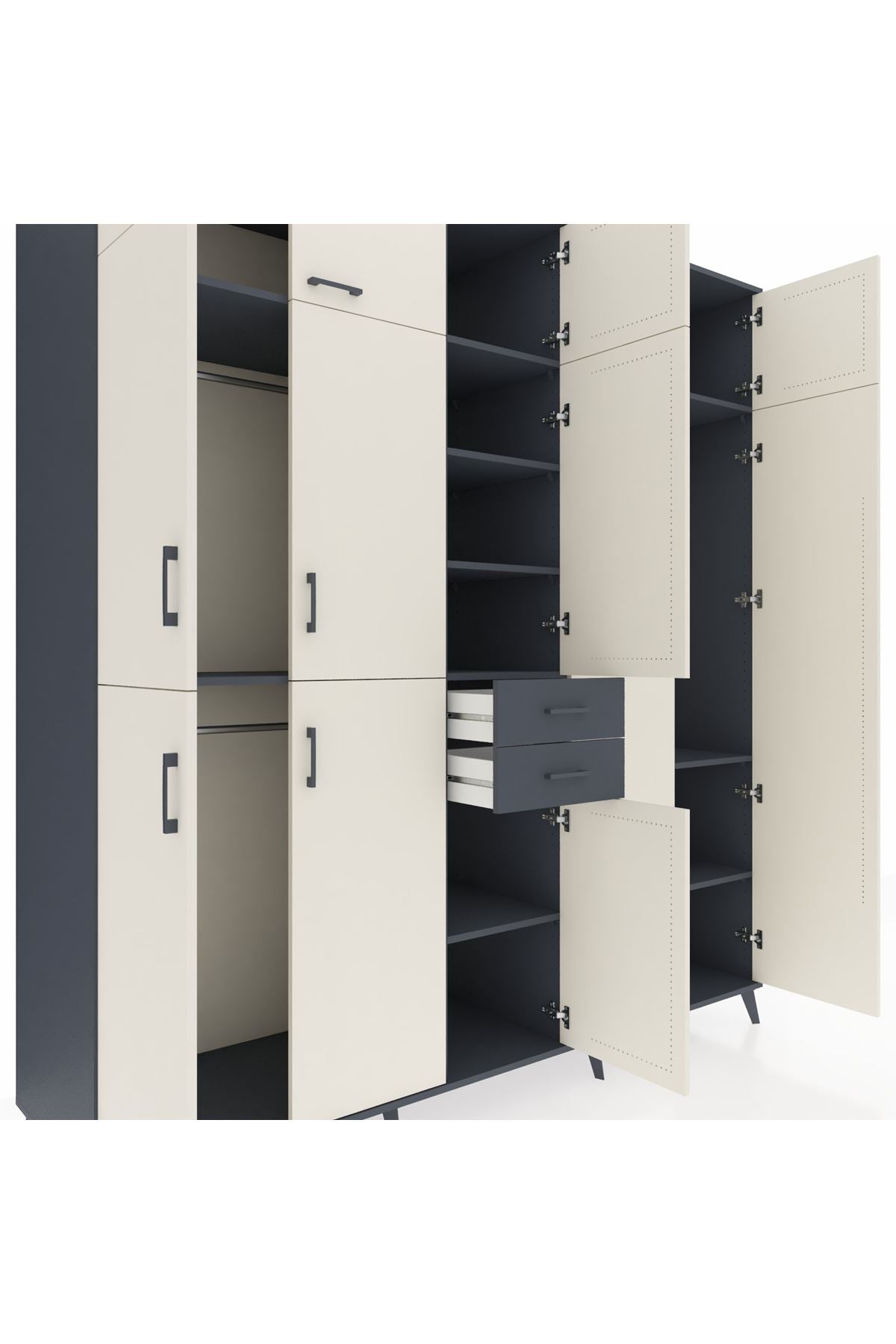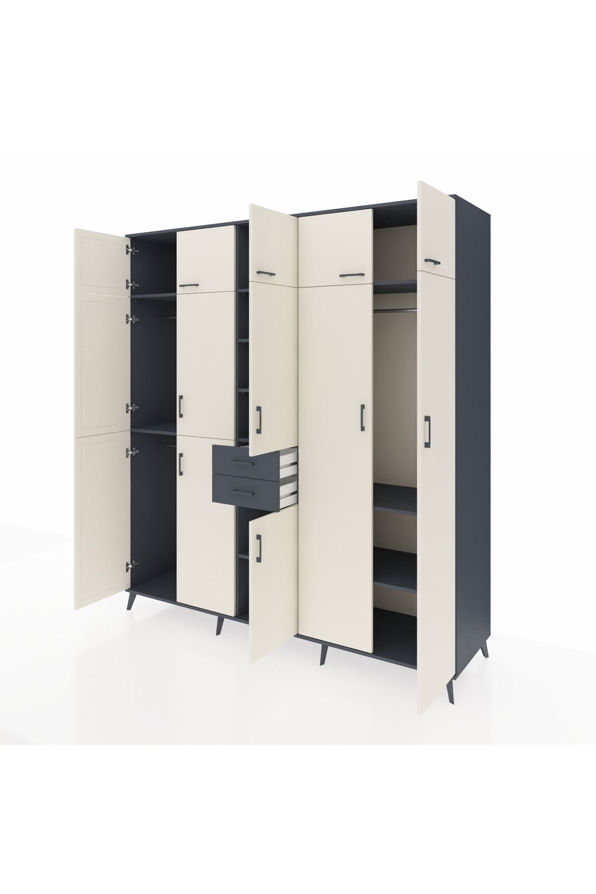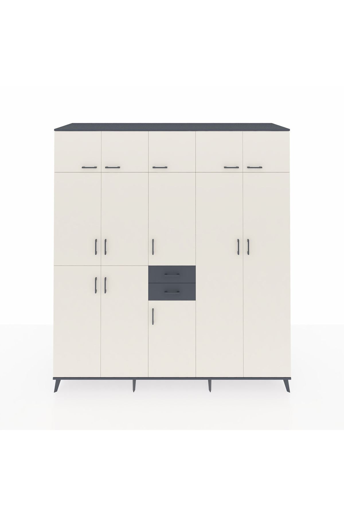 Kronos Dolap 10 Raflı 2 Çekmeceli 3 Askılı 220x59x243 Antrasit-Aytaşı/Antrasit