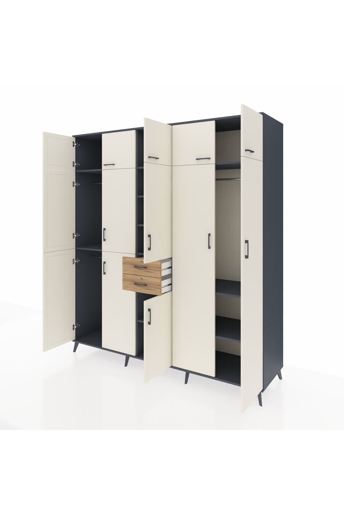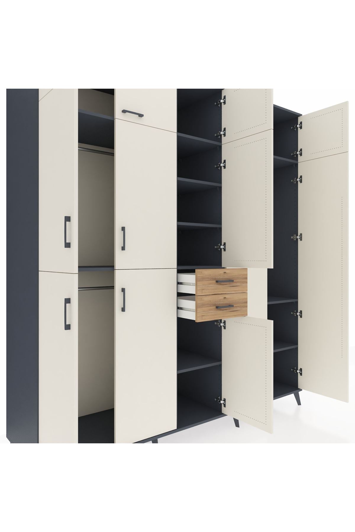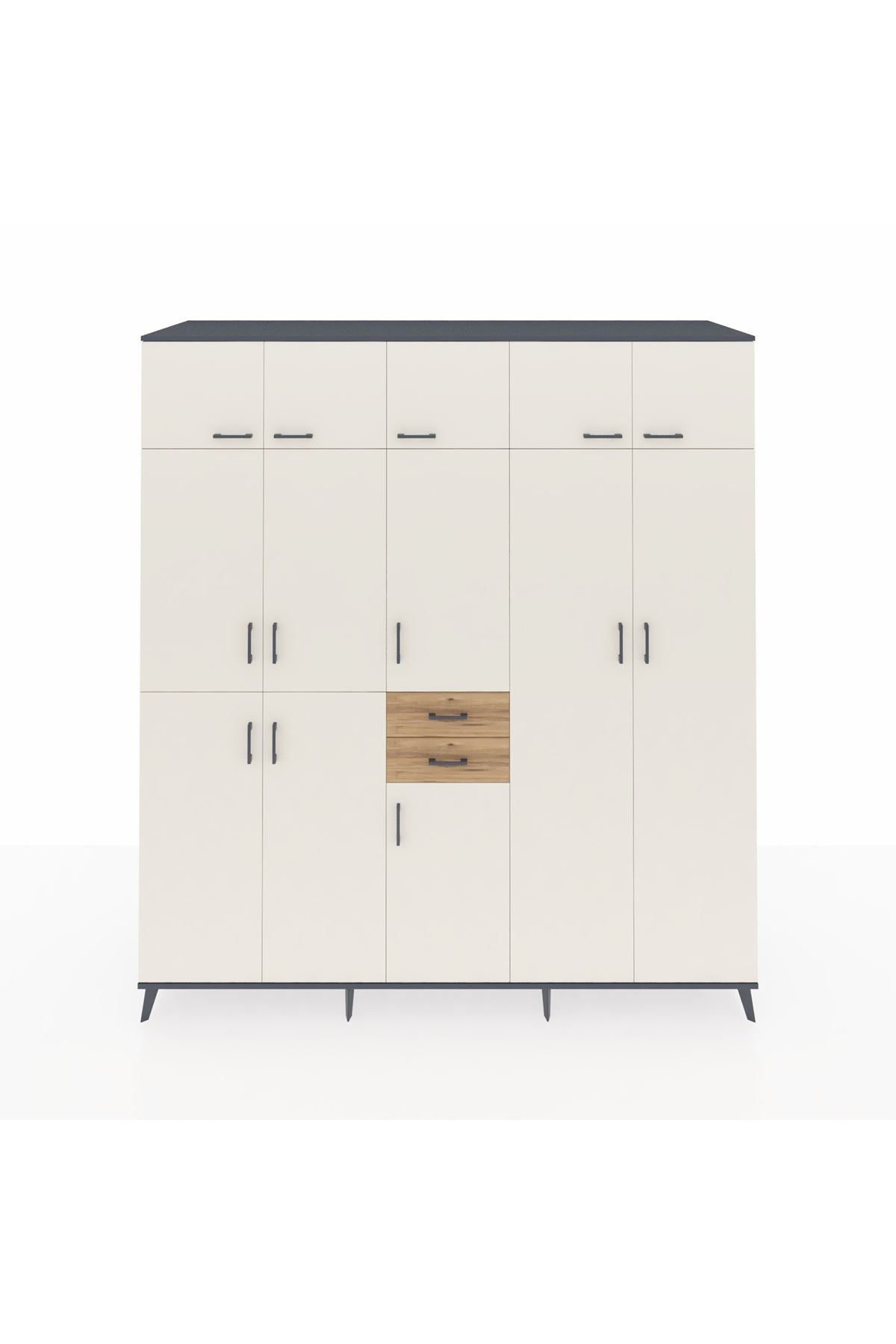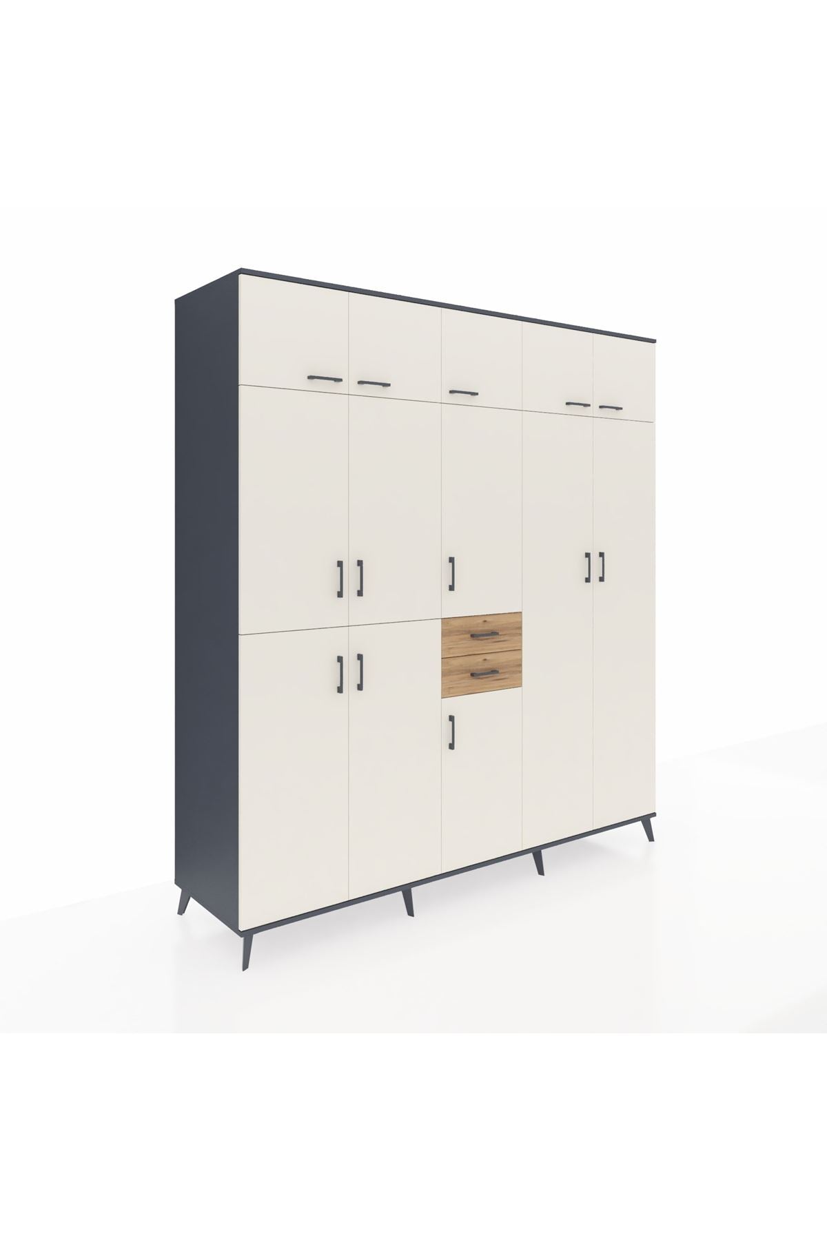 Kronos Dolap 10 Raflı 2 Çekmeceli 3 Askılı 220x59x243 Antrasit-Aytaşı/Çam