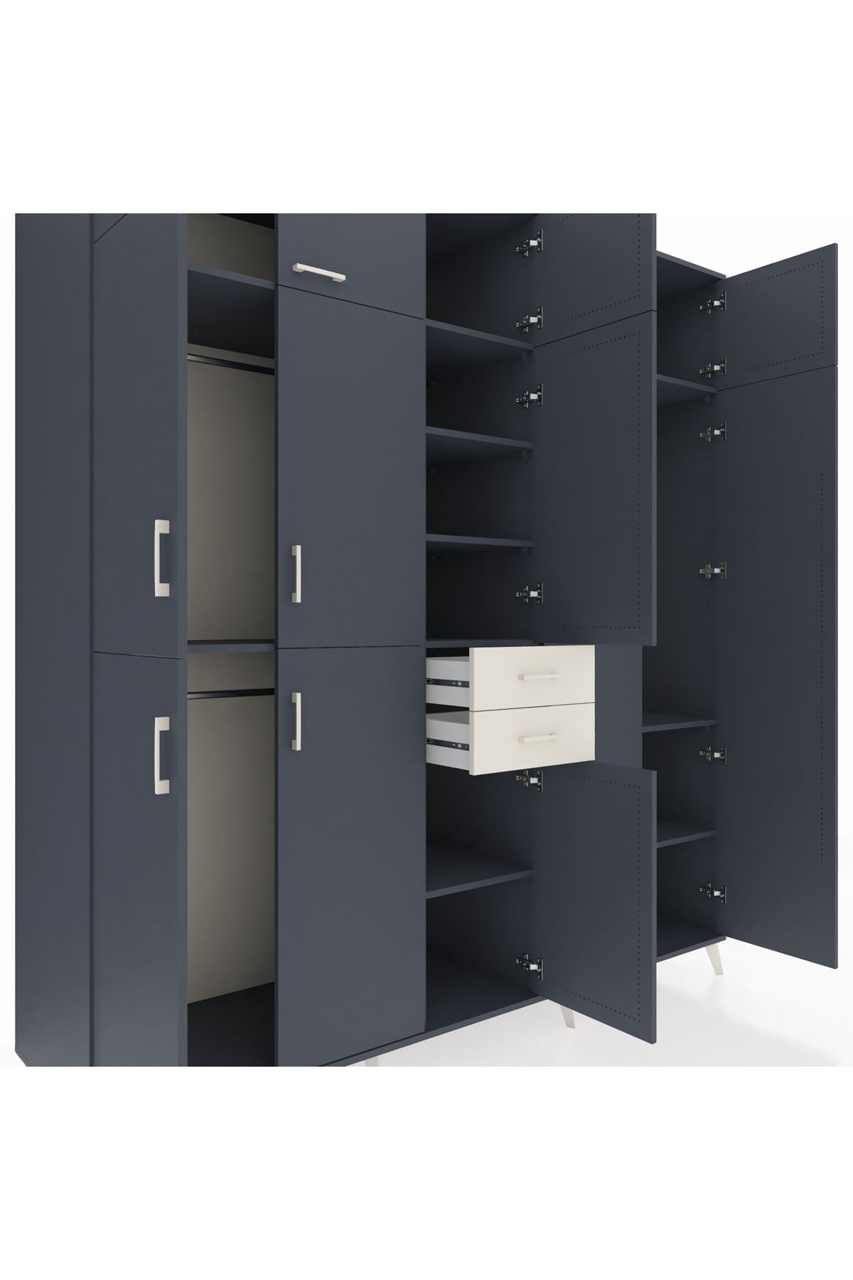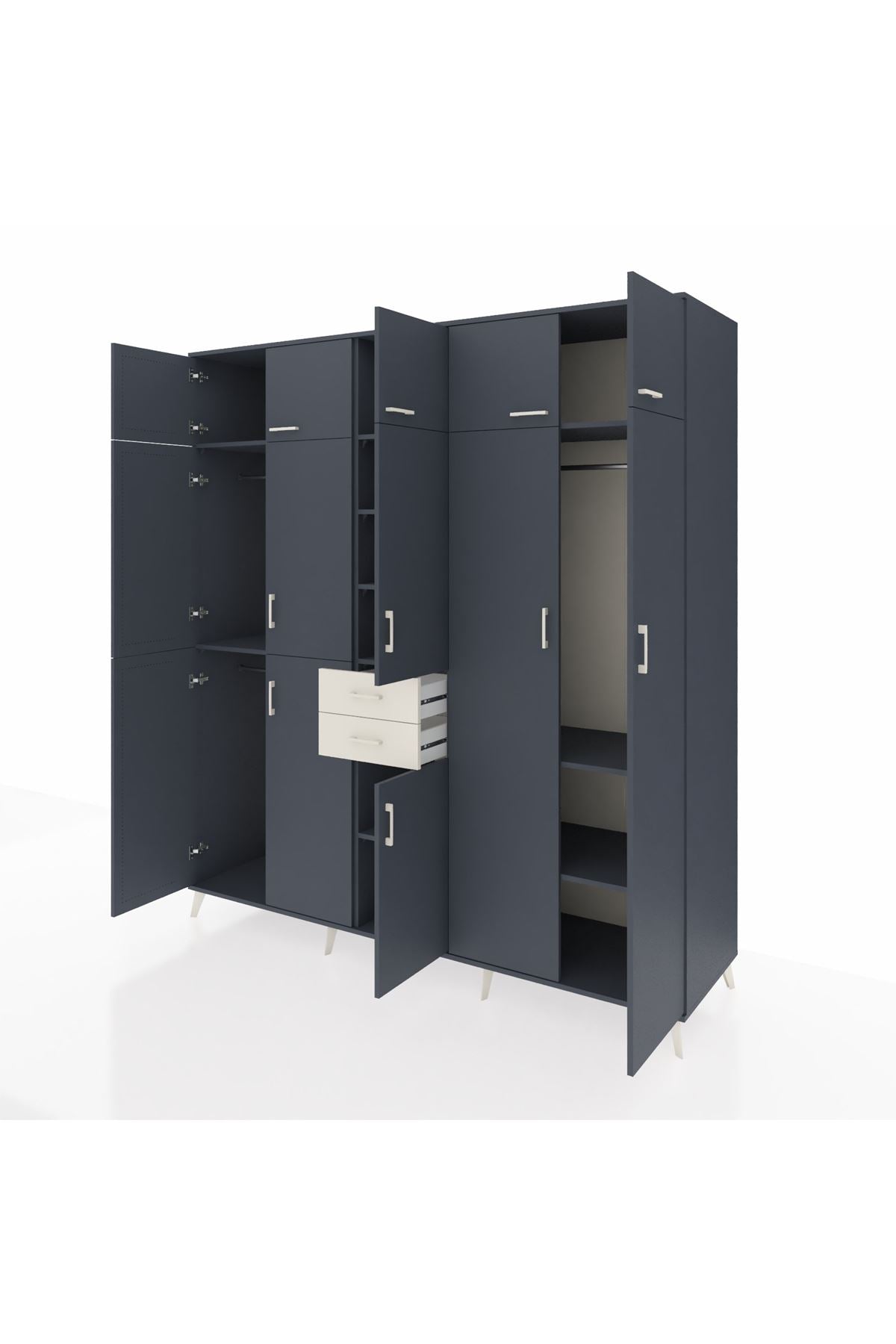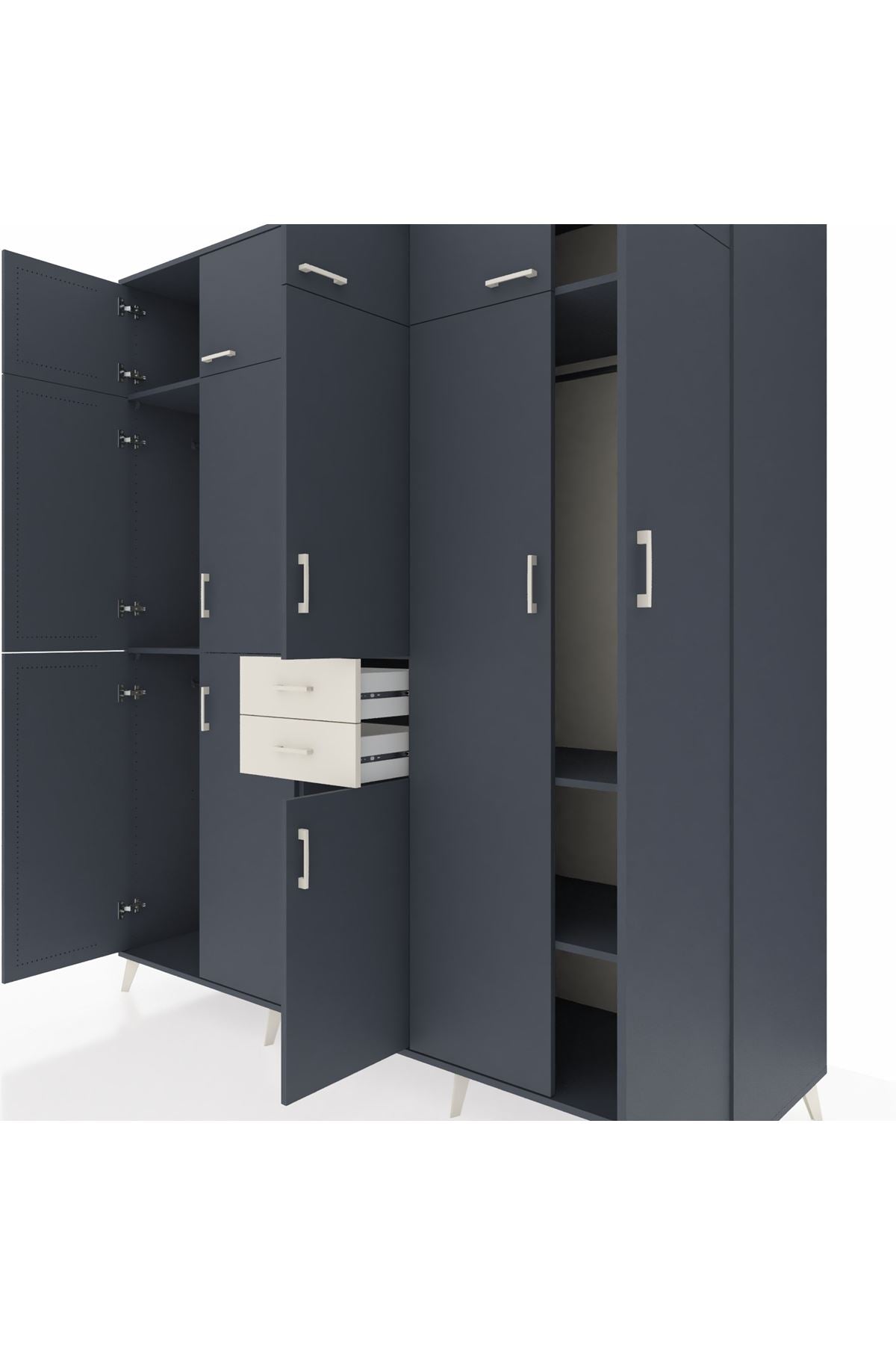 Kronos Dolap 10 Raflı 2 Çekmeceli 3 Askılı 220x59x243 Antrasit-Antrasit/Aytaşı