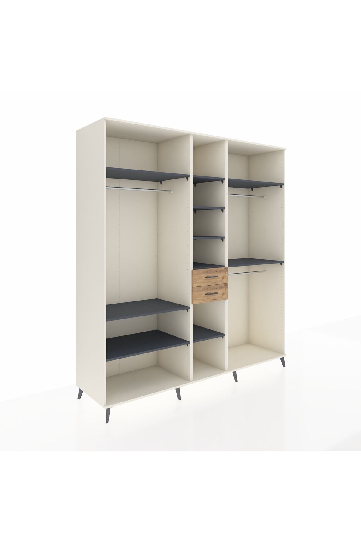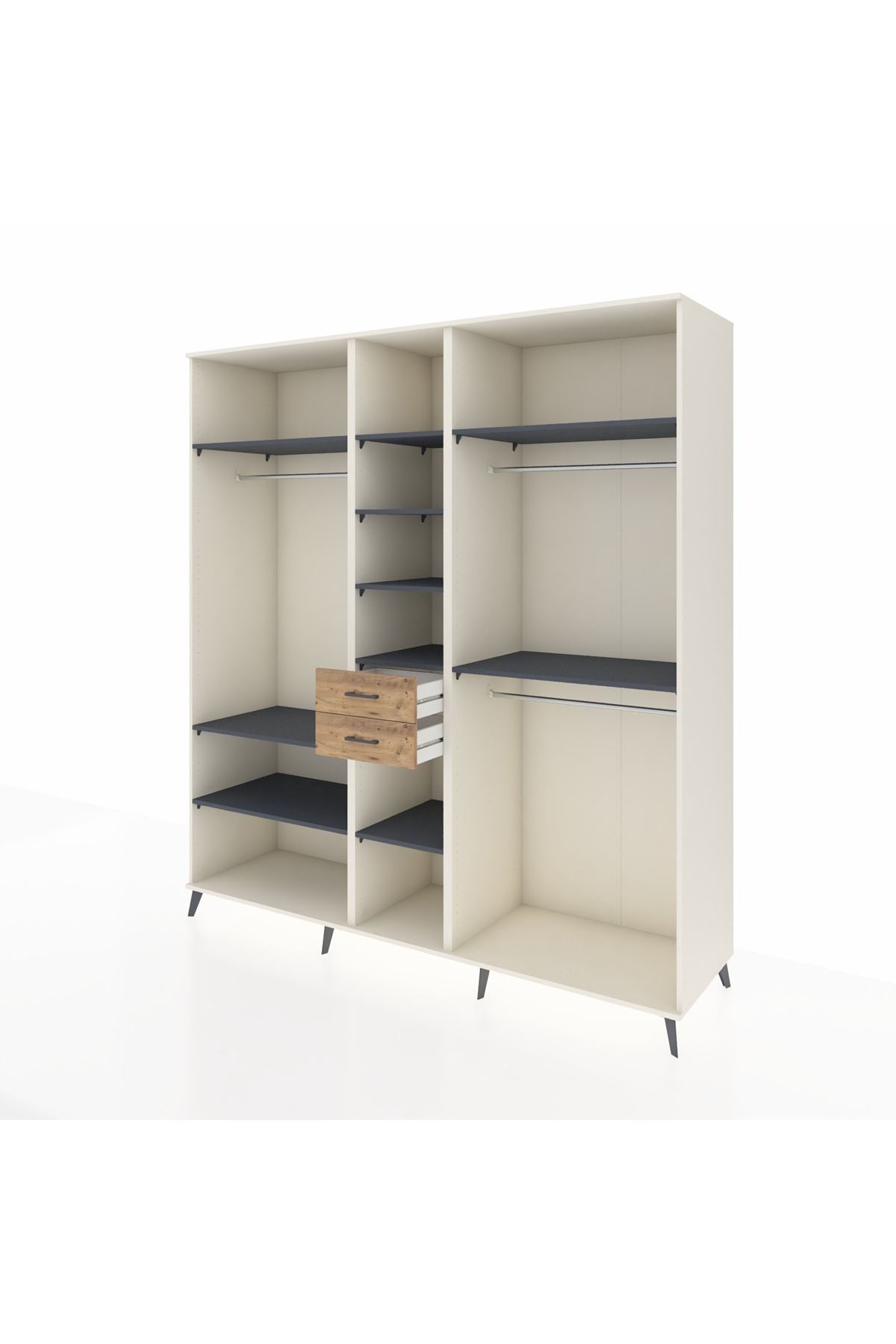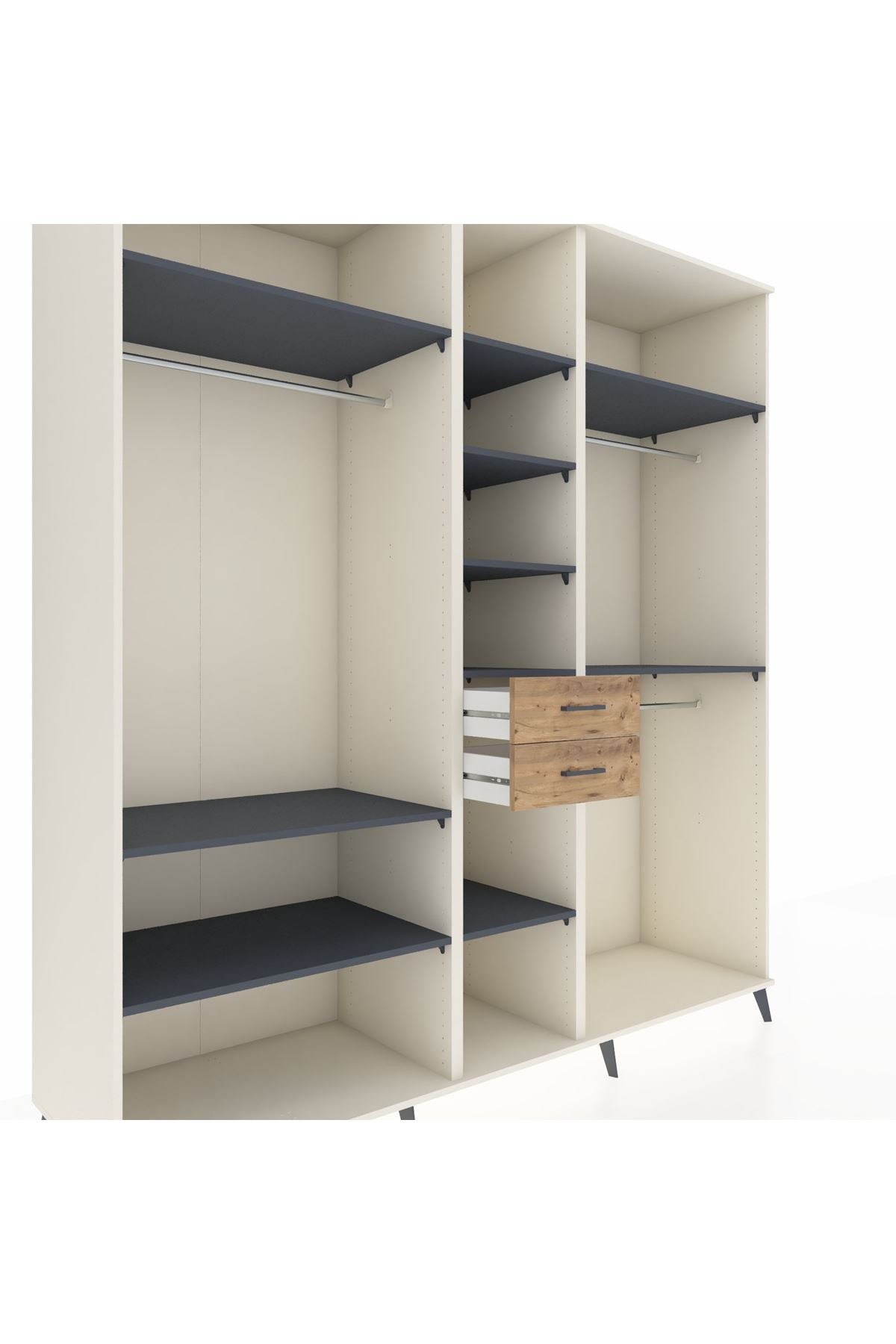 Kronos Dolap 10 Raflı 2 Çekmeceli 3 Askılı 220x59x243 Aytaşı-Antrasit/Çam