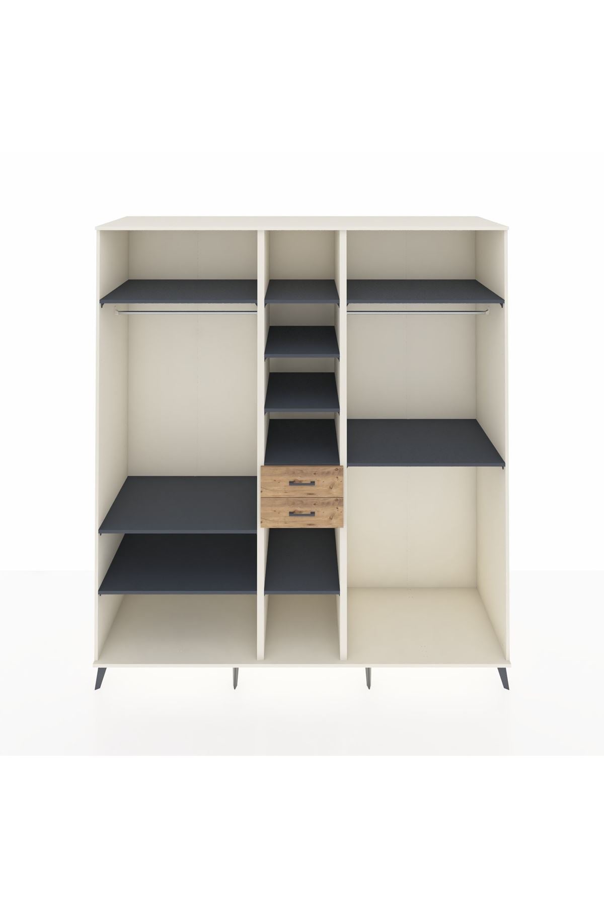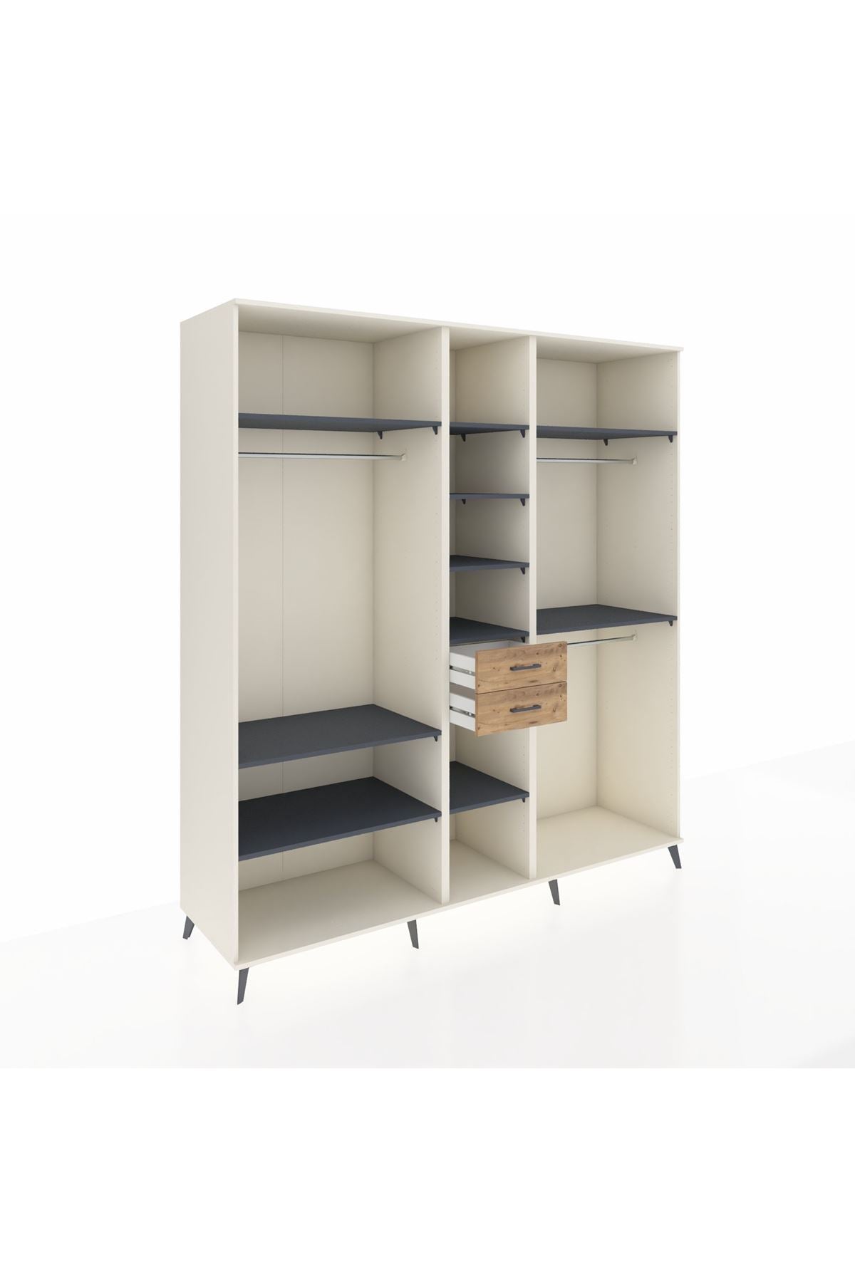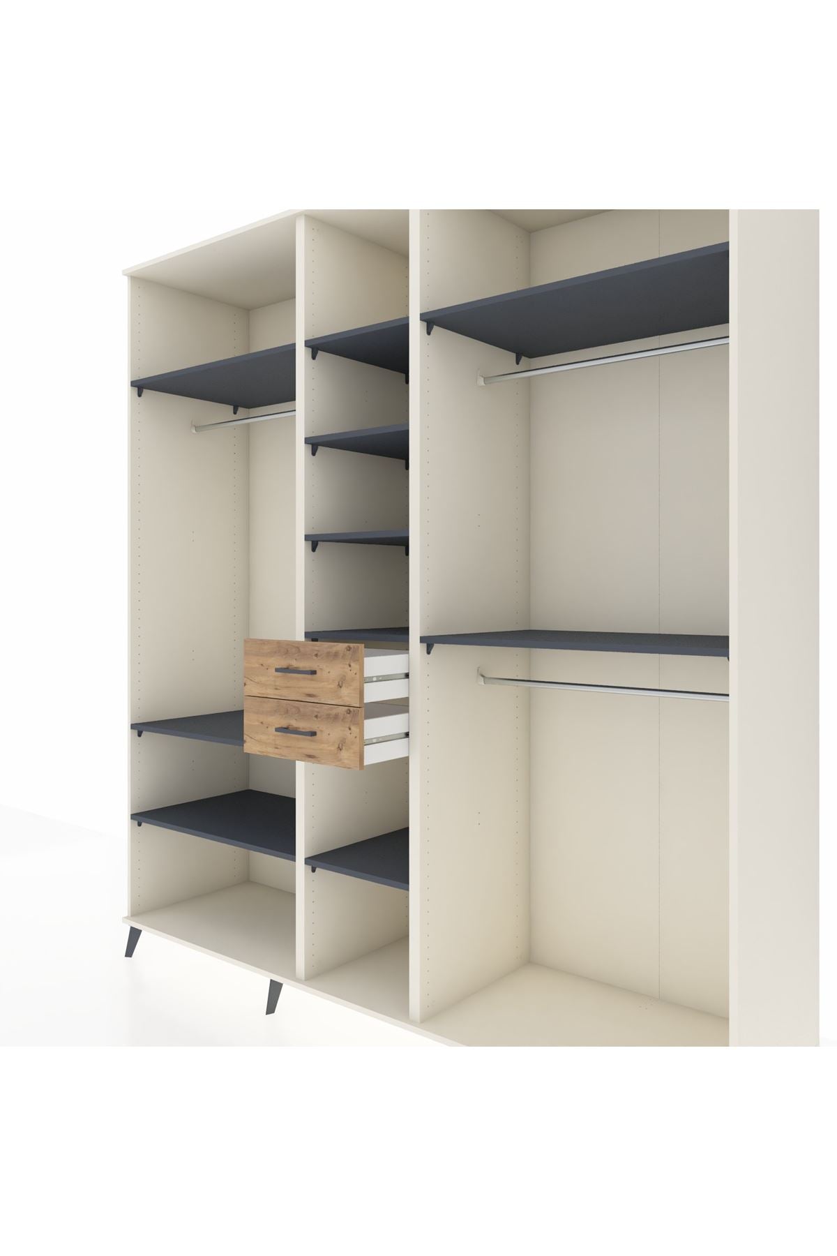 Kronos Dolap 10 Raflı 2 Çekmeceli 3 Askılı 220x59x243 Aytaşı-Antrasit/Çam