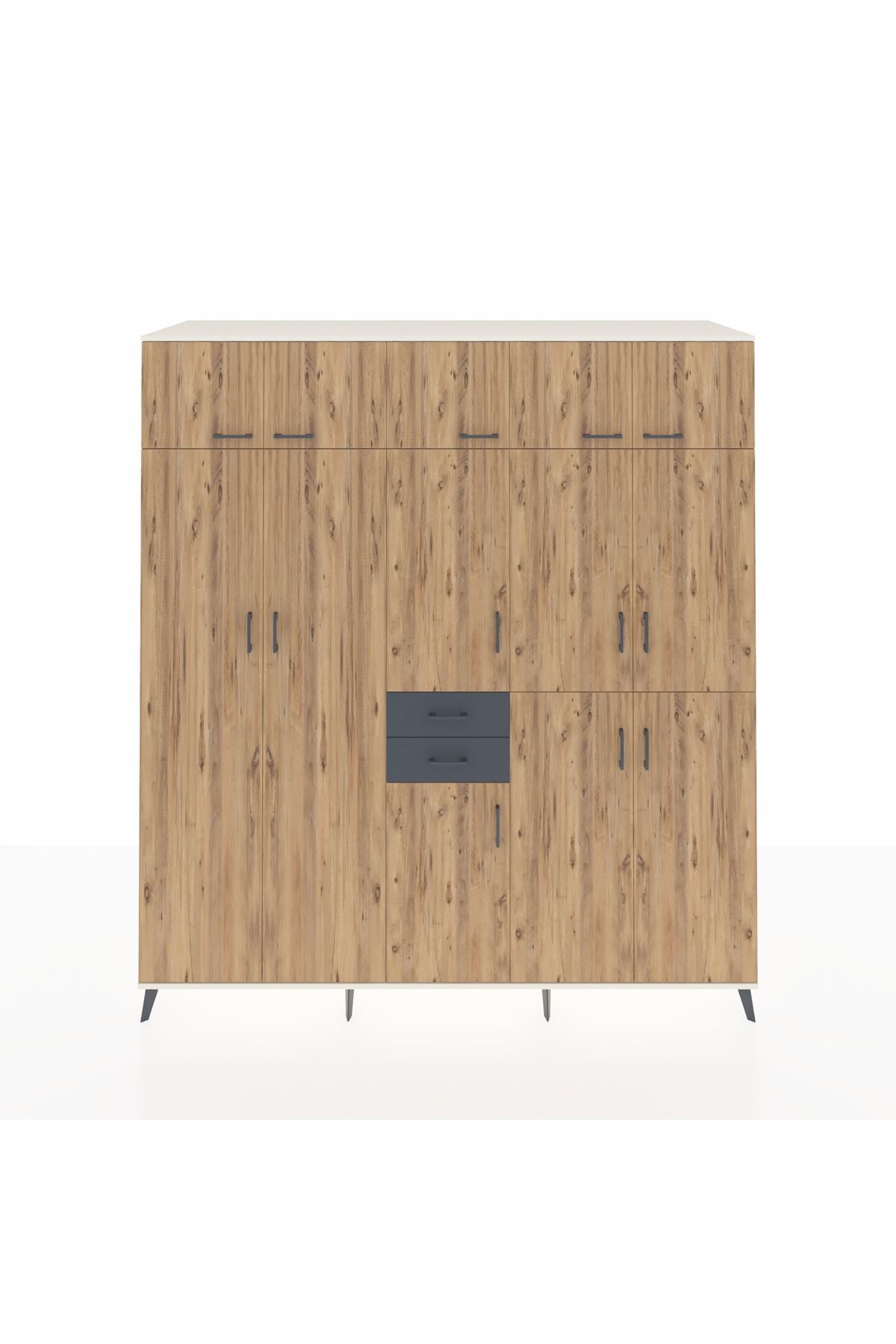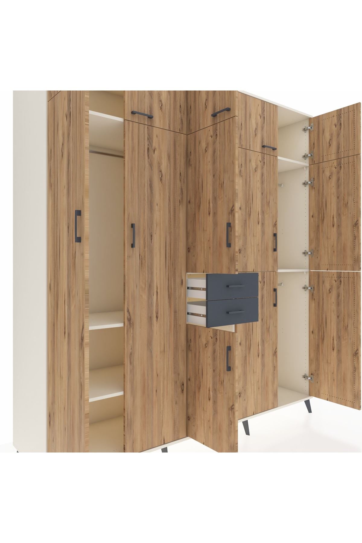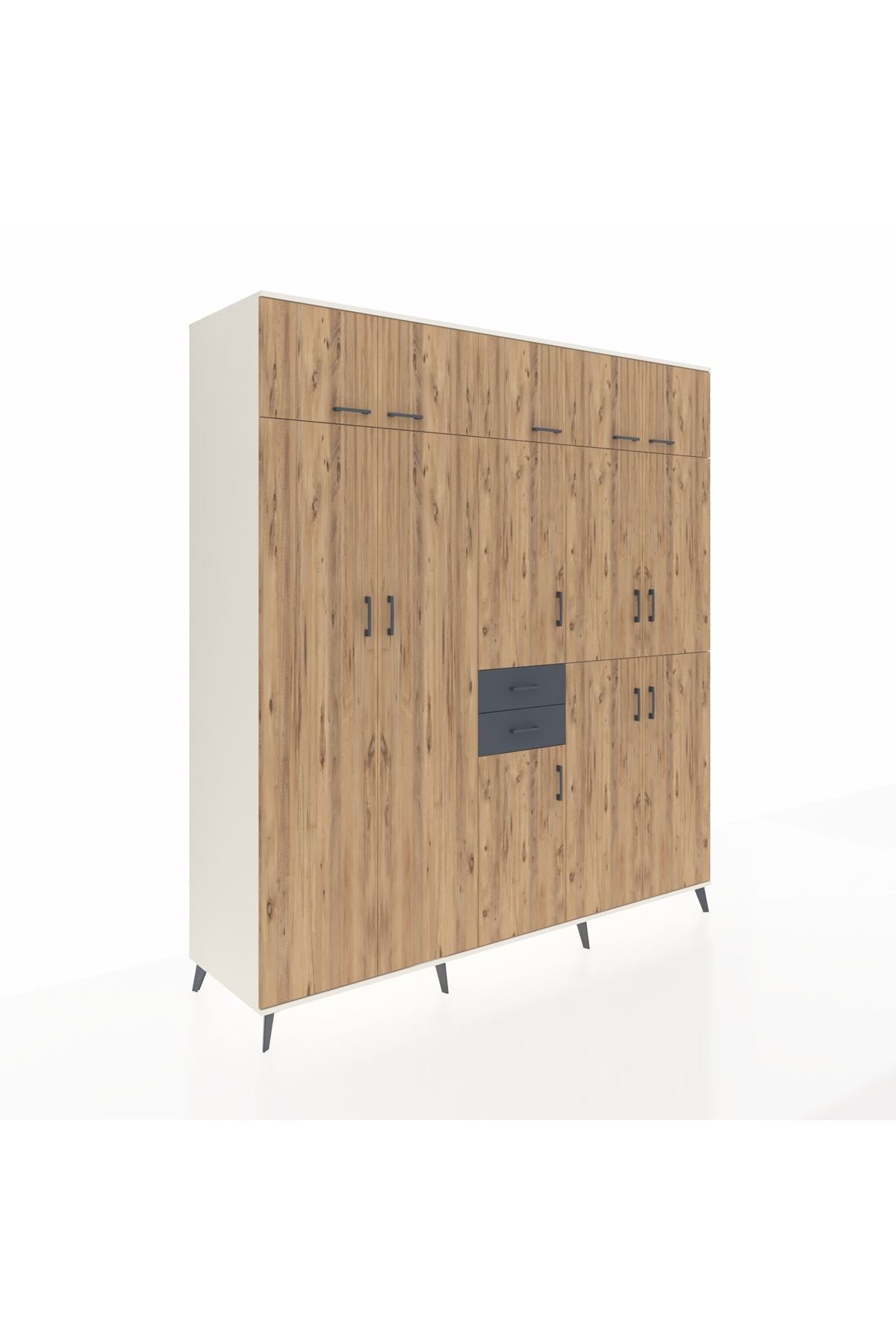 Kronos Dolap 10 Raflı 2 Çekmeceli 3 Askılı 220x59x243 Aytaşı-Çam/Antrasit