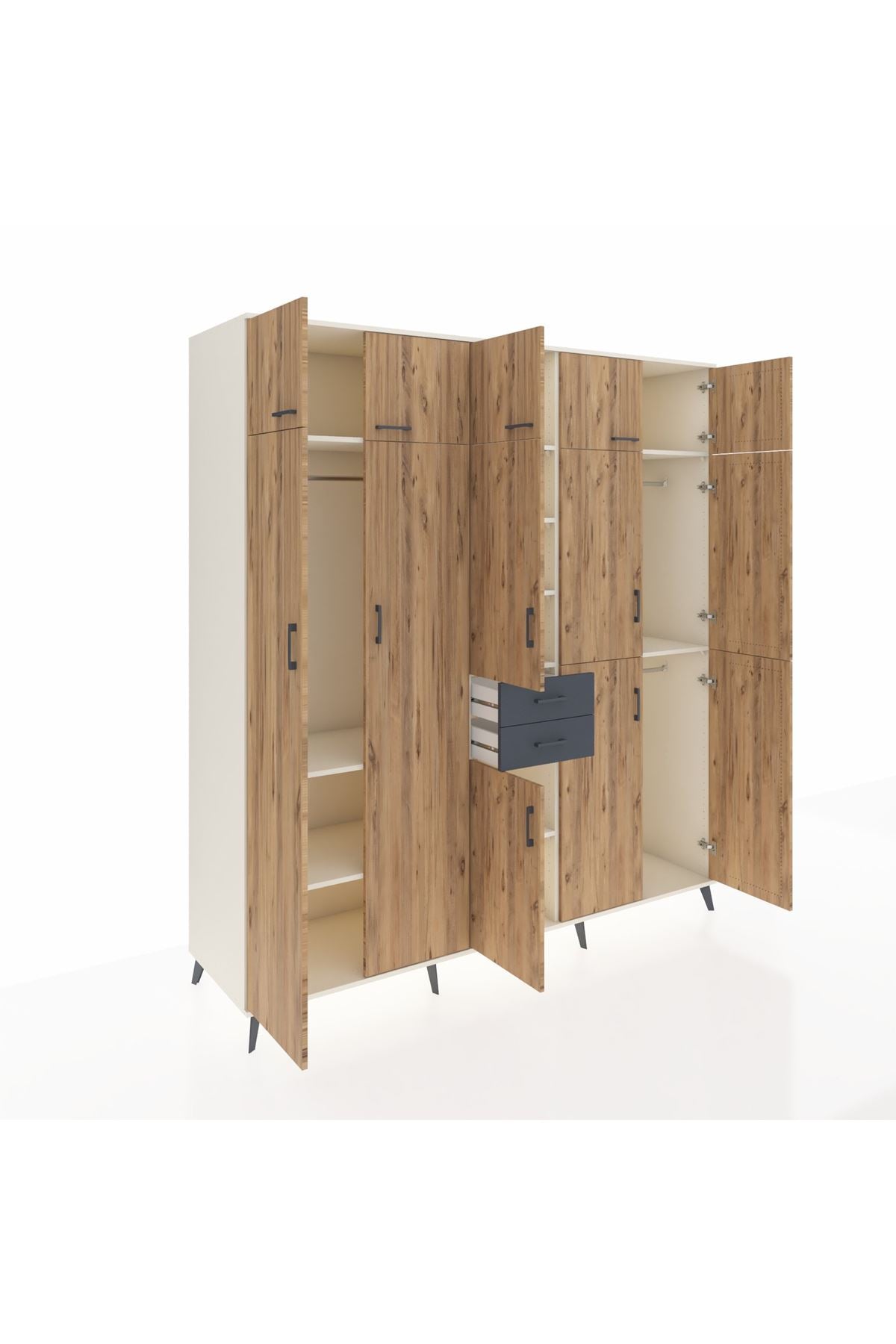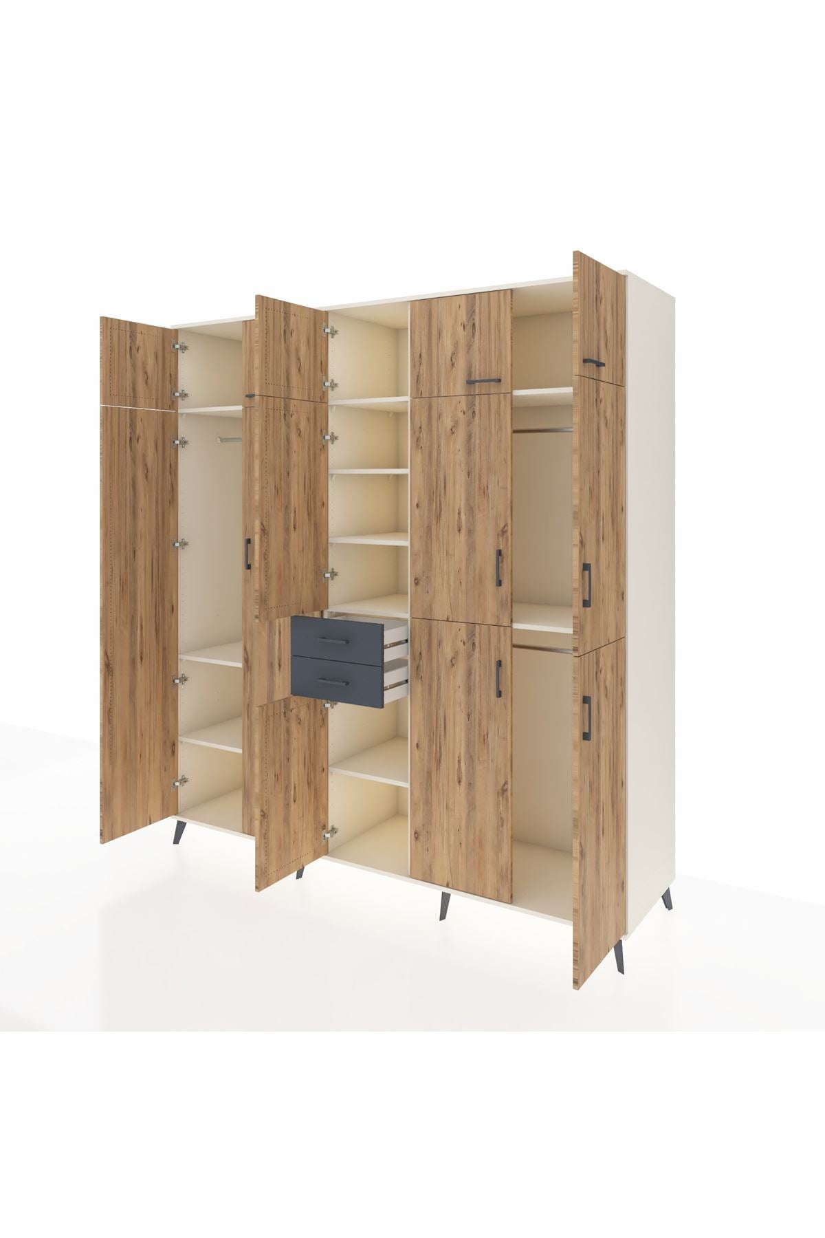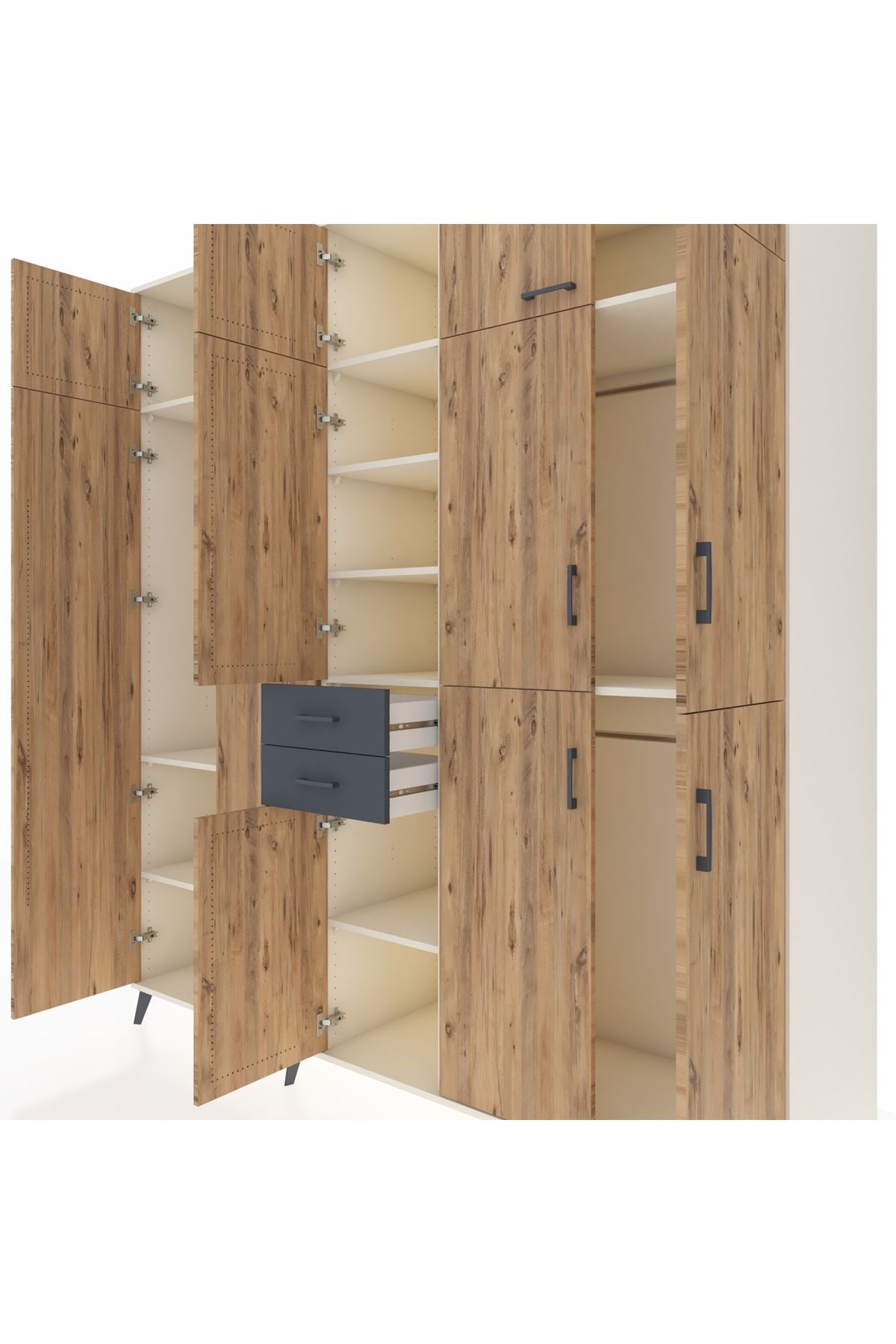 Kronos Dolap 10 Raflı 2 Çekmeceli 3 Askılı 220x59x243 Aytaşı-Çam/Antrasit