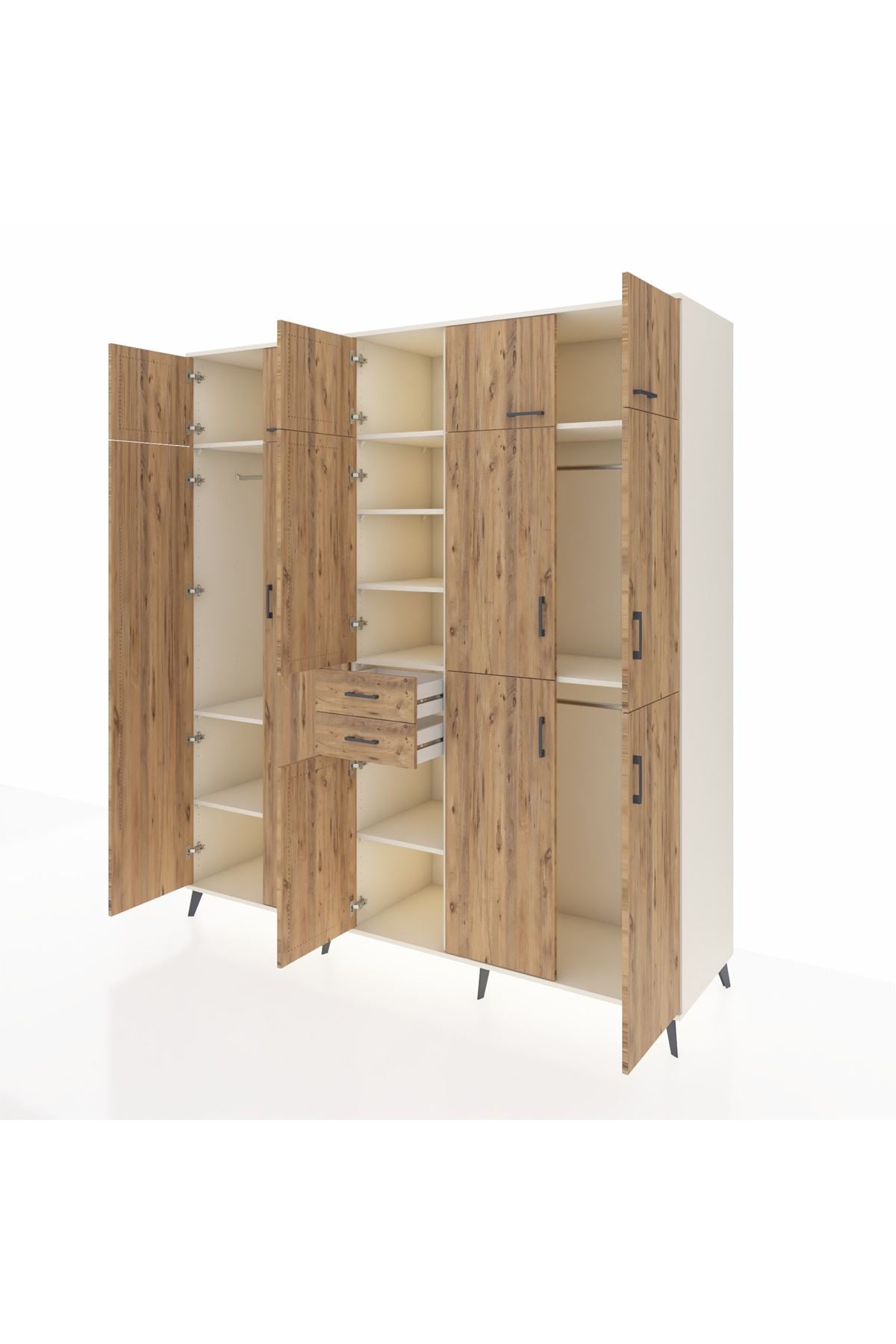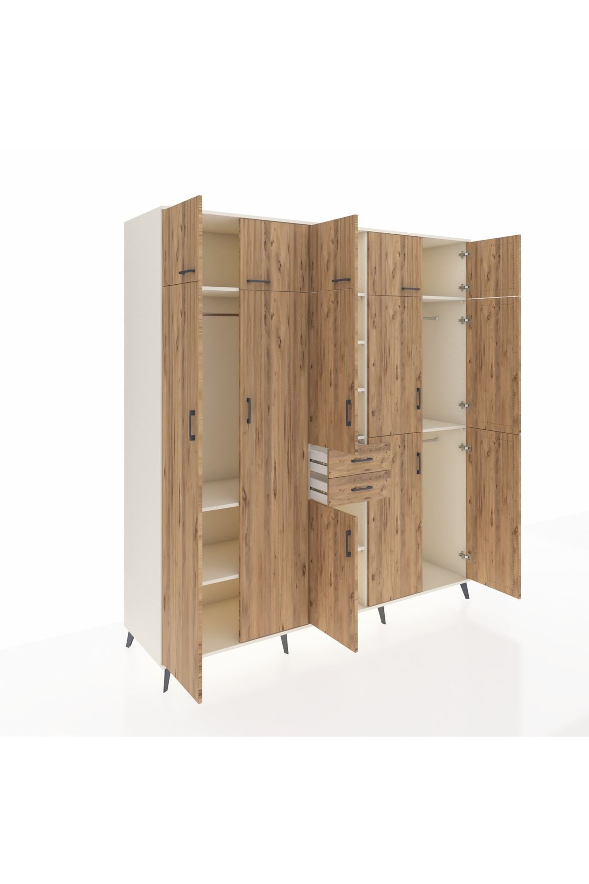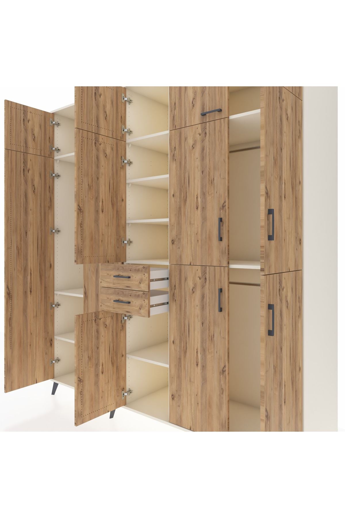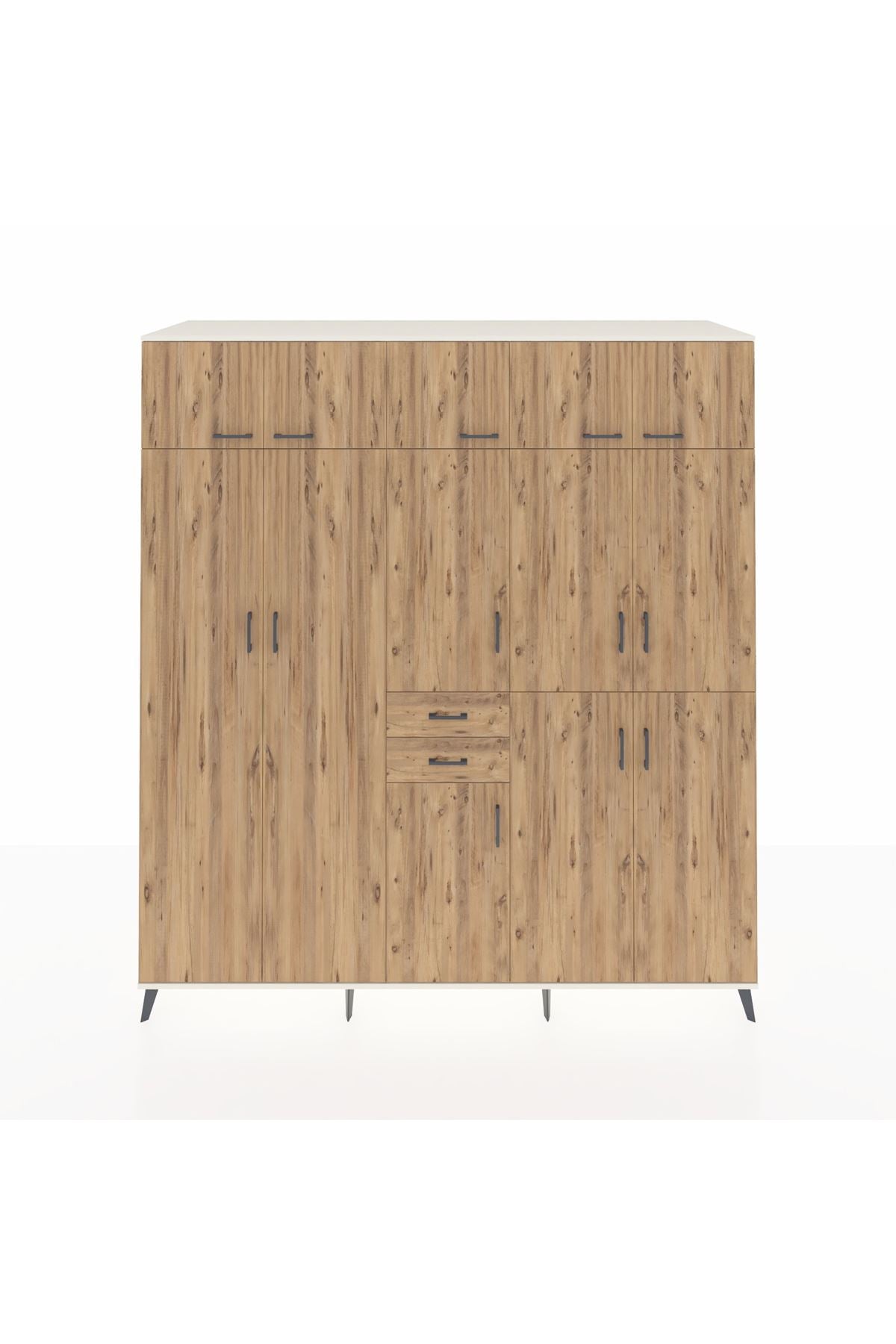Kronos Dolap 10 Raflı 2 Çekmeceli 3 Askılı 220x59x243 Aytaşı-Çam/Çam