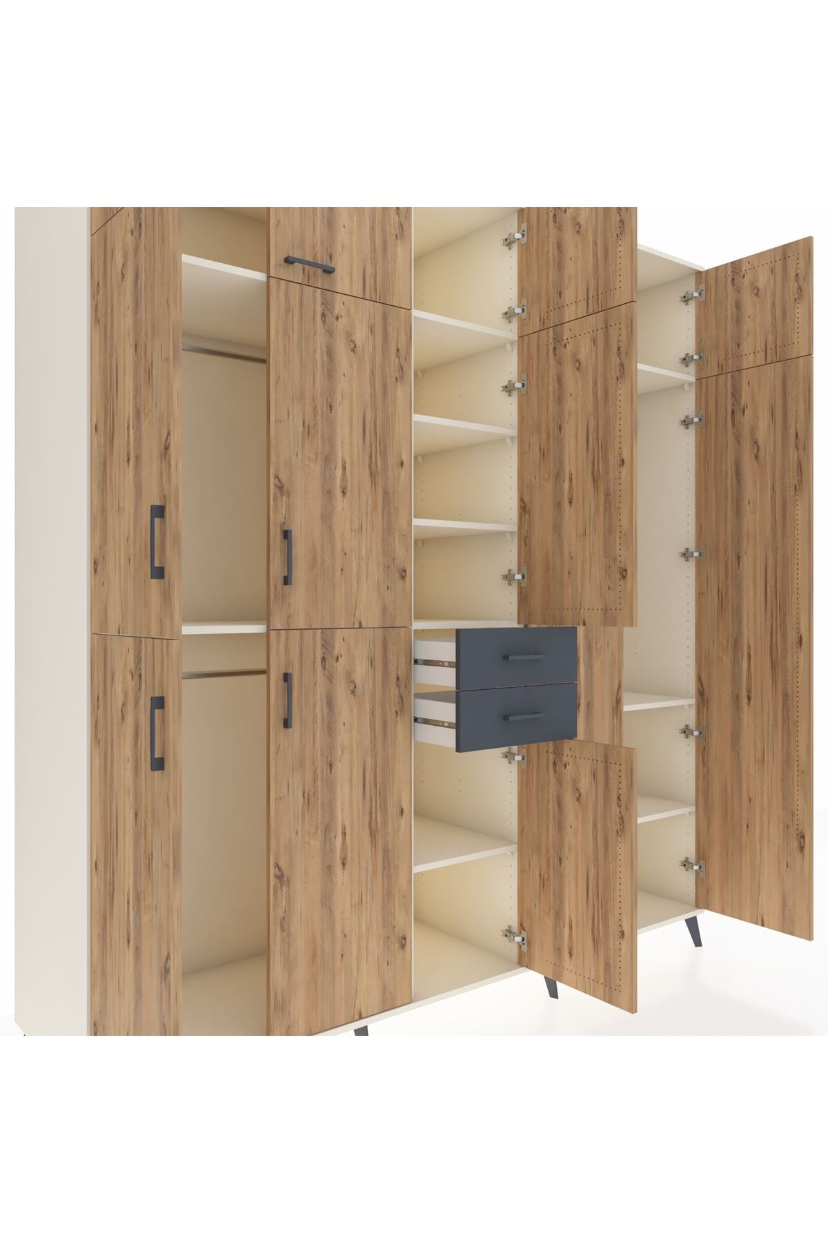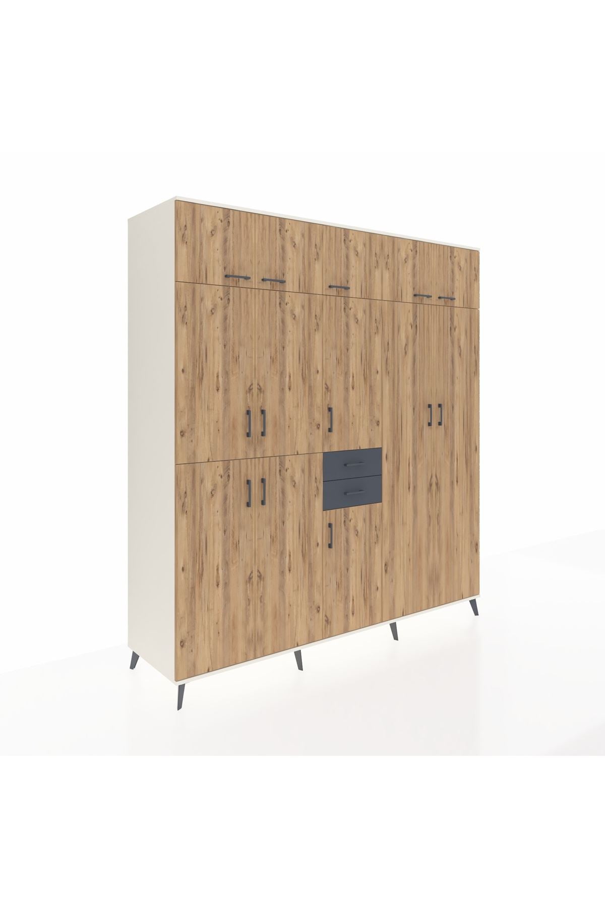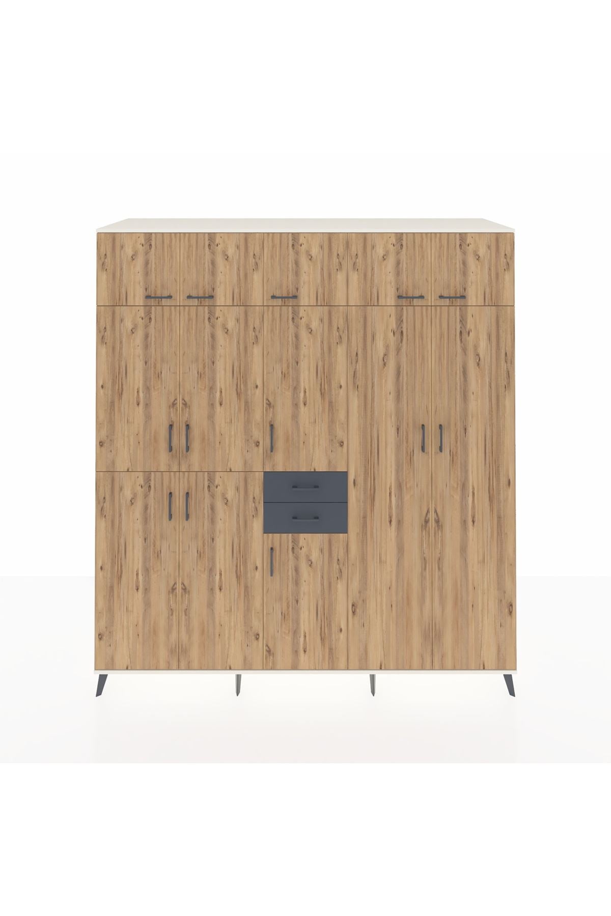Kronos Dolap 10 Raflı 2 Çekmeceli 3 Askılı 220x59x243 Aytaşı-Çam/Antrasit