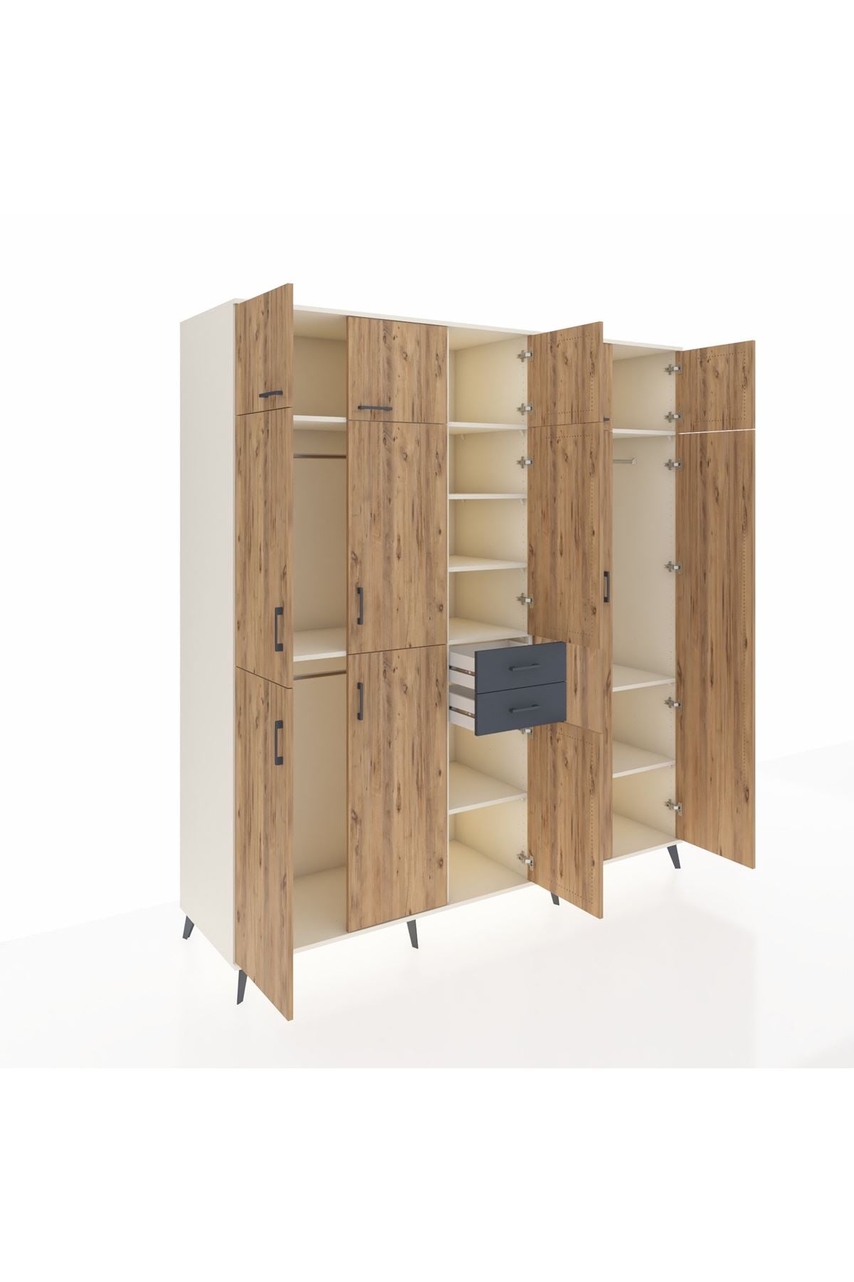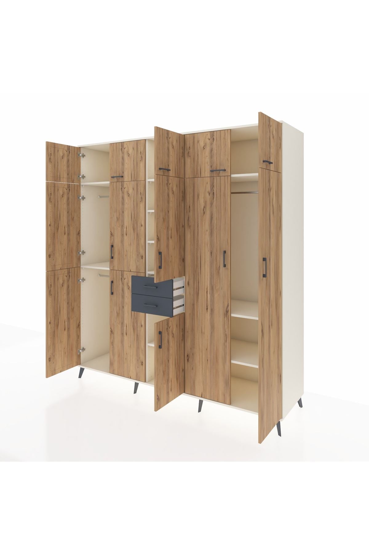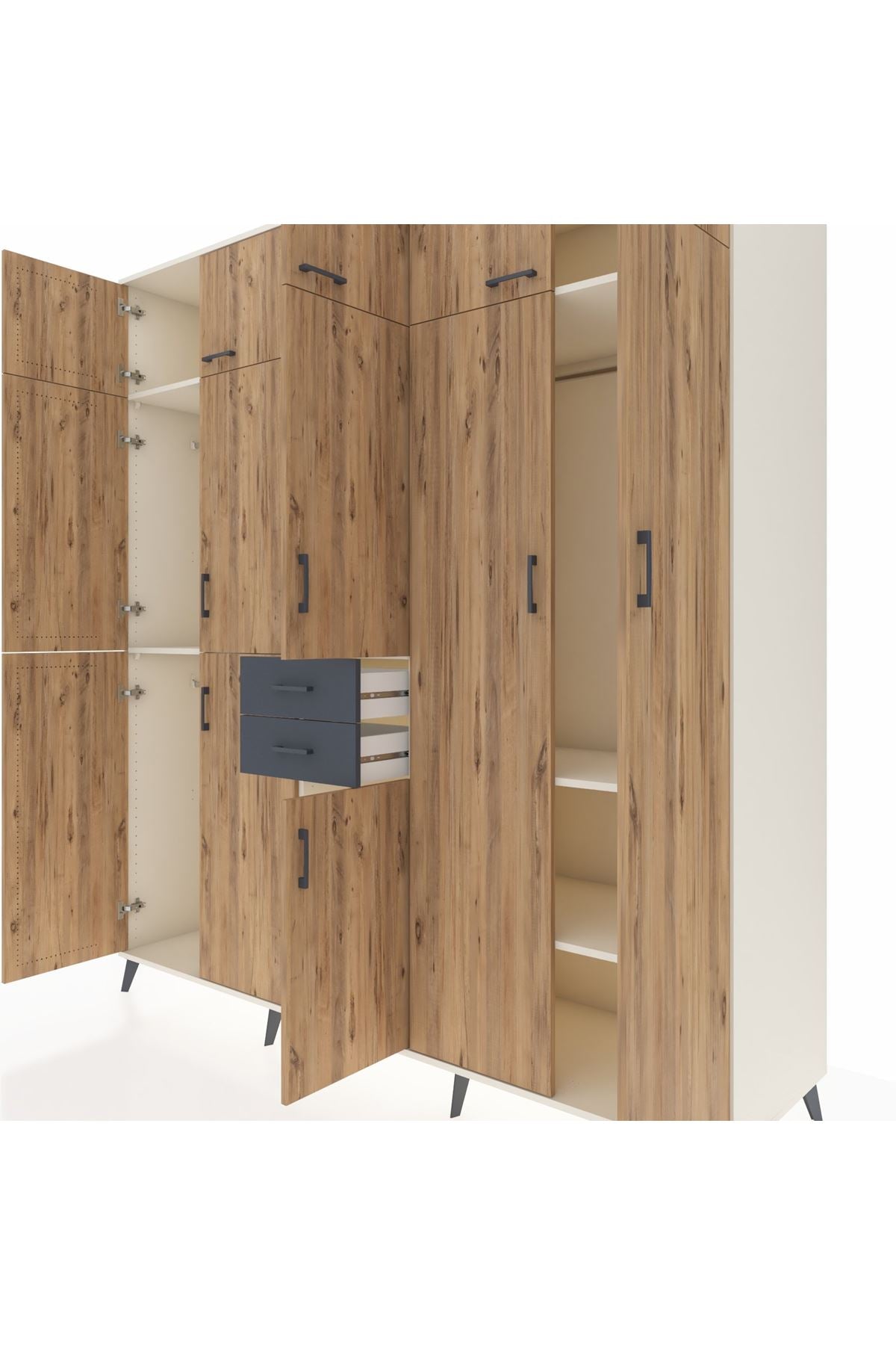 Kronos Dolap 10 Raflı 2 Çekmeceli 3 Askılı 220x59x243 Aytaşı-Çam/Antrasit