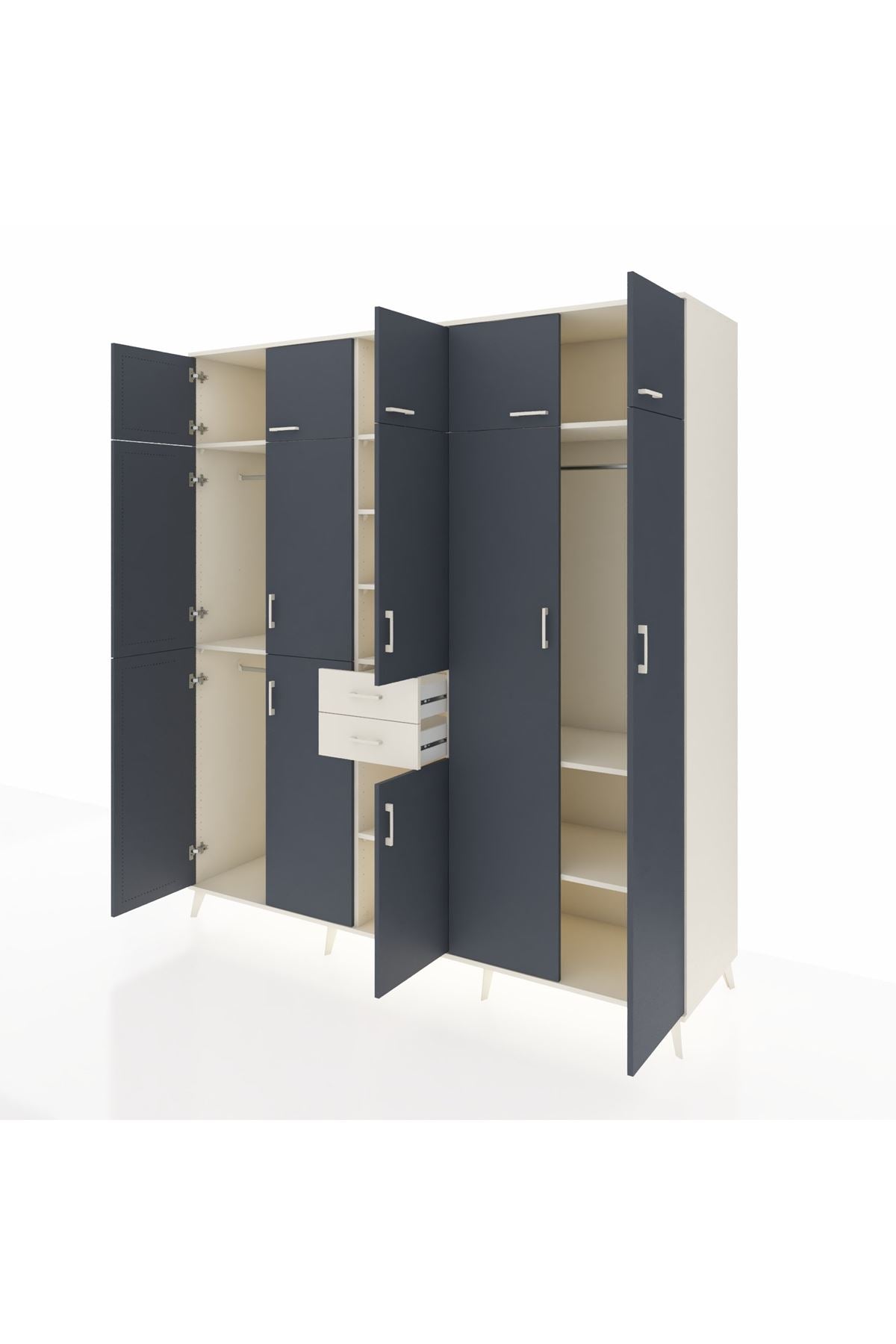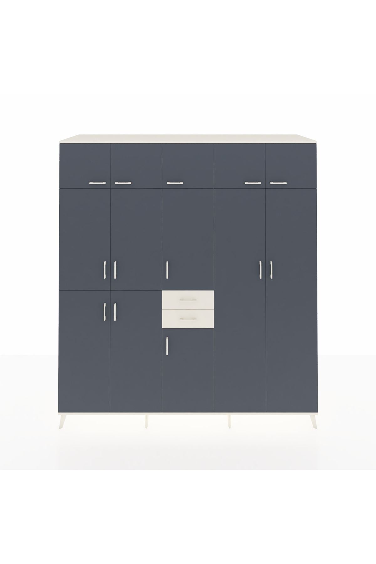 Kronos Dolap 10 Raflı 2 Çekmeceli 3 Askılı 220x59x243 Aytaşı-Antrasit/Aytaşı