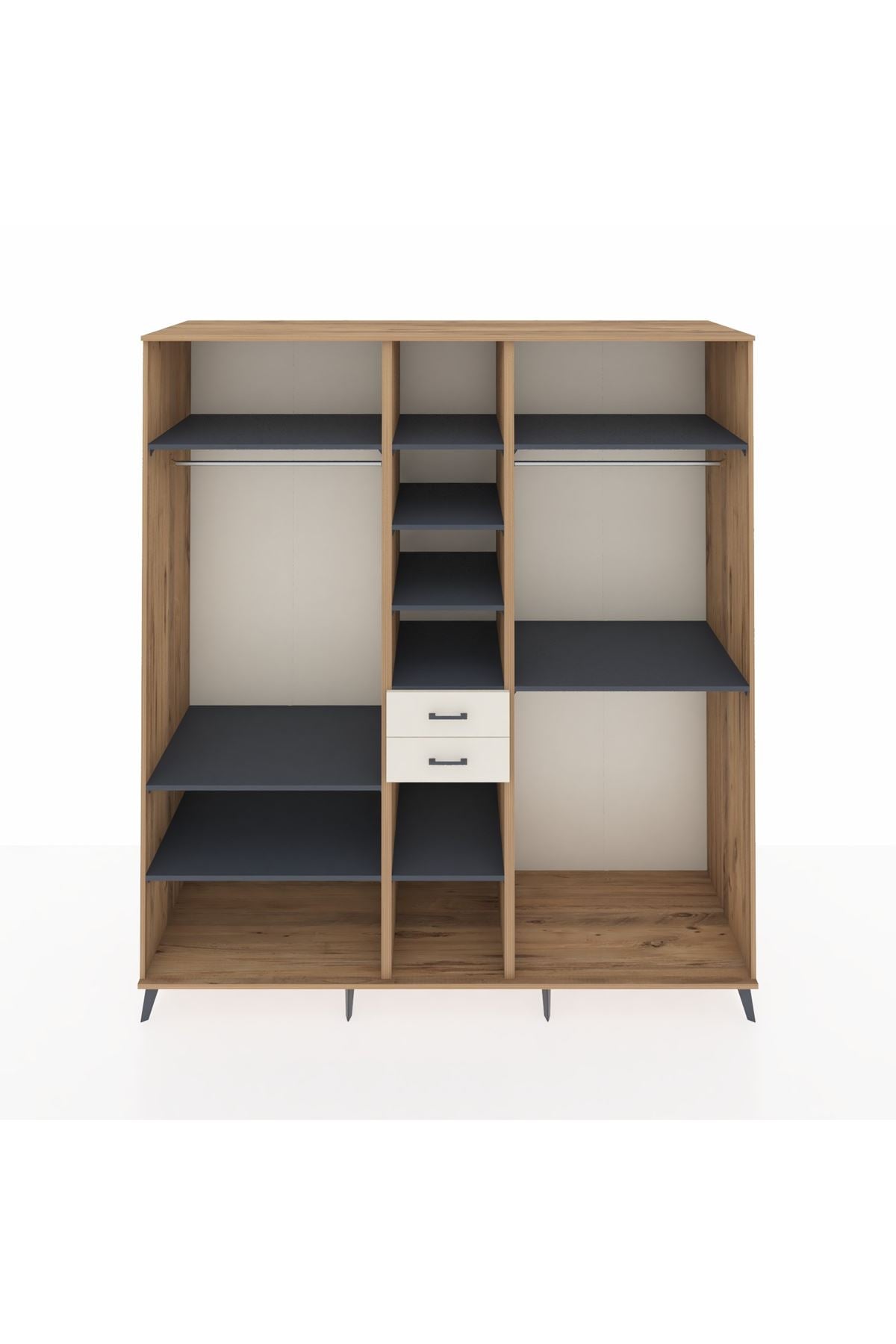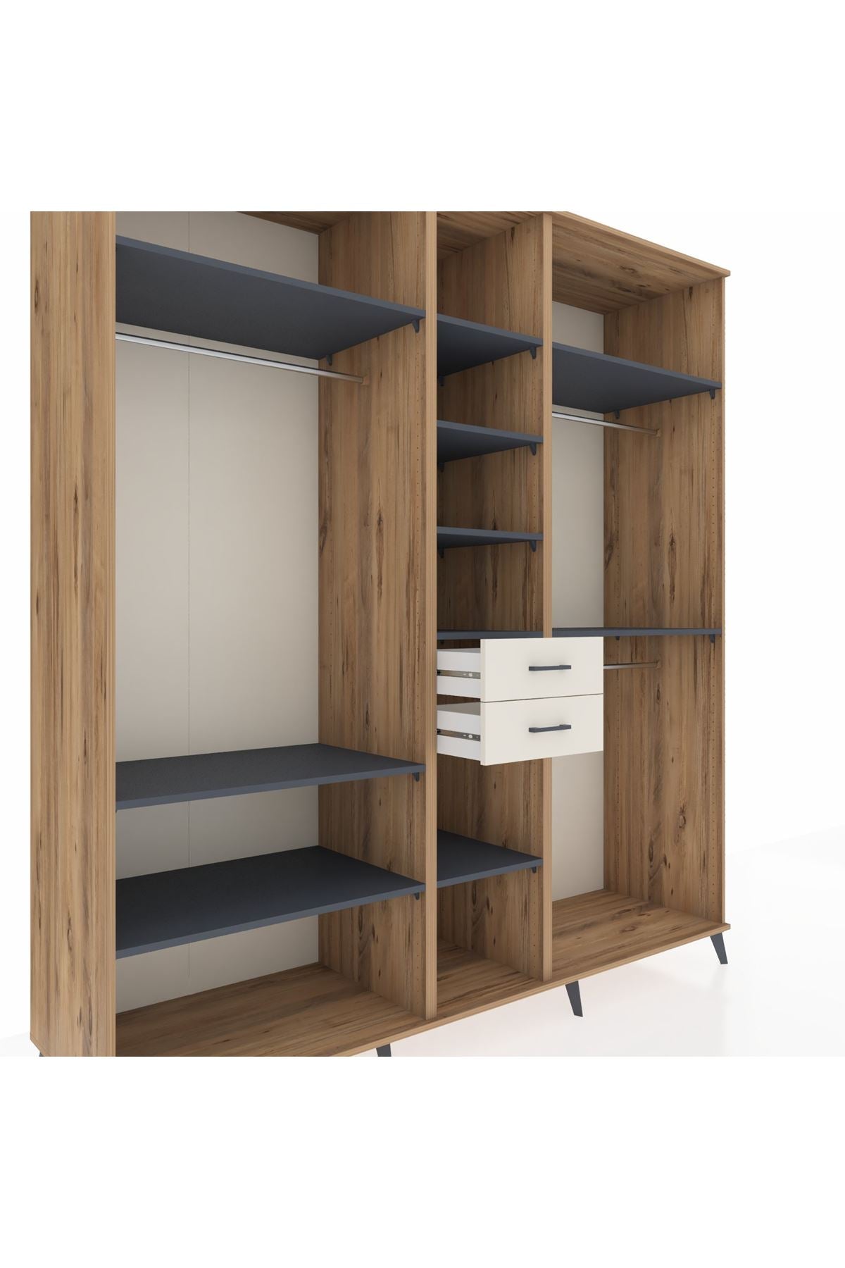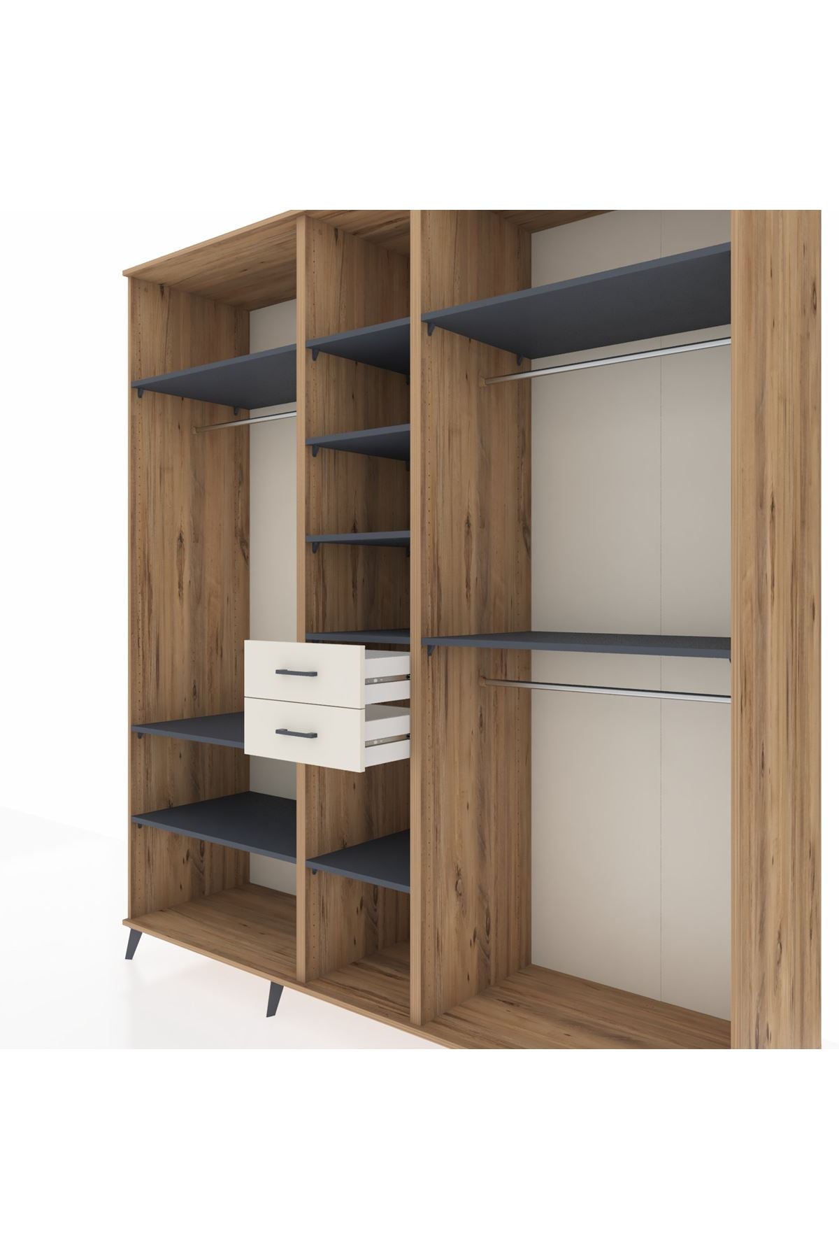 Kronos Dolap 10 Raflı 2 Çekmeceli 3 Askılı 220x59x243 Çam-Antrasit/Aytaşı