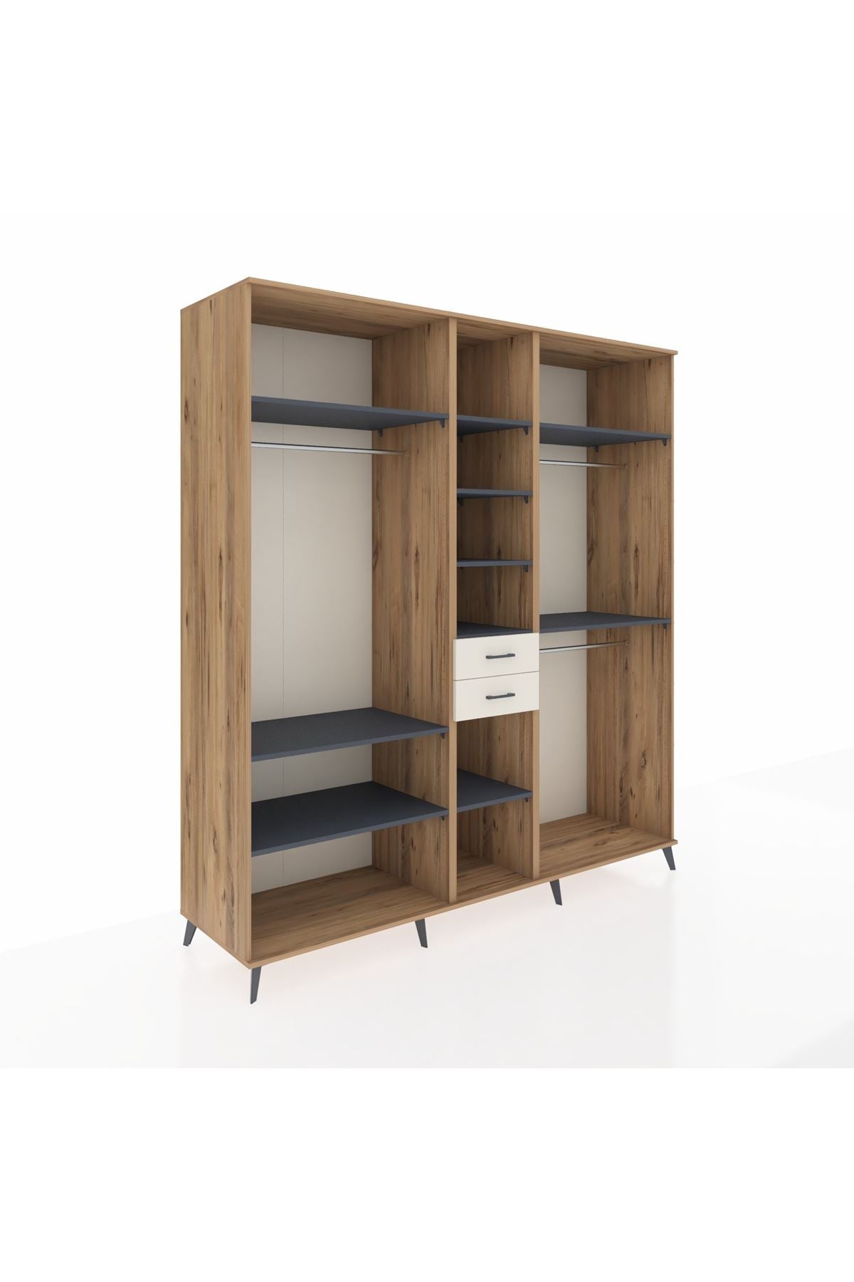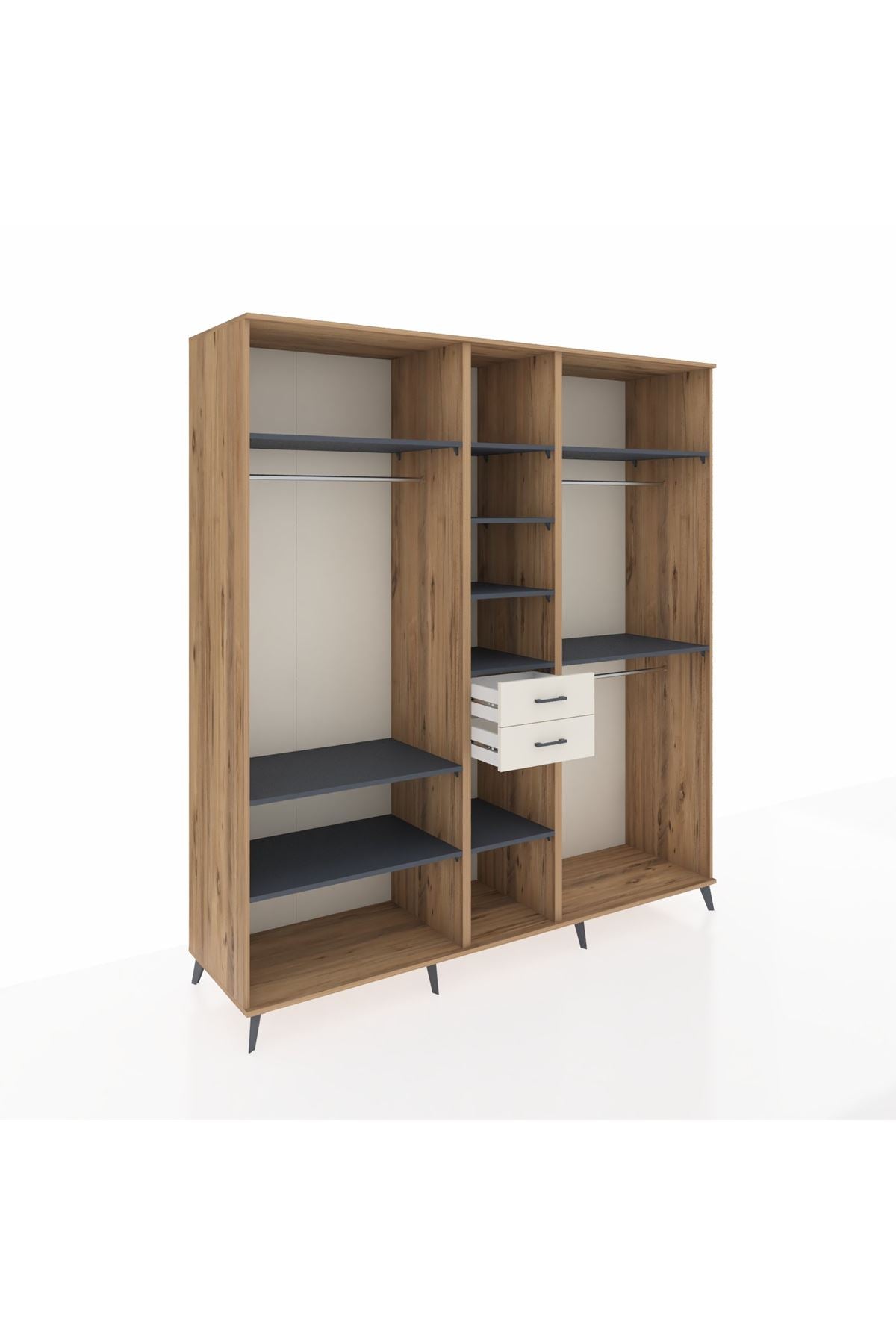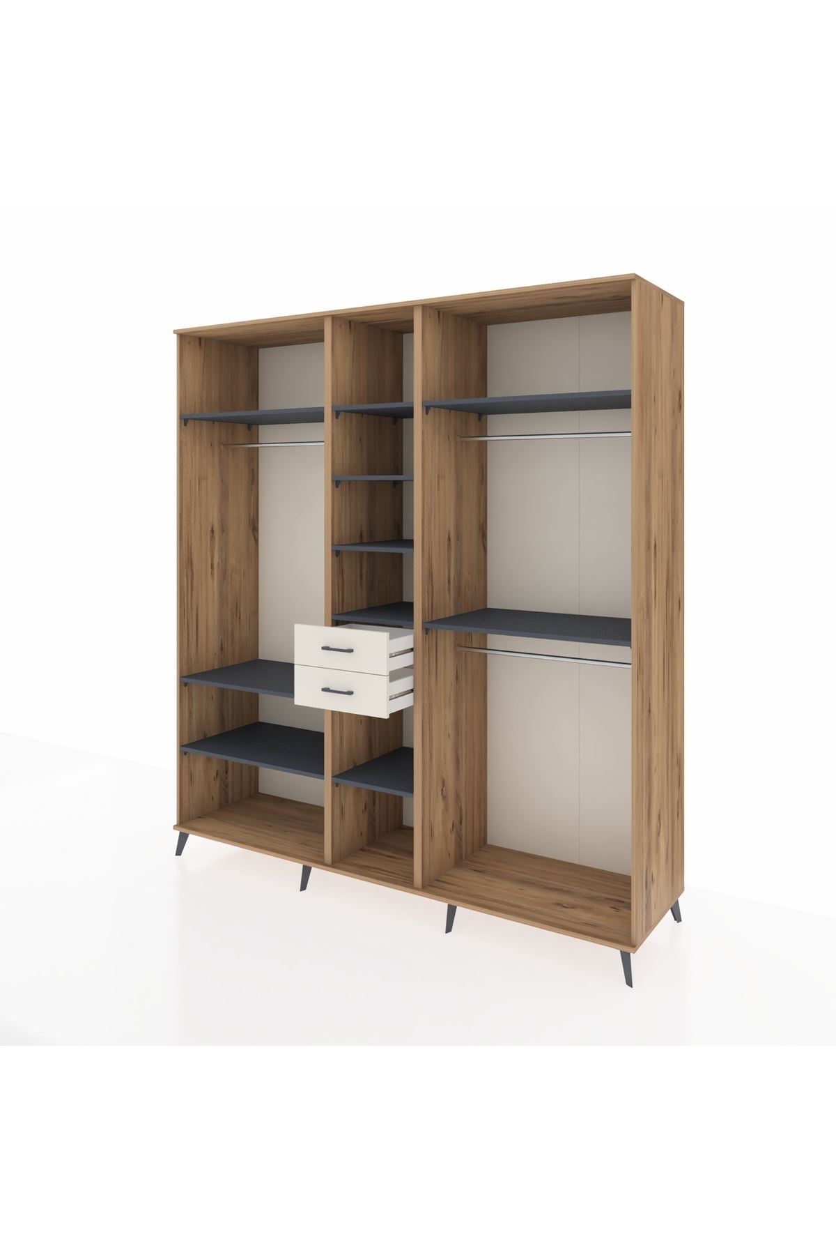 Kronos Dolap 10 Raflı 2 Çekmeceli 3 Askılı 220x59x243 Çam-Antrasit/Aytaşı