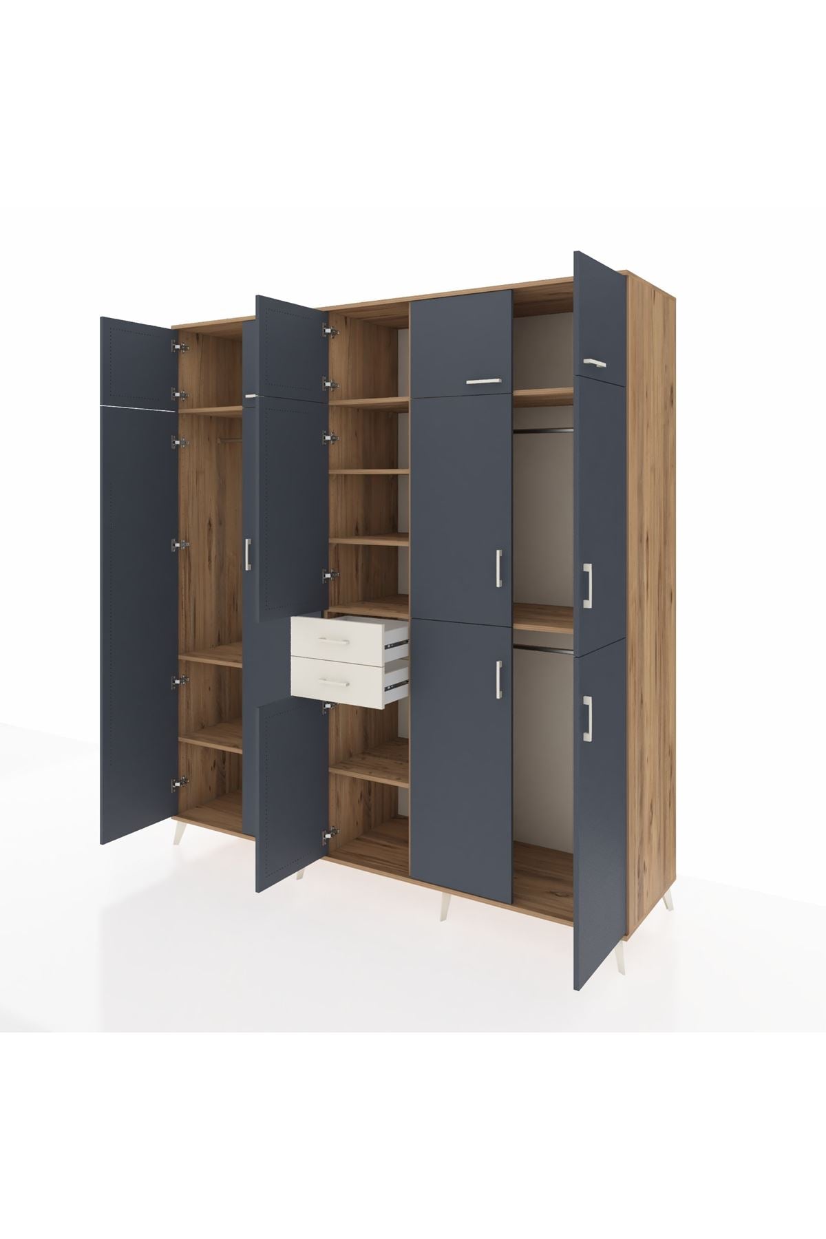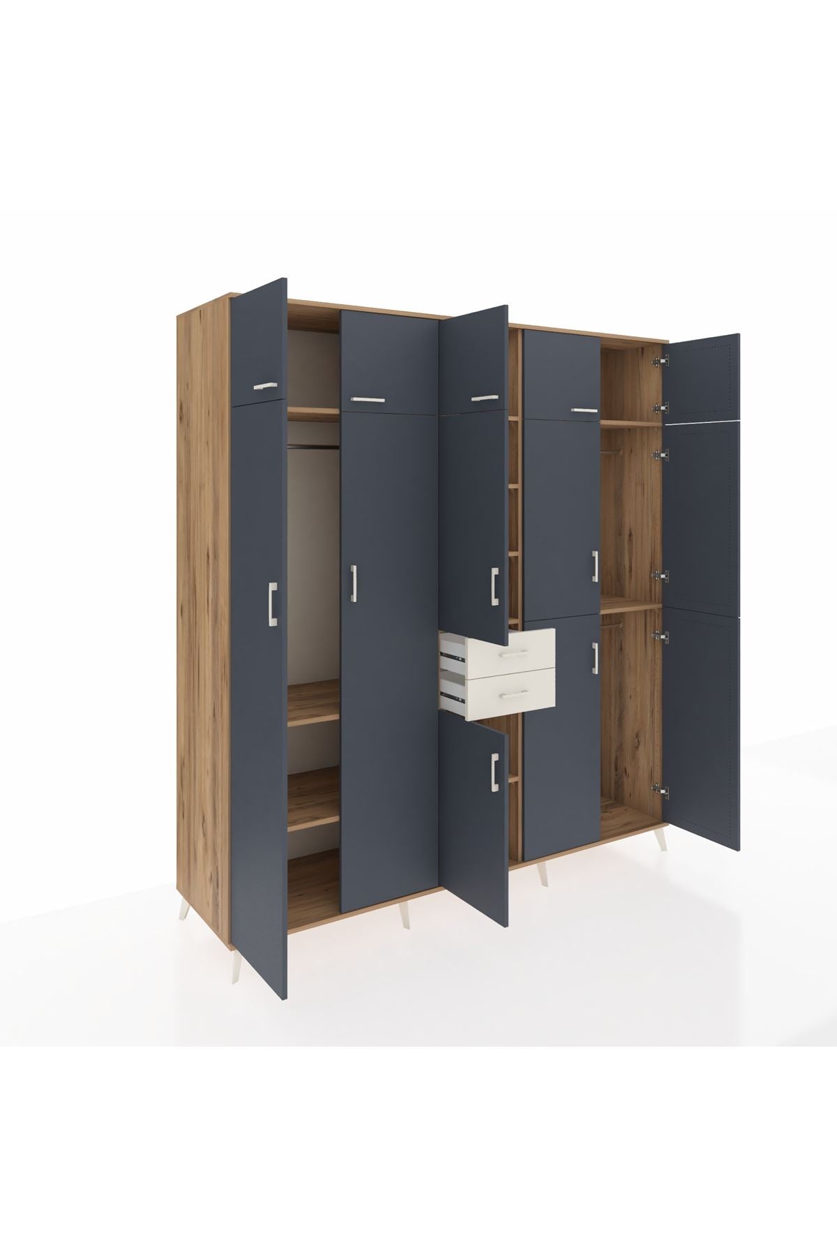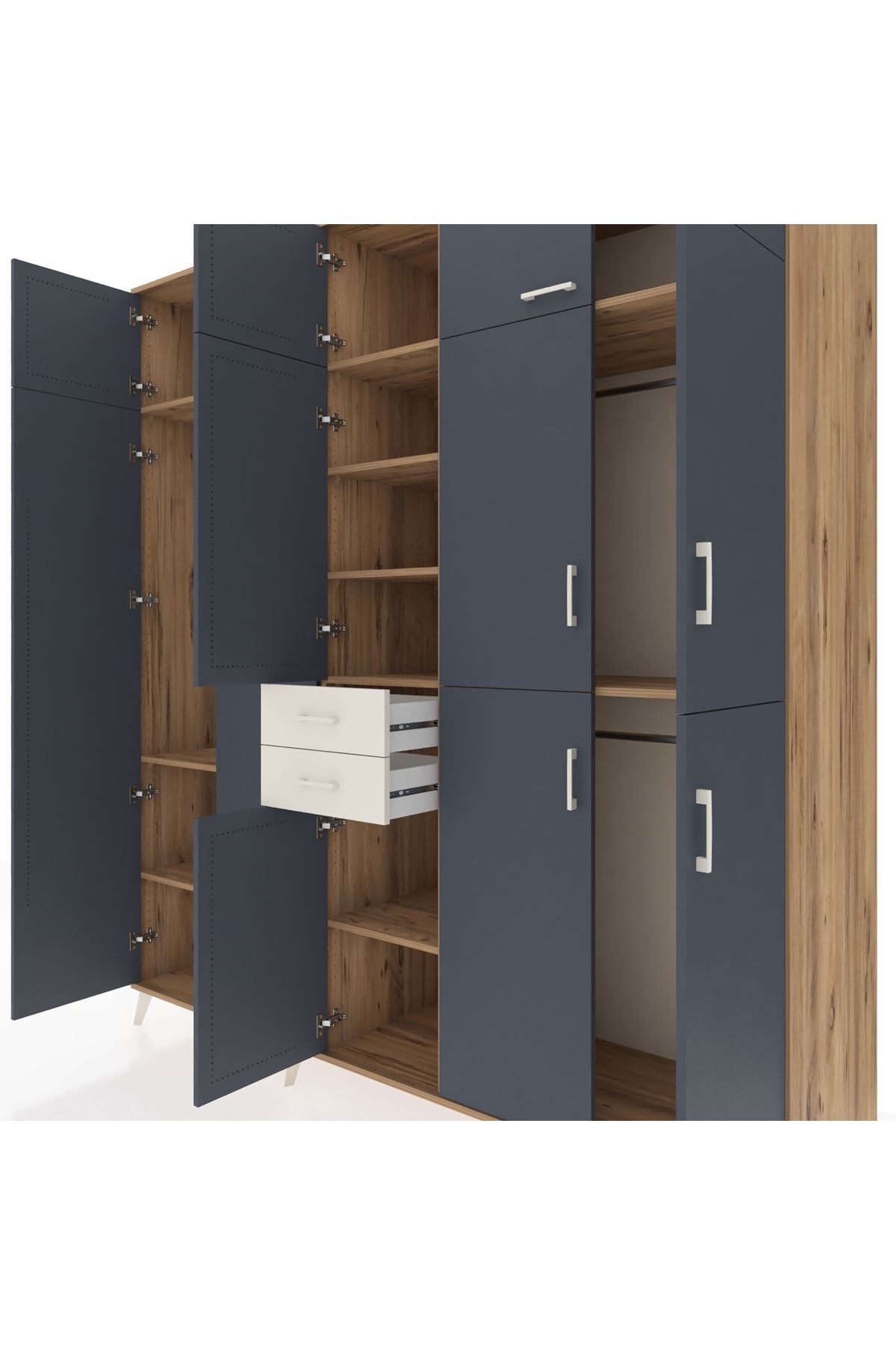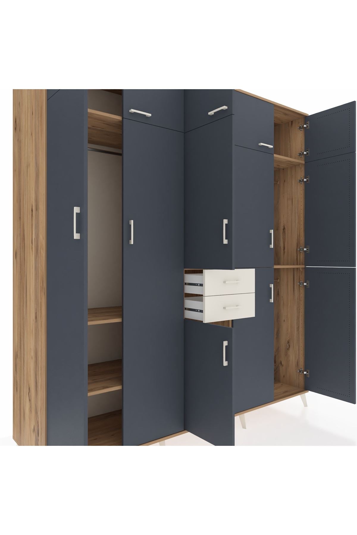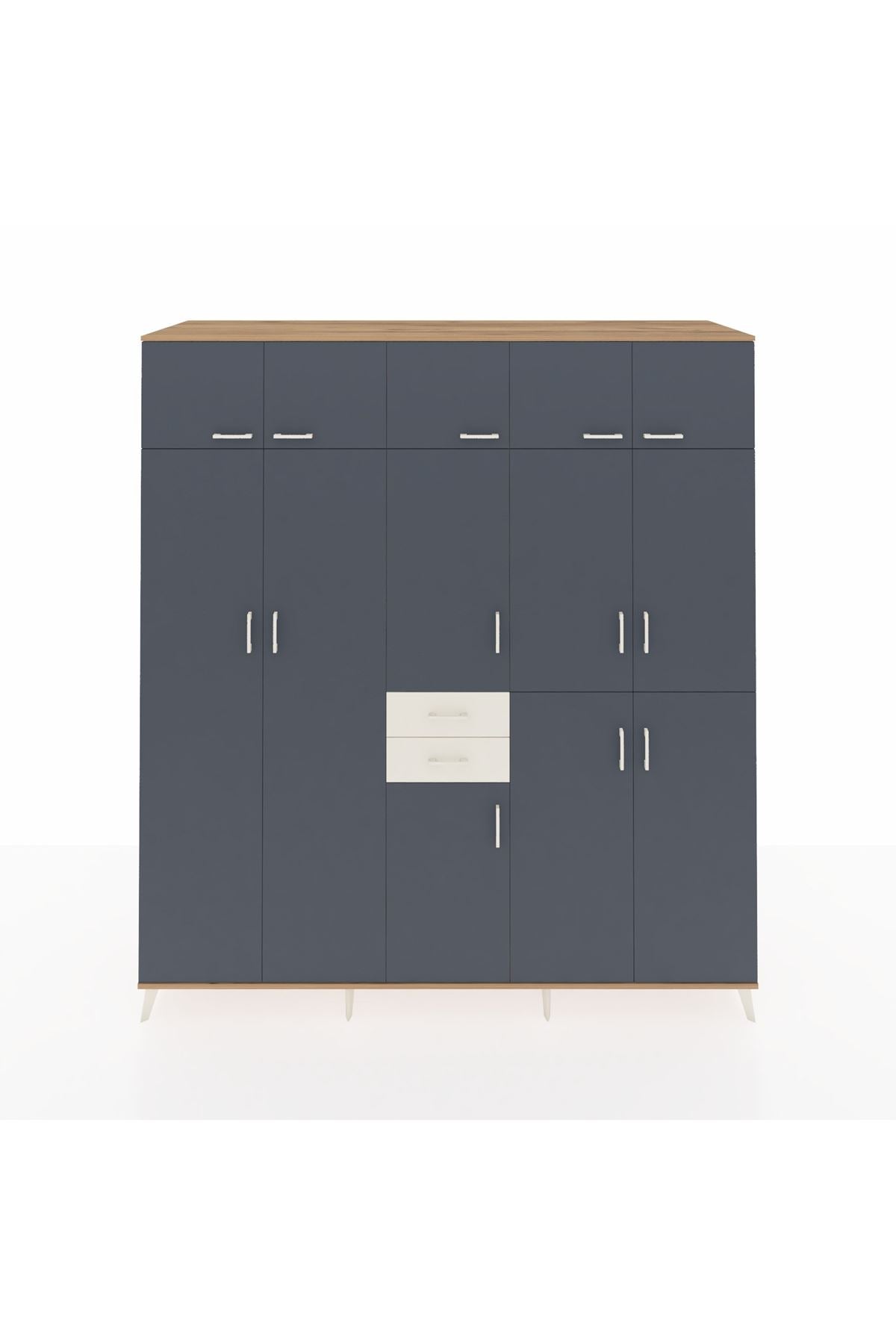 Kronos Dolap 10 Raflı 2 Çekmeceli 3 Askılı 220x59x243 Çam-Antrasit/Aytaşı