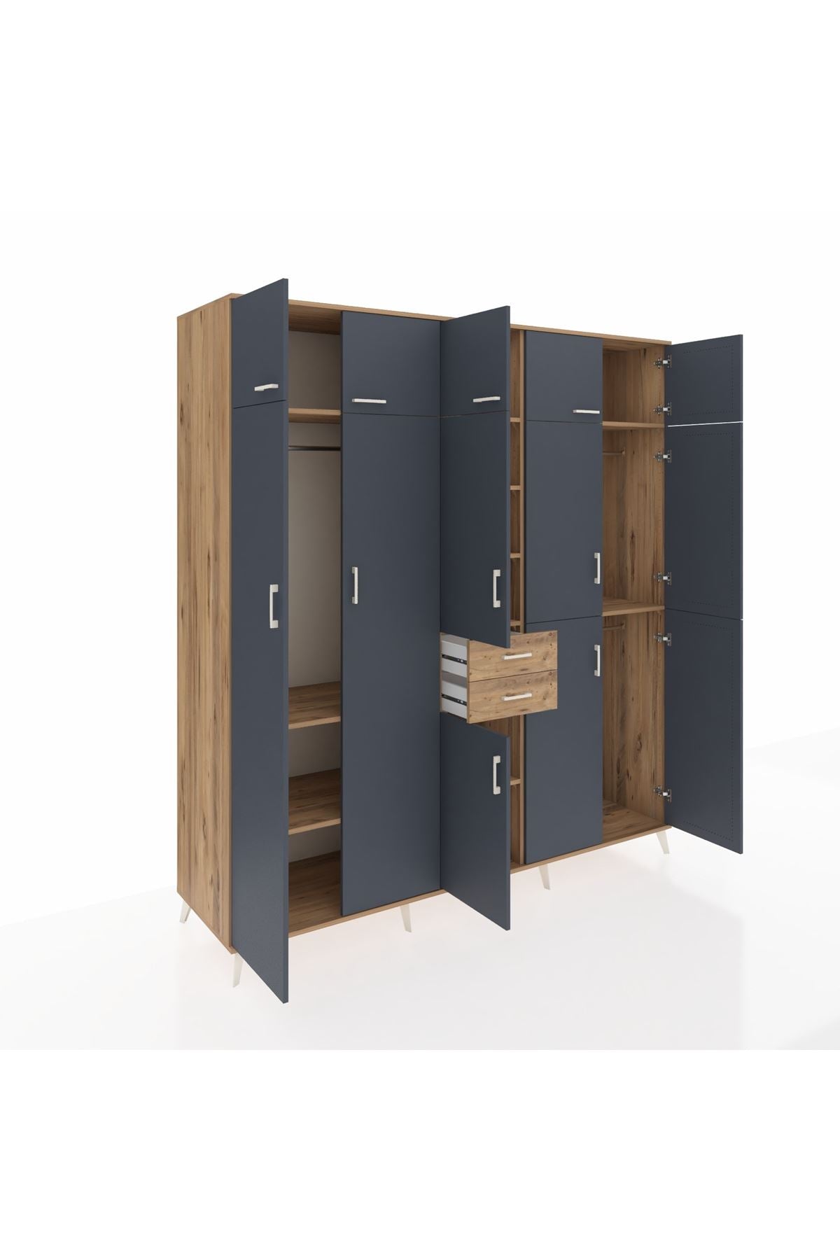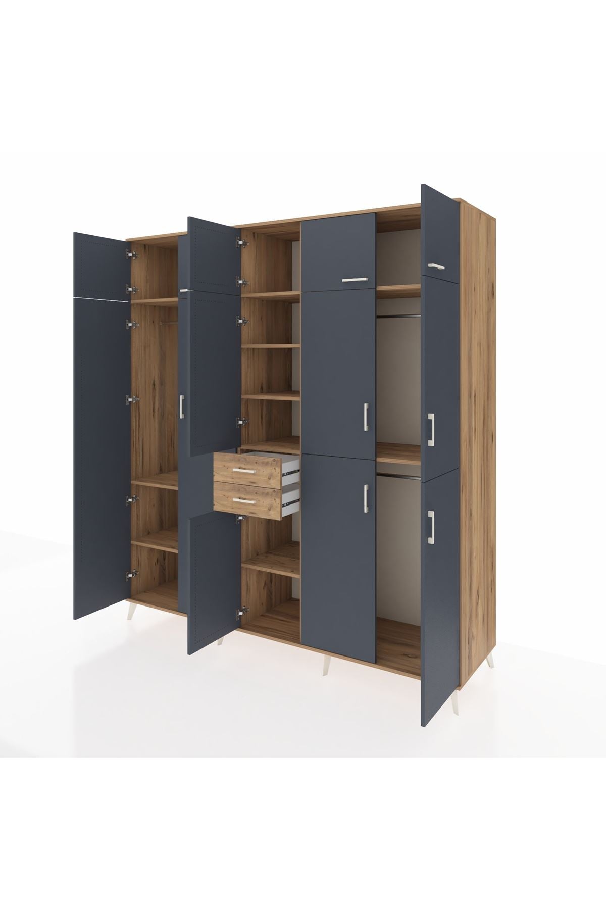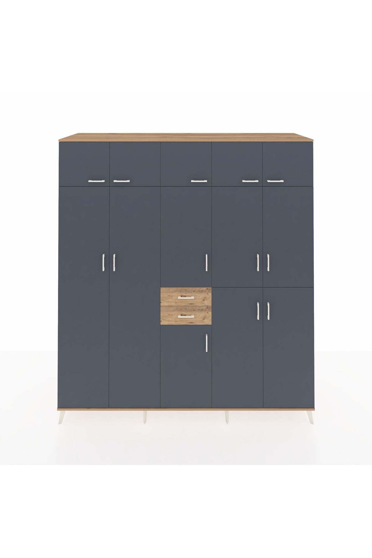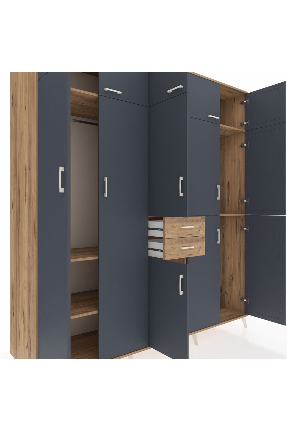 Kronos Dolap 10 Raflı 2 Çekmeceli 3 Askılı 220x59x243 Çam-Antrasit/Çam