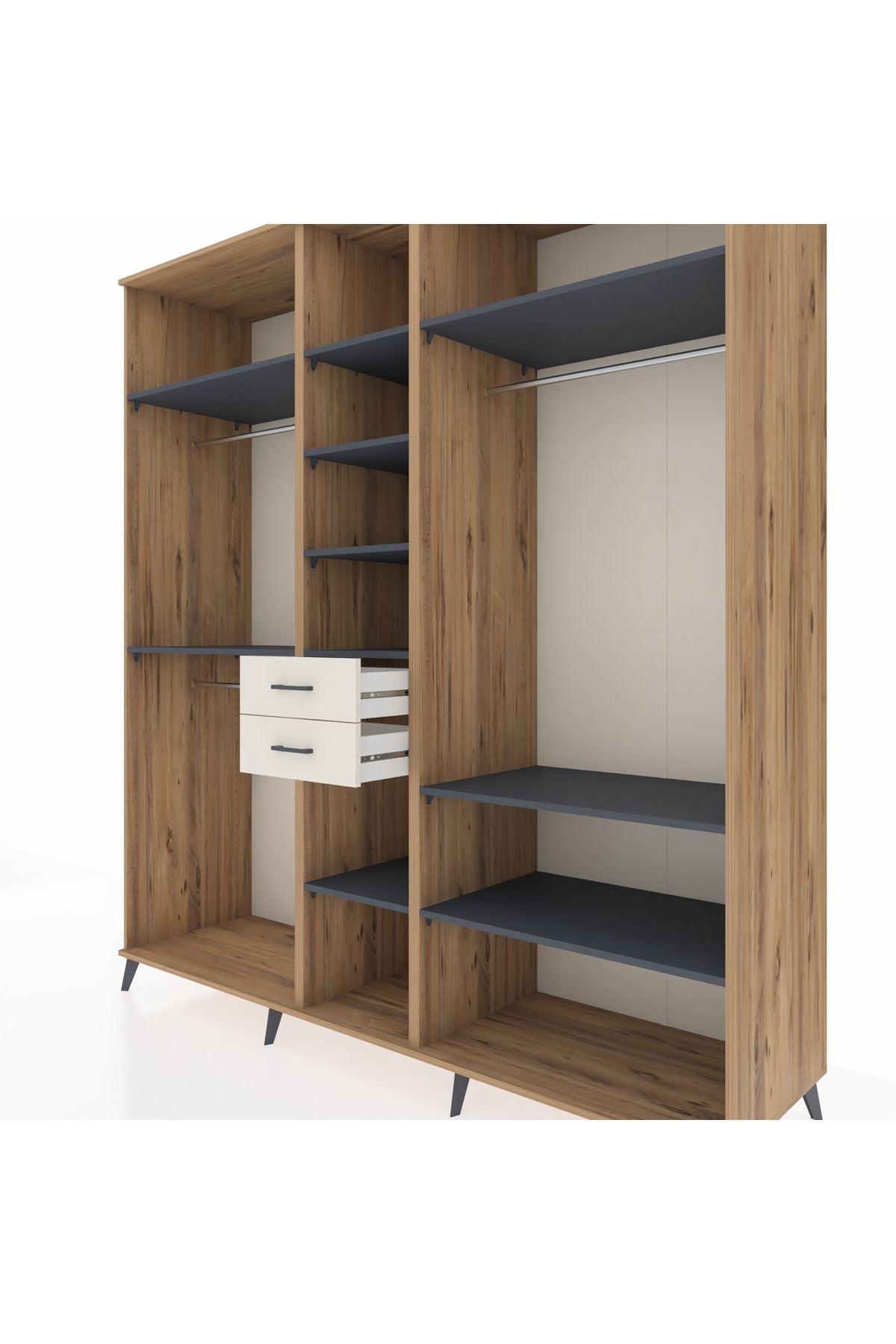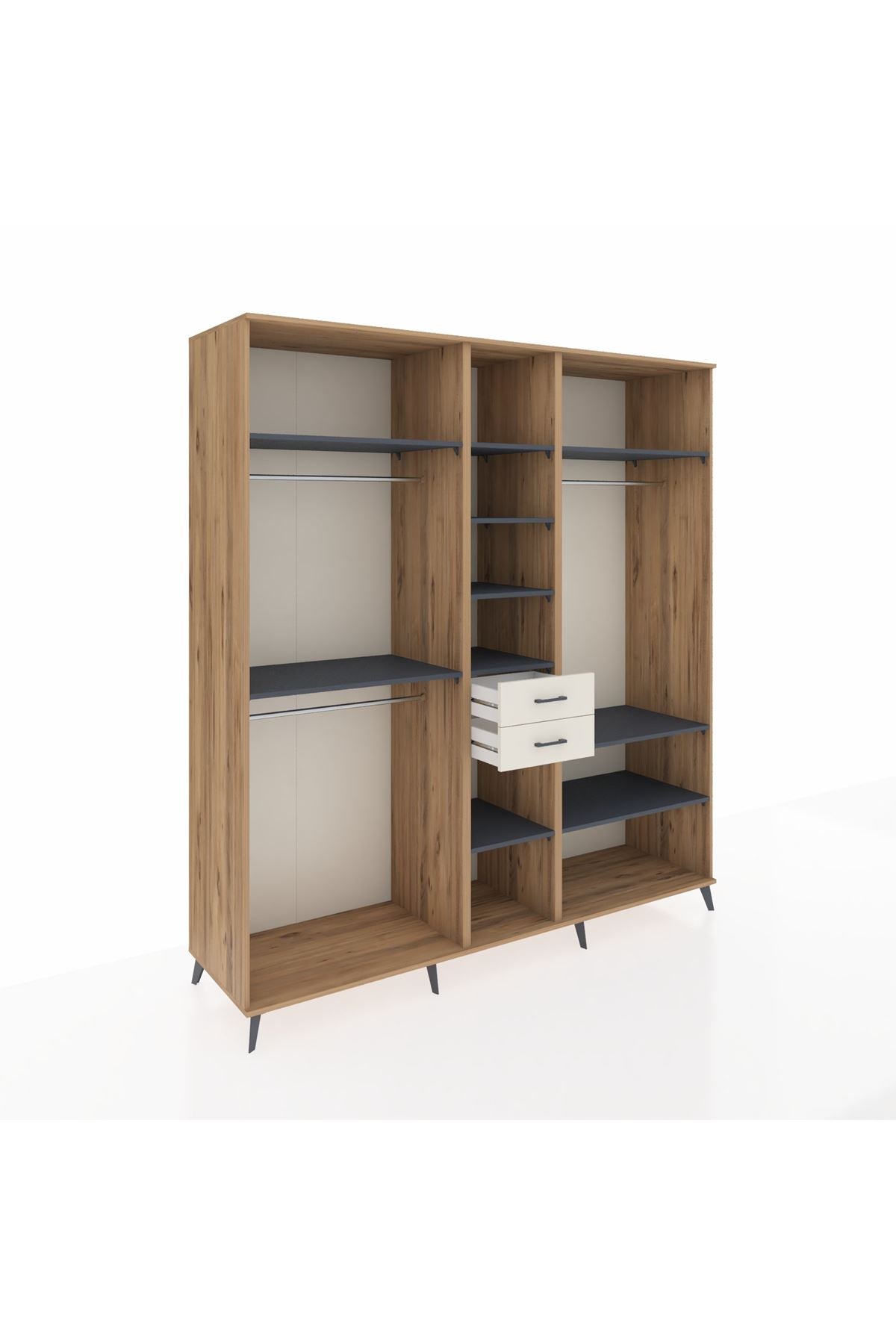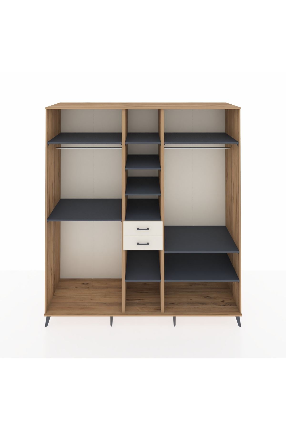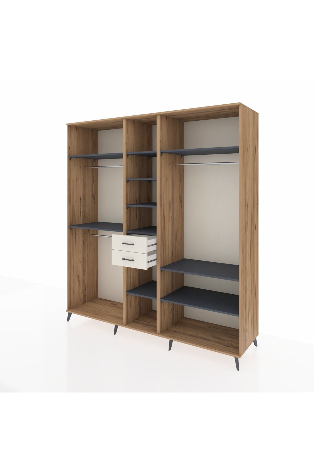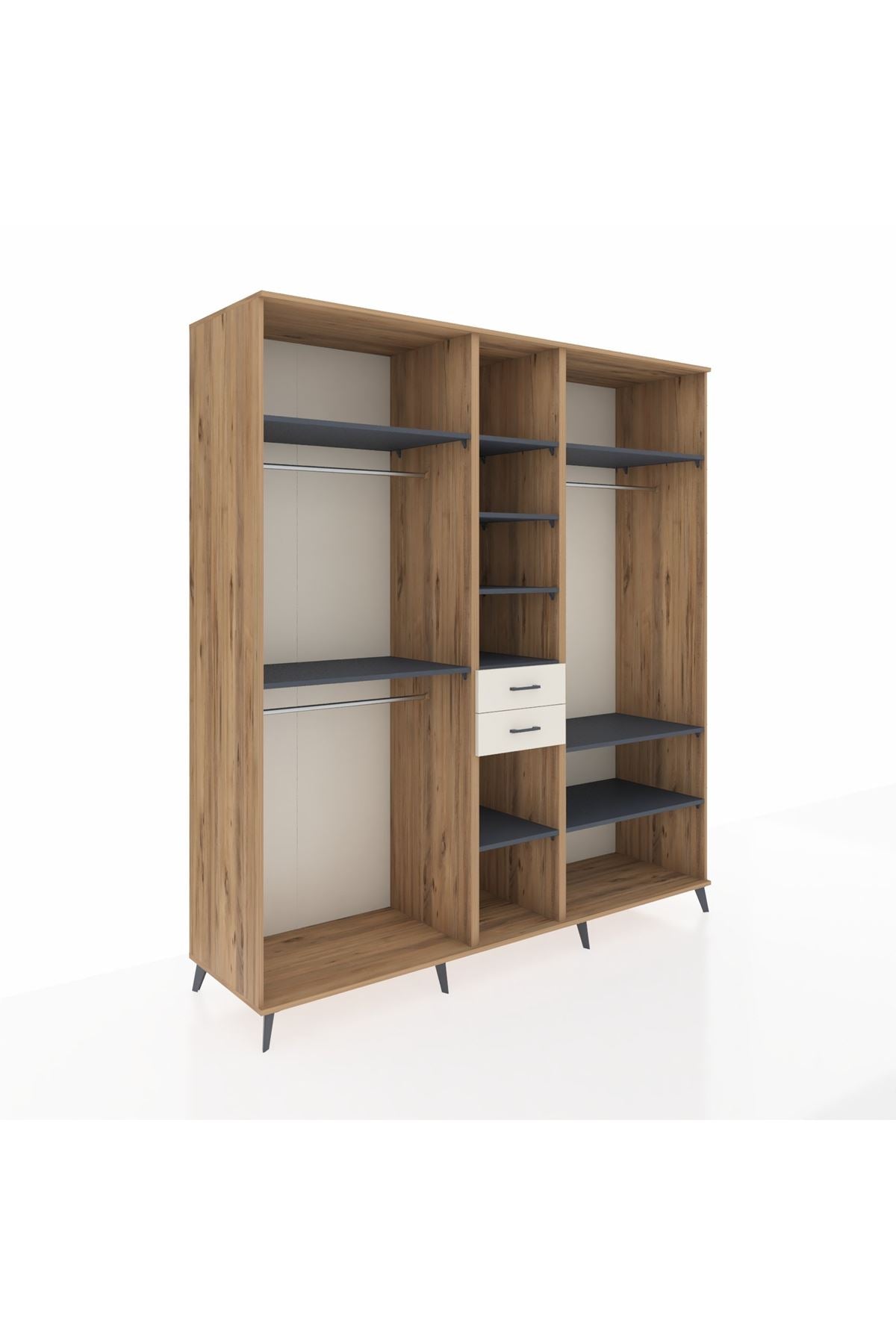 Kronos Dolap 10 Raflı 2 Çekmeceli 3 Askılı 220x59x243 Çam-Antrasit/Aytaşı