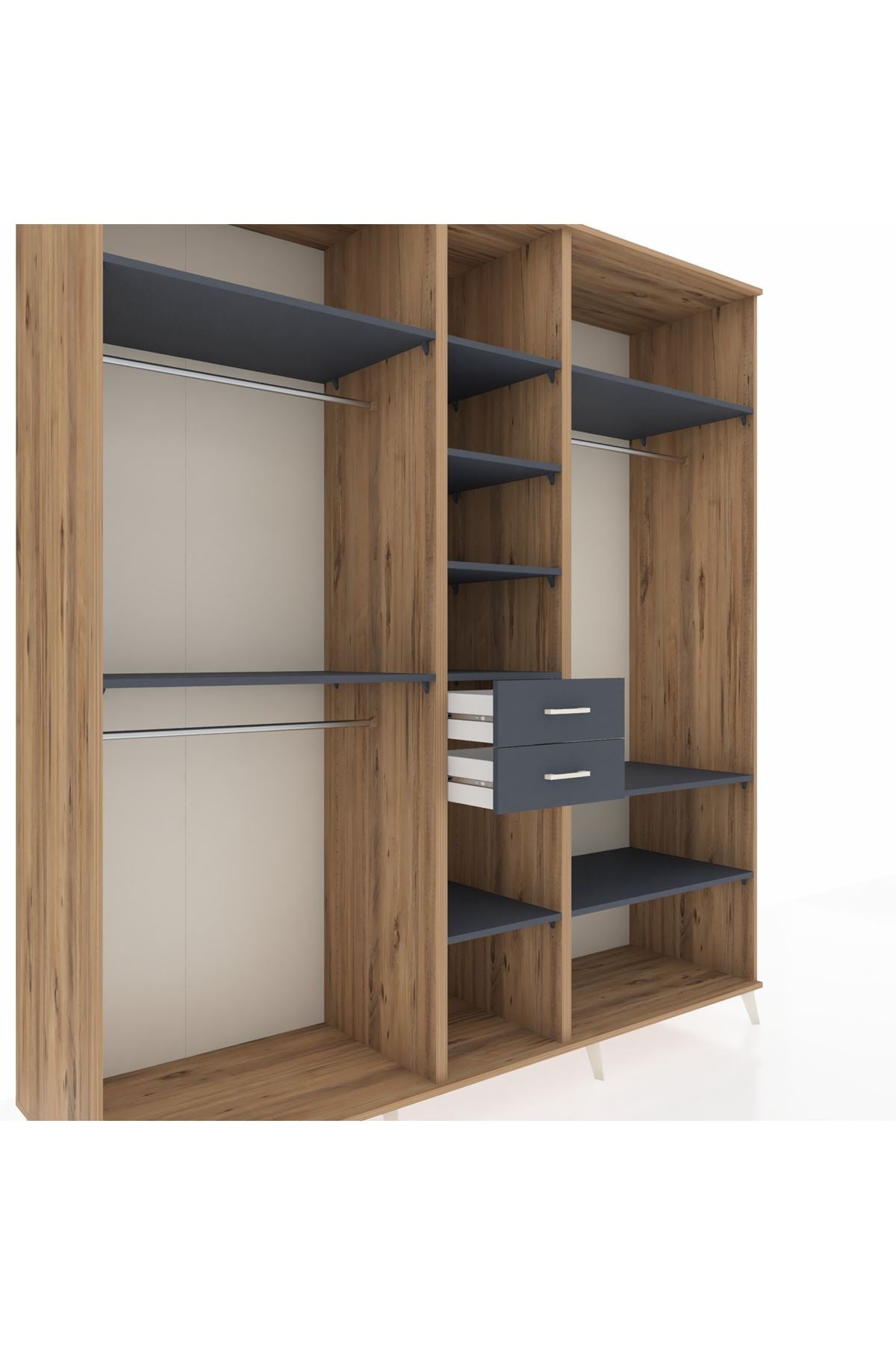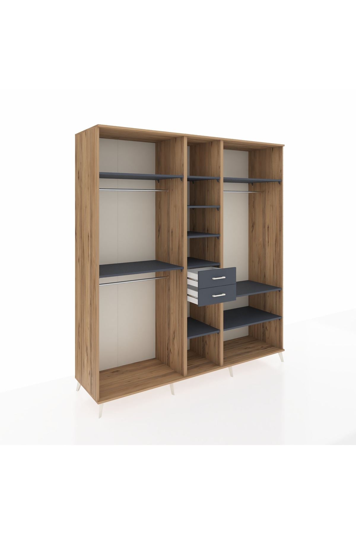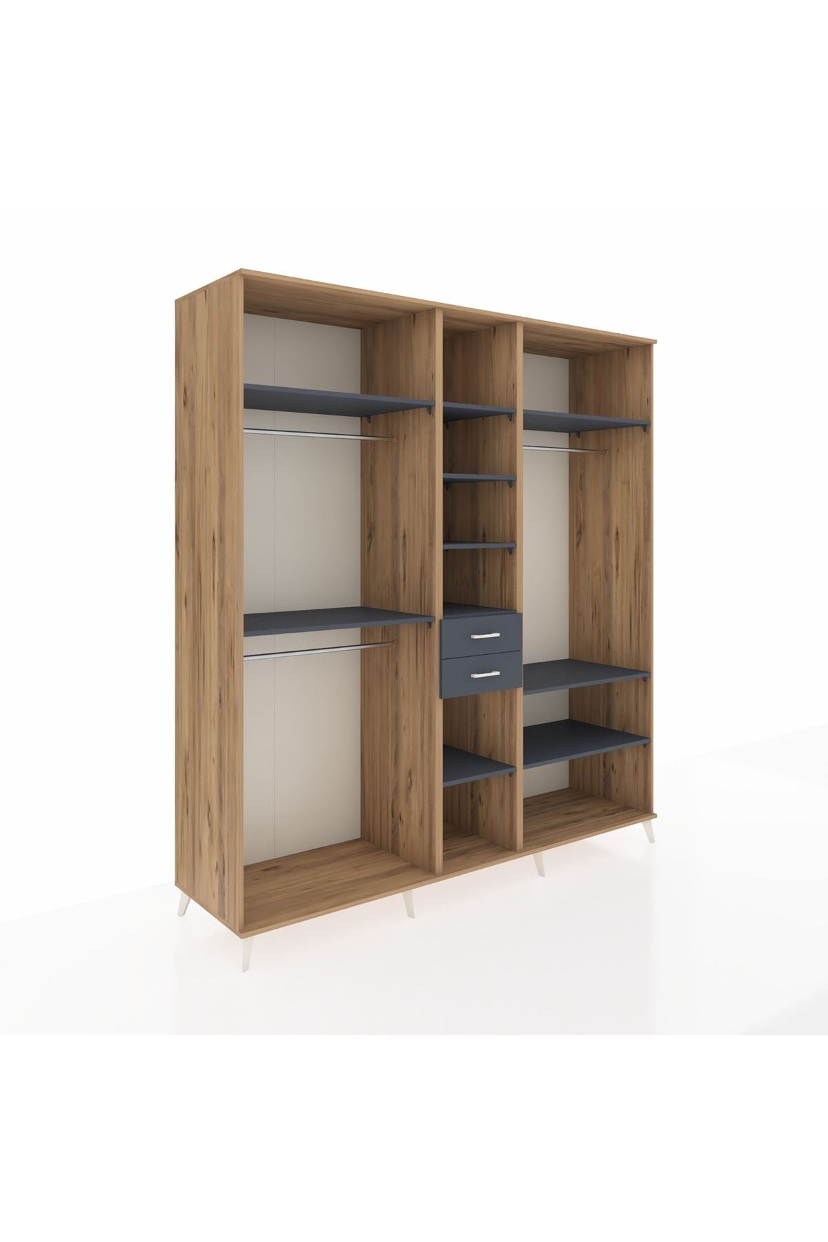 Kronos Dolap 10 Raflı 2 Çekmeceli 3 Askılı 220x59x243 Çam-Antrasit/Antrasit
