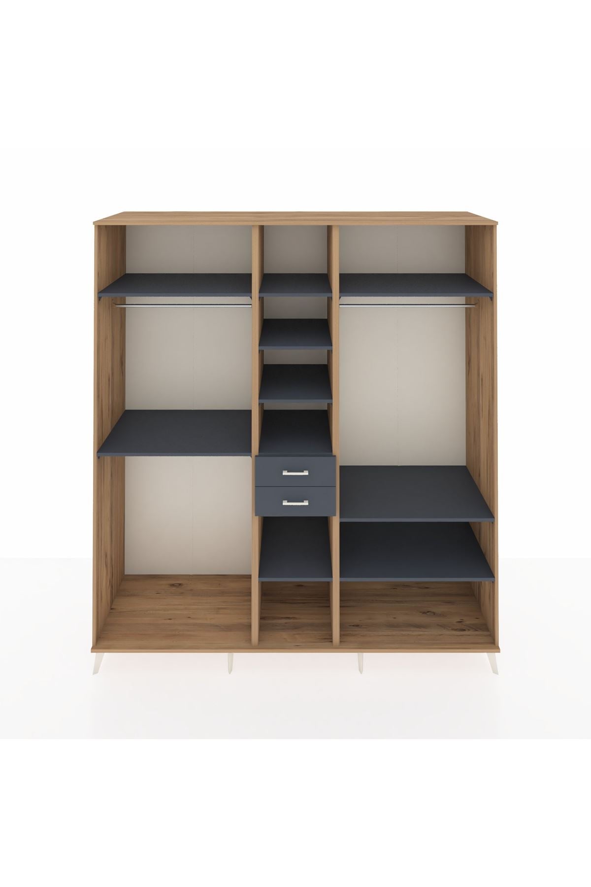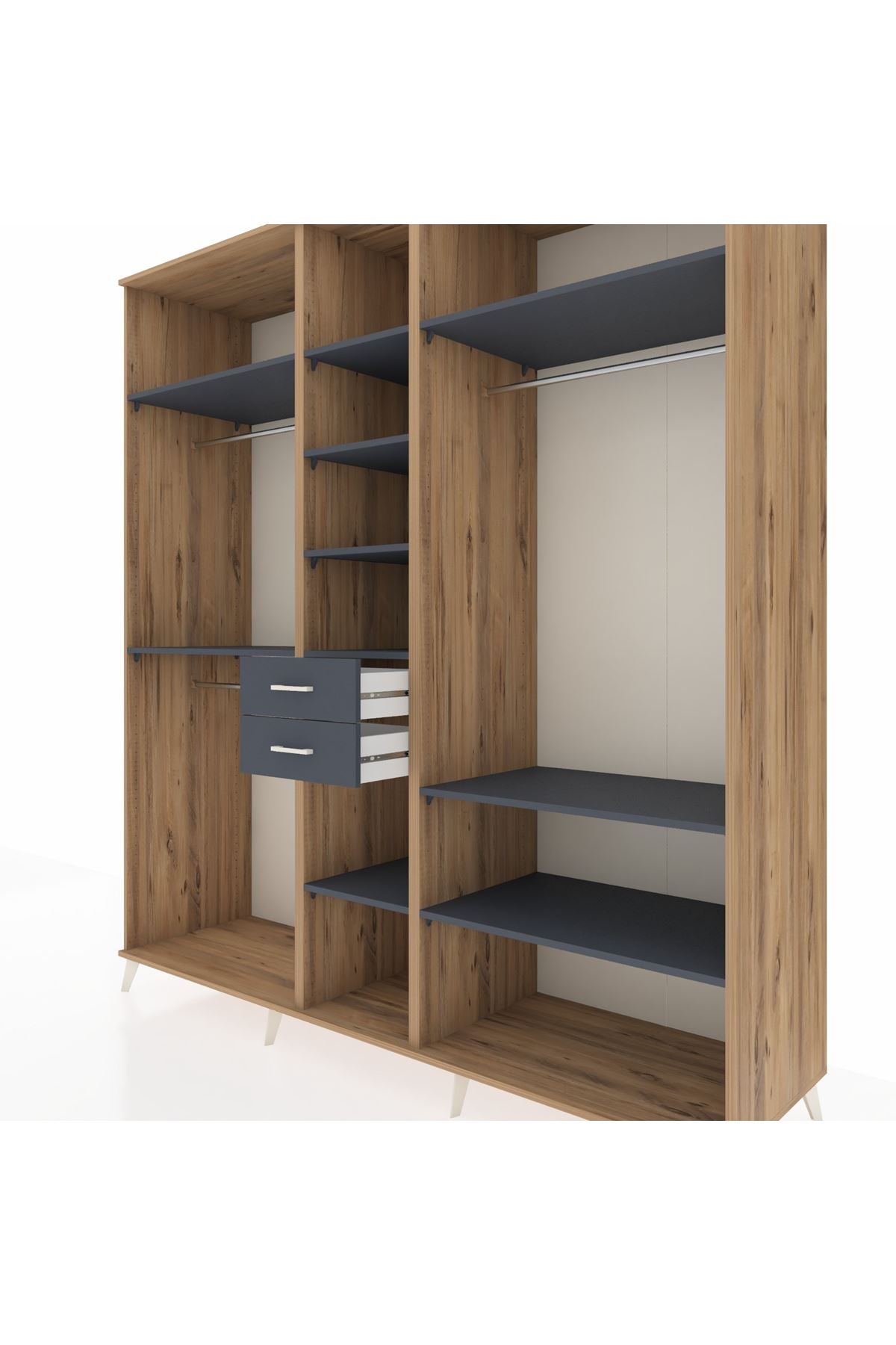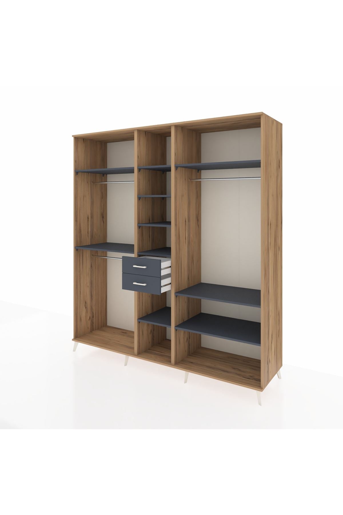 Kronos Dolap 10 Raflı 2 Çekmeceli 3 Askılı 220x59x243 Çam-Antrasit/Antrasit