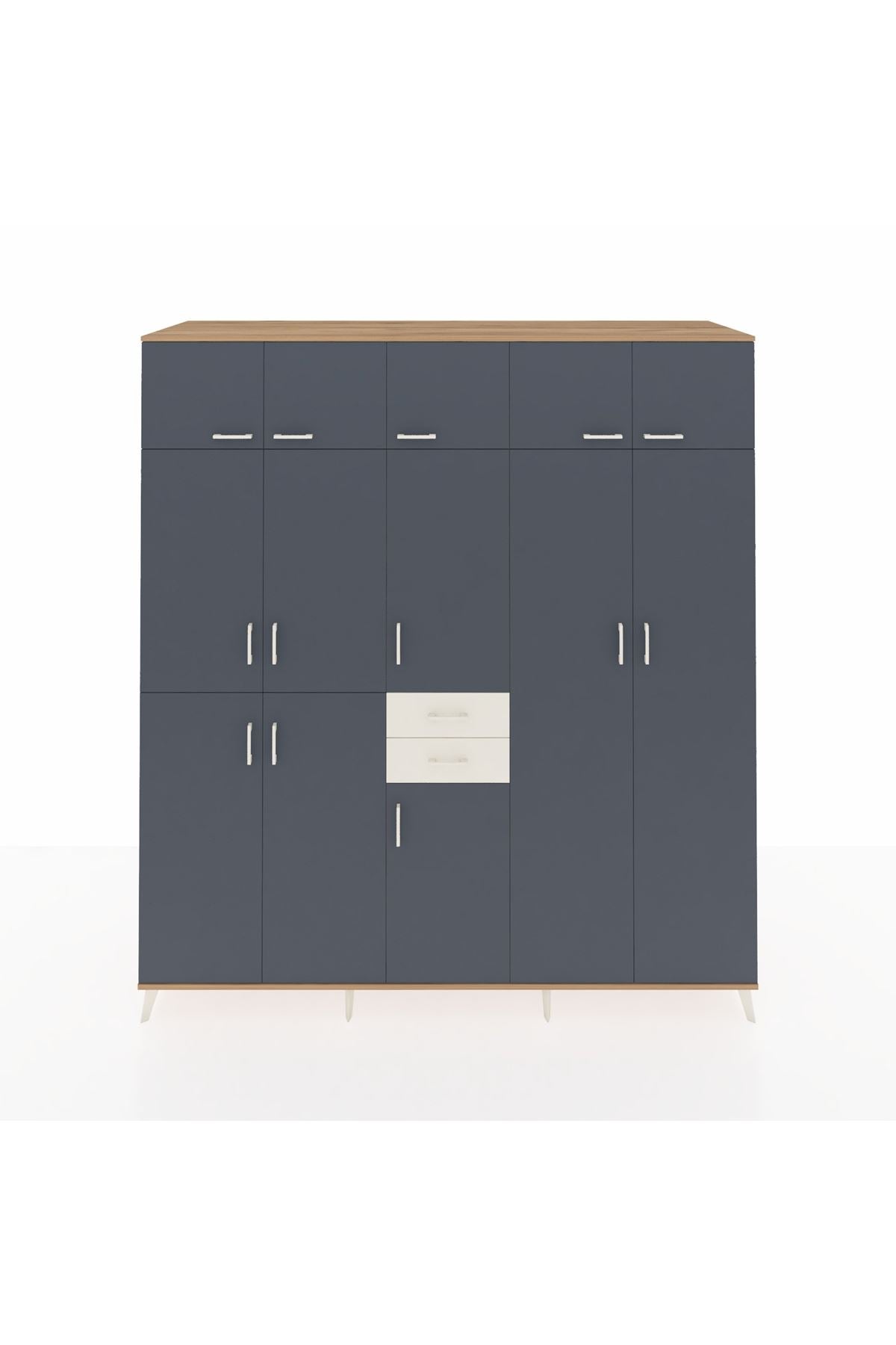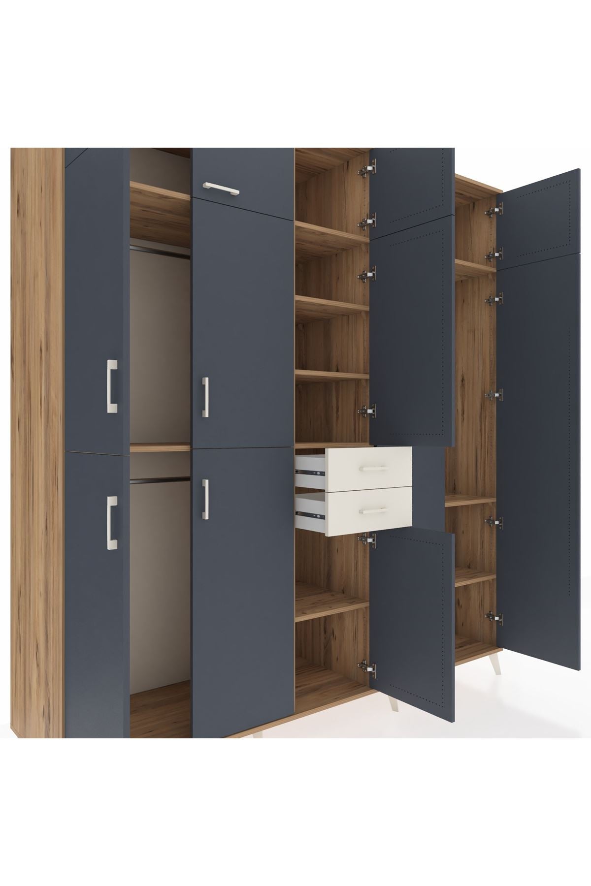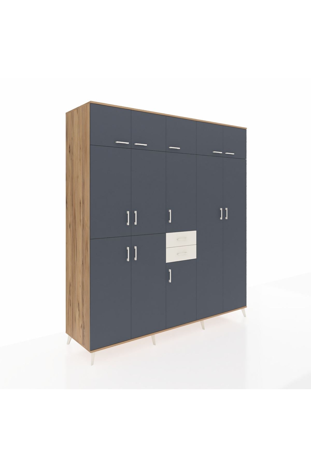 Kronos Dolap 10 Raflı 2 Çekmeceli 3 Askılı 220x59x243 Çam-Antrasit/Aytaşı