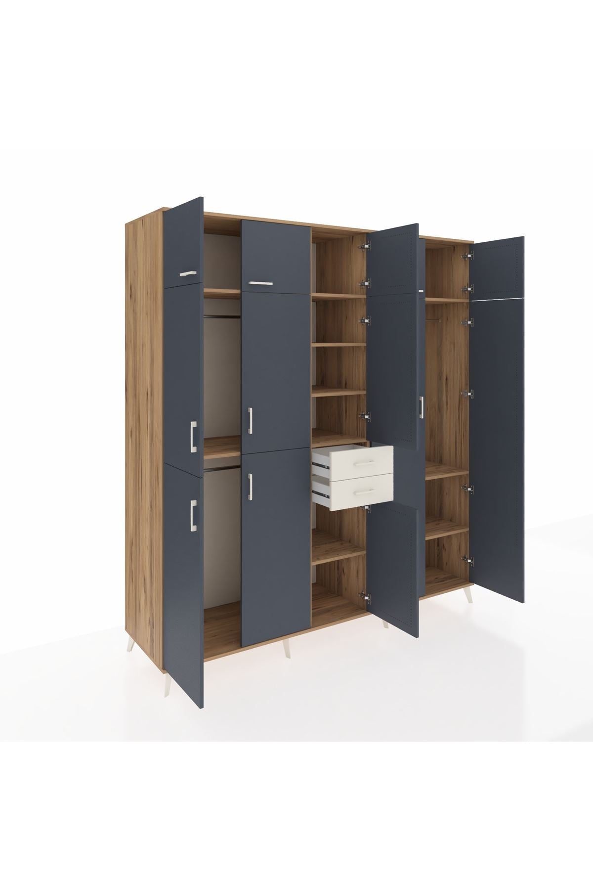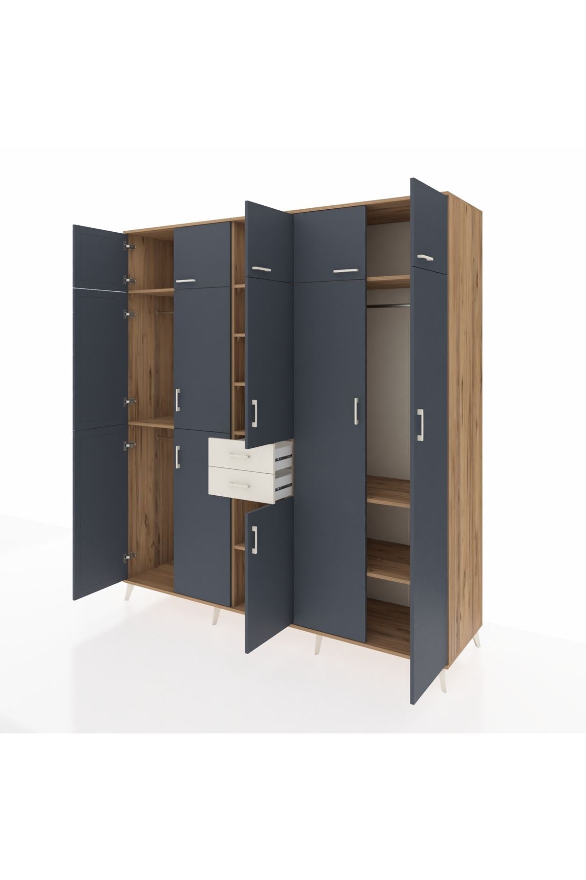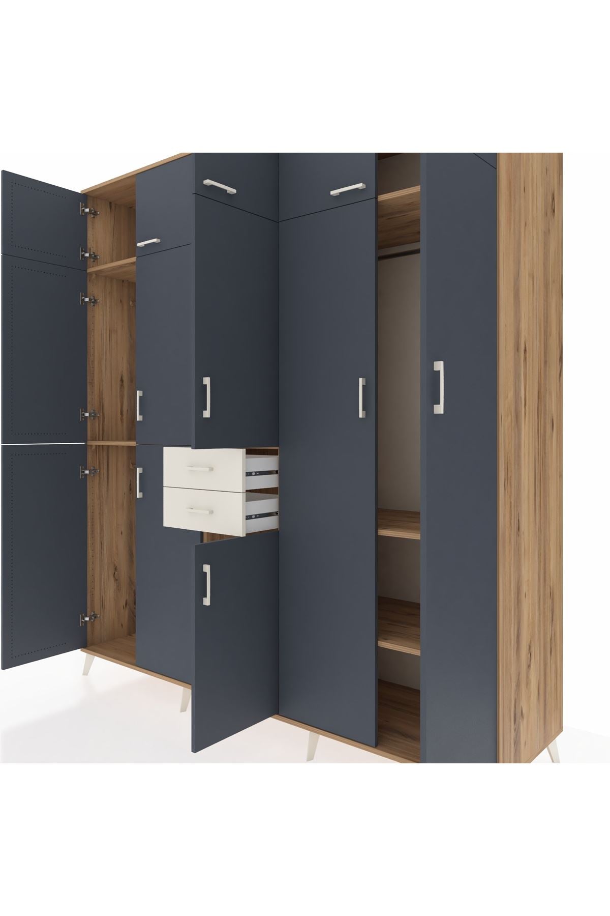 Kronos Dolap 10 Raflı 2 Çekmeceli 3 Askılı 220x59x243 Çam-Antrasit/Aytaşı
