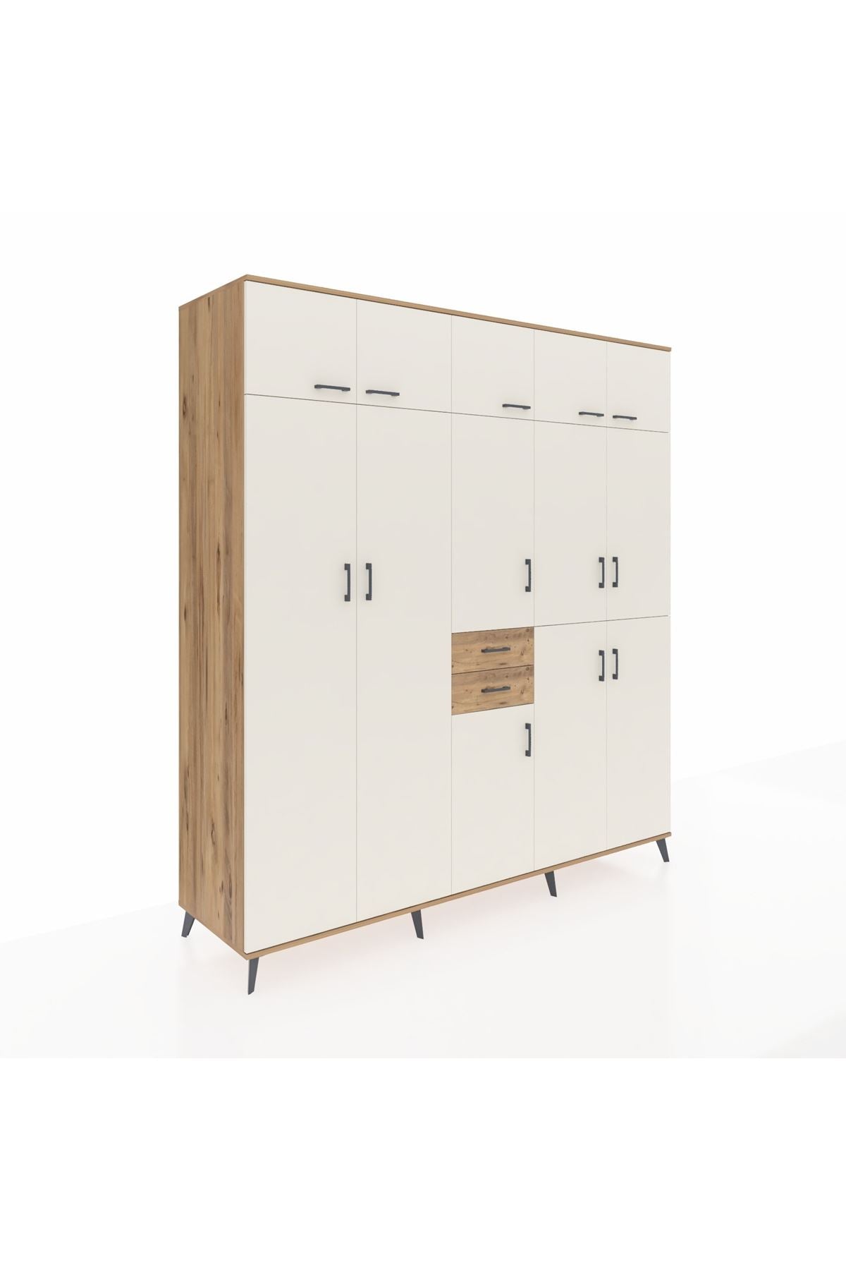 Kronos Dolap 10 Raflı 2 Çekmeceli 3 Askılı 220x59x243 Çam-Aytaşı/Çam