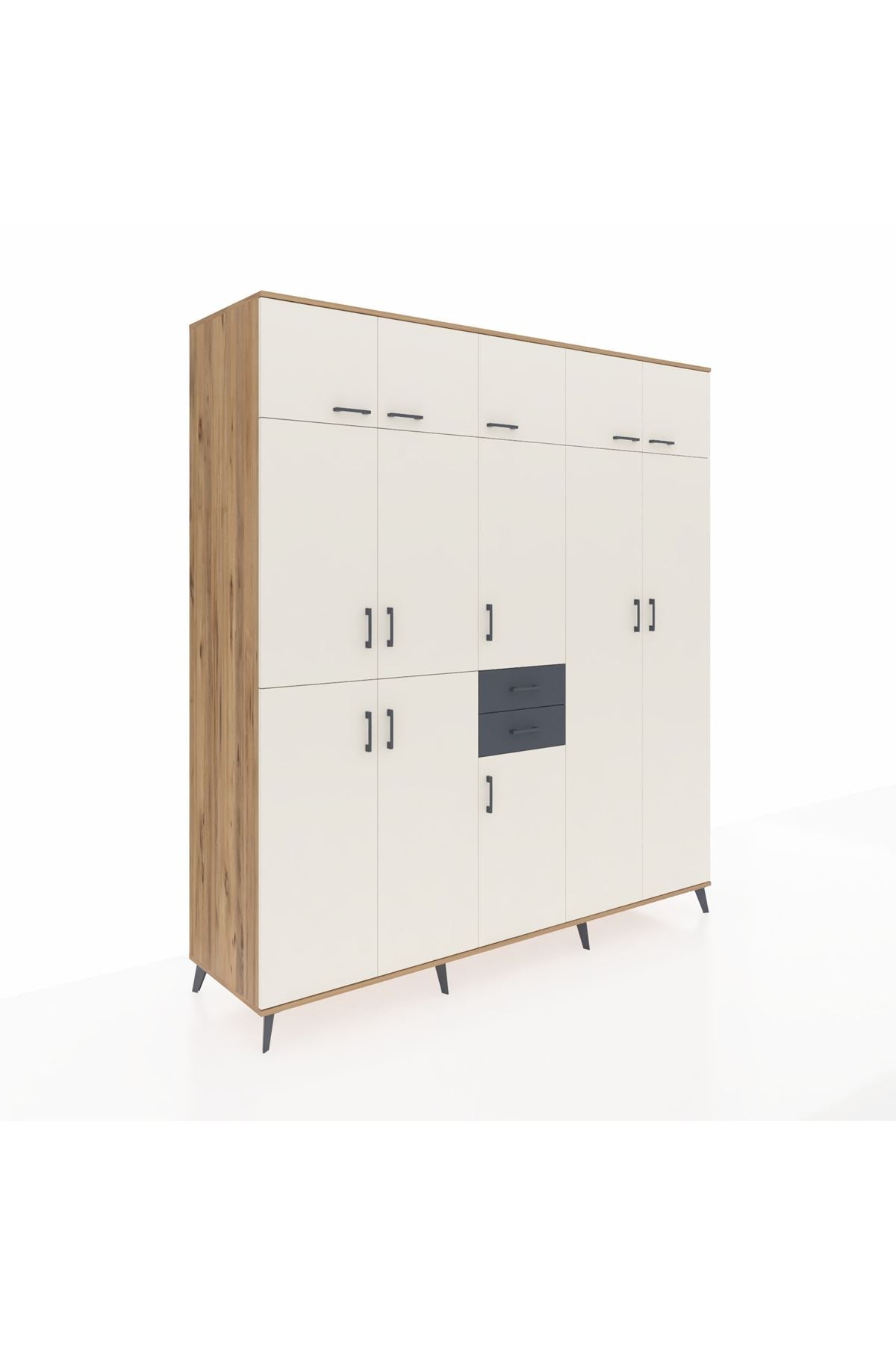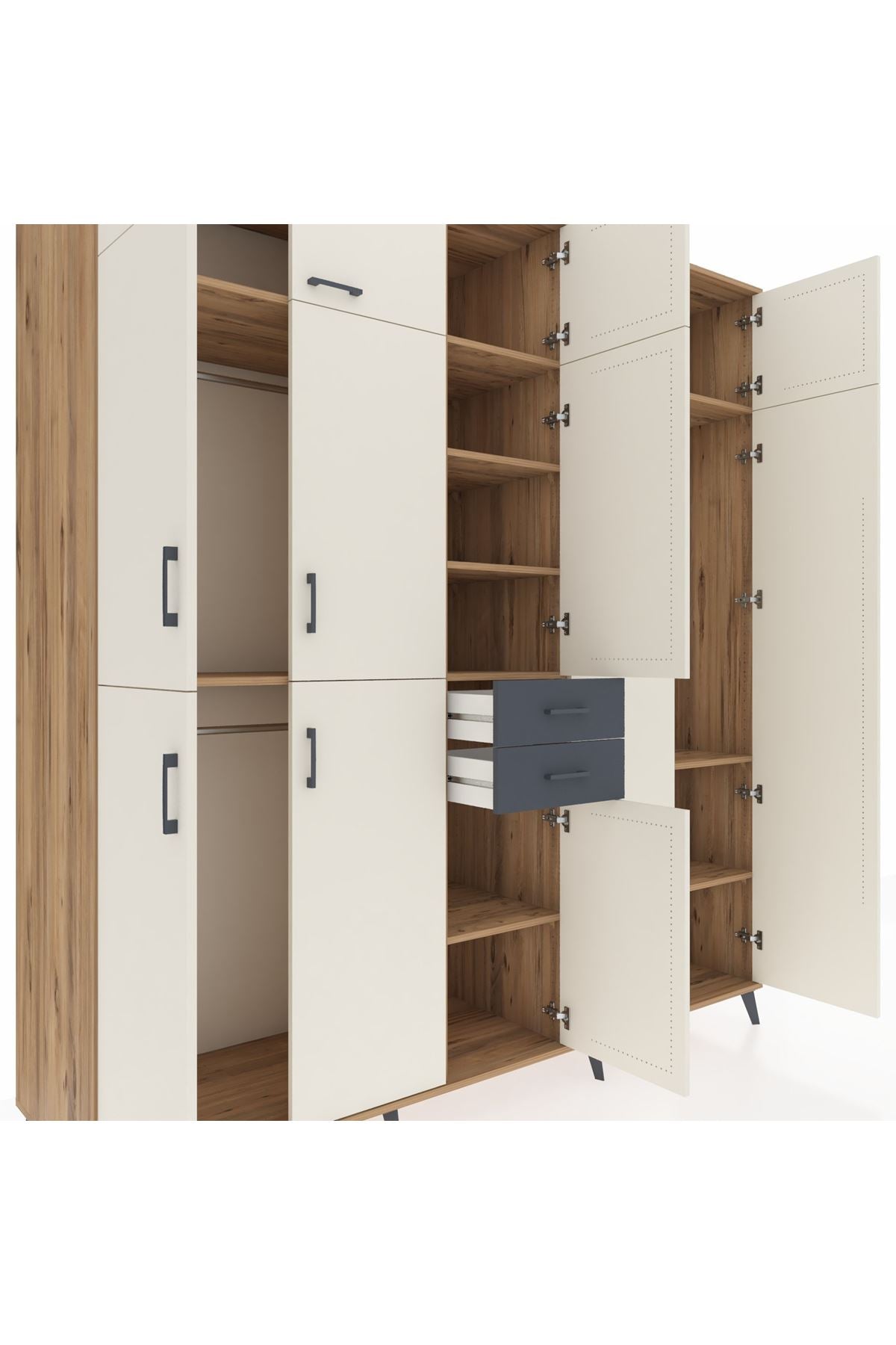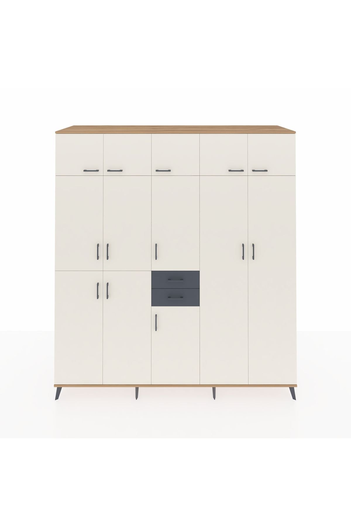 Kronos Dolap 10 Raflı 2 Çekmeceli 3 Askılı 220x59x243 Çam-Aytaşı/Antrasit