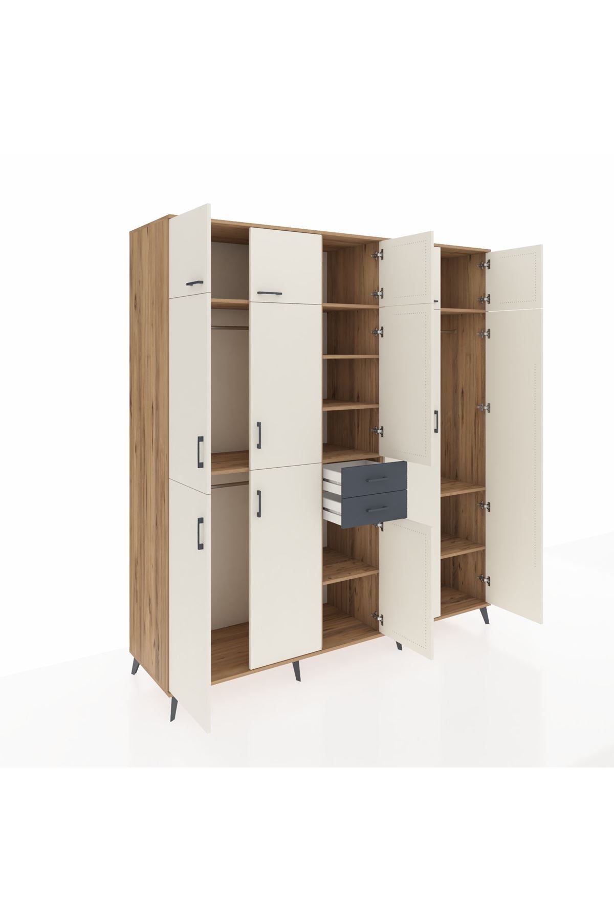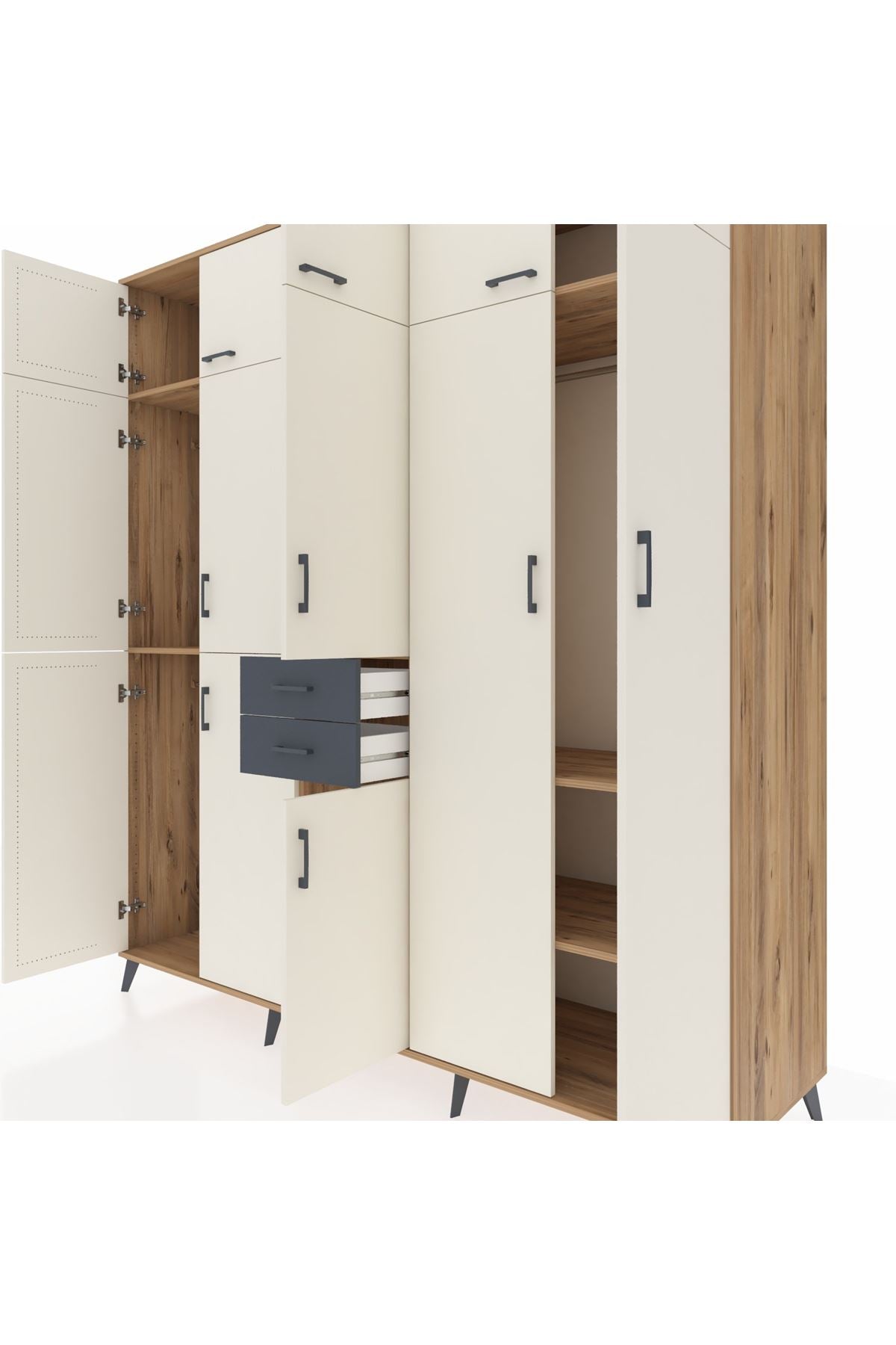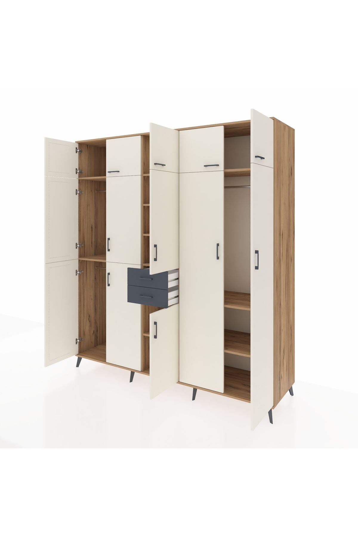 Kronos Dolap 10 Raflı 2 Çekmeceli 3 Askılı 220x59x243 Çam-Aytaşı/Antrasit