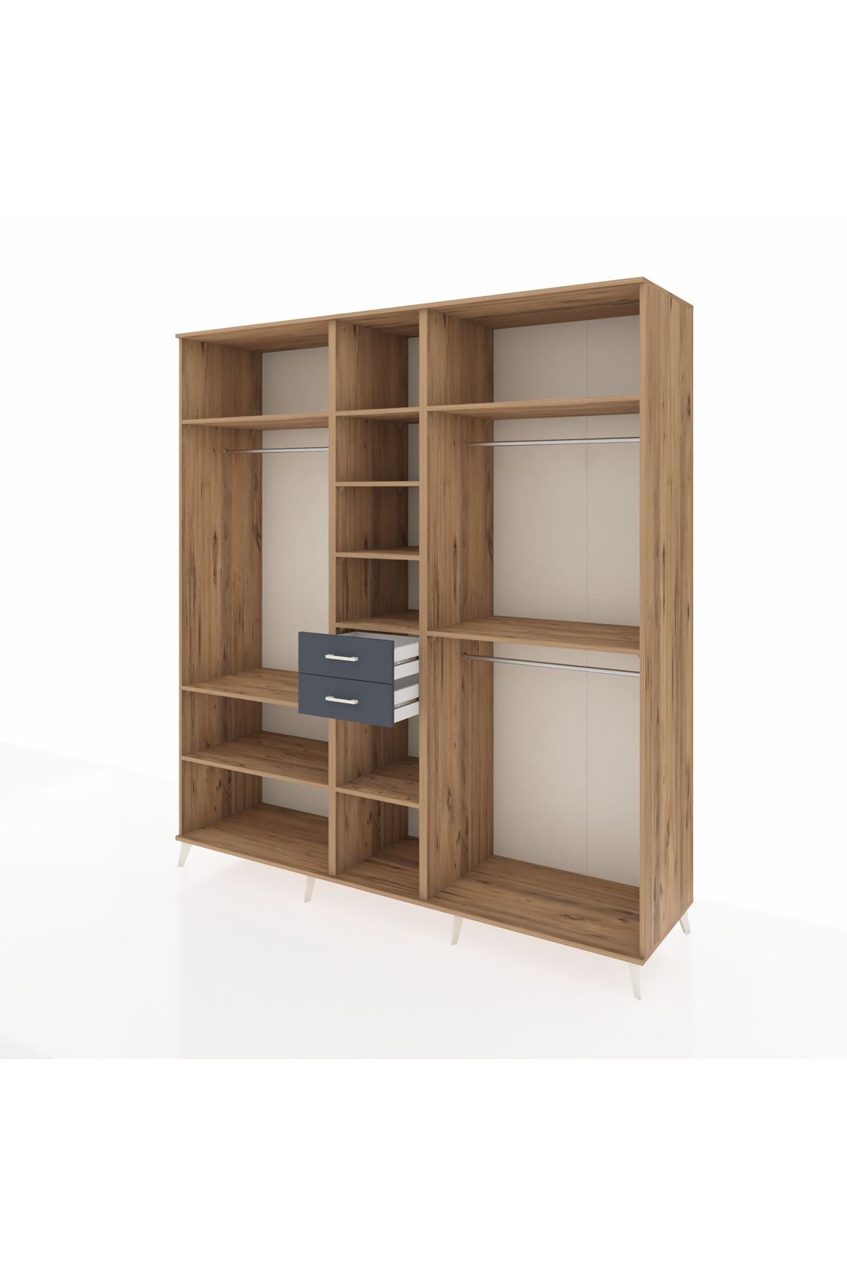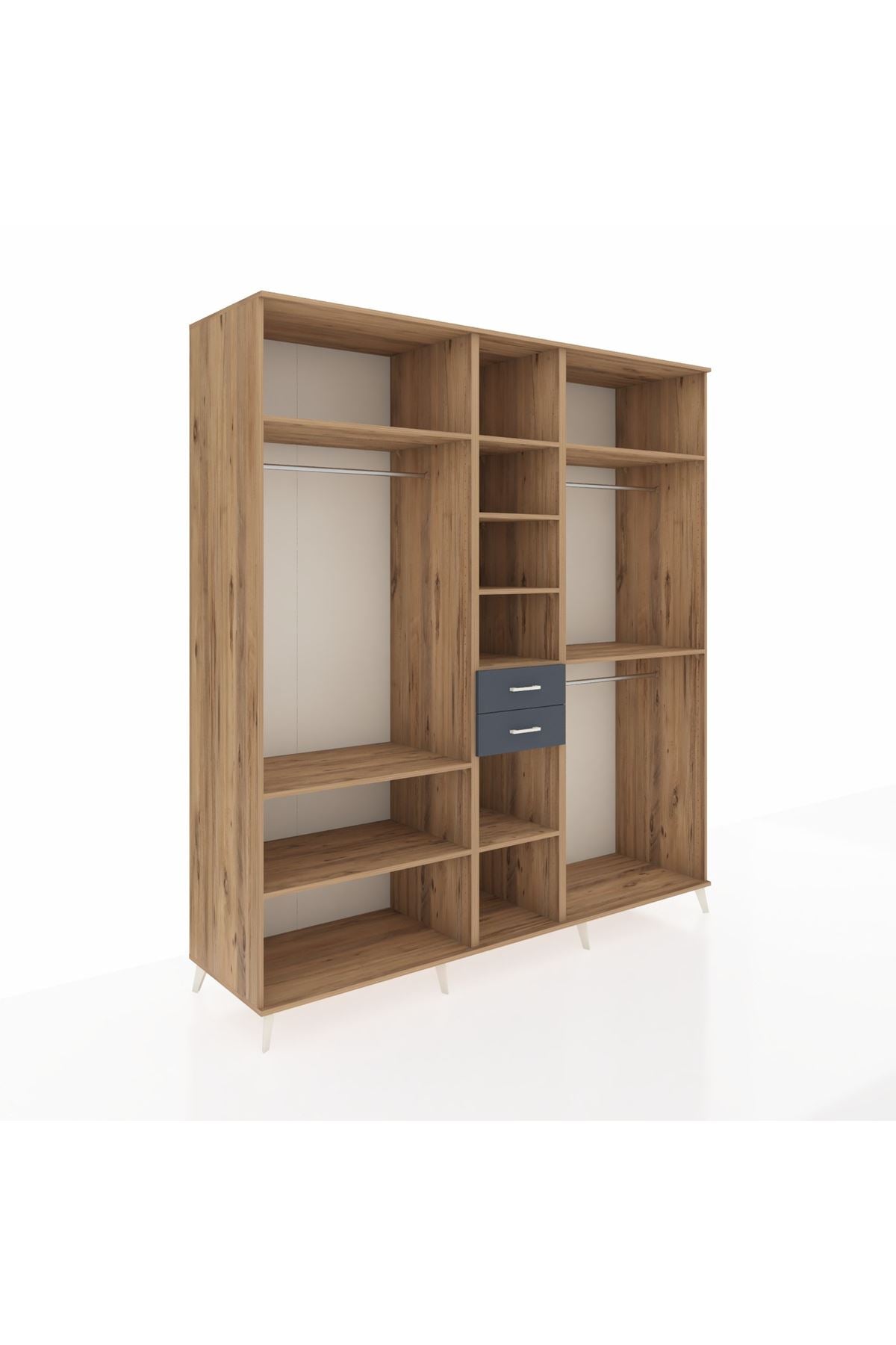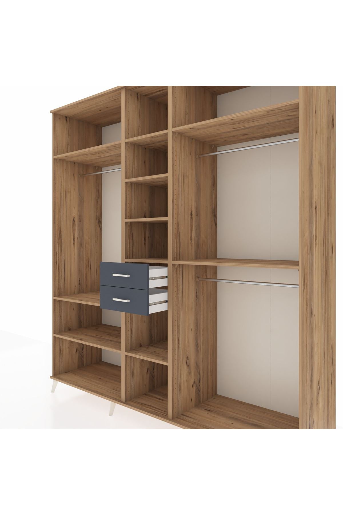 Kronos Dolap 10 Raflı 2 Çekmeceli 3 Askılı 220x59x243 Çam-Çam/Antrasit