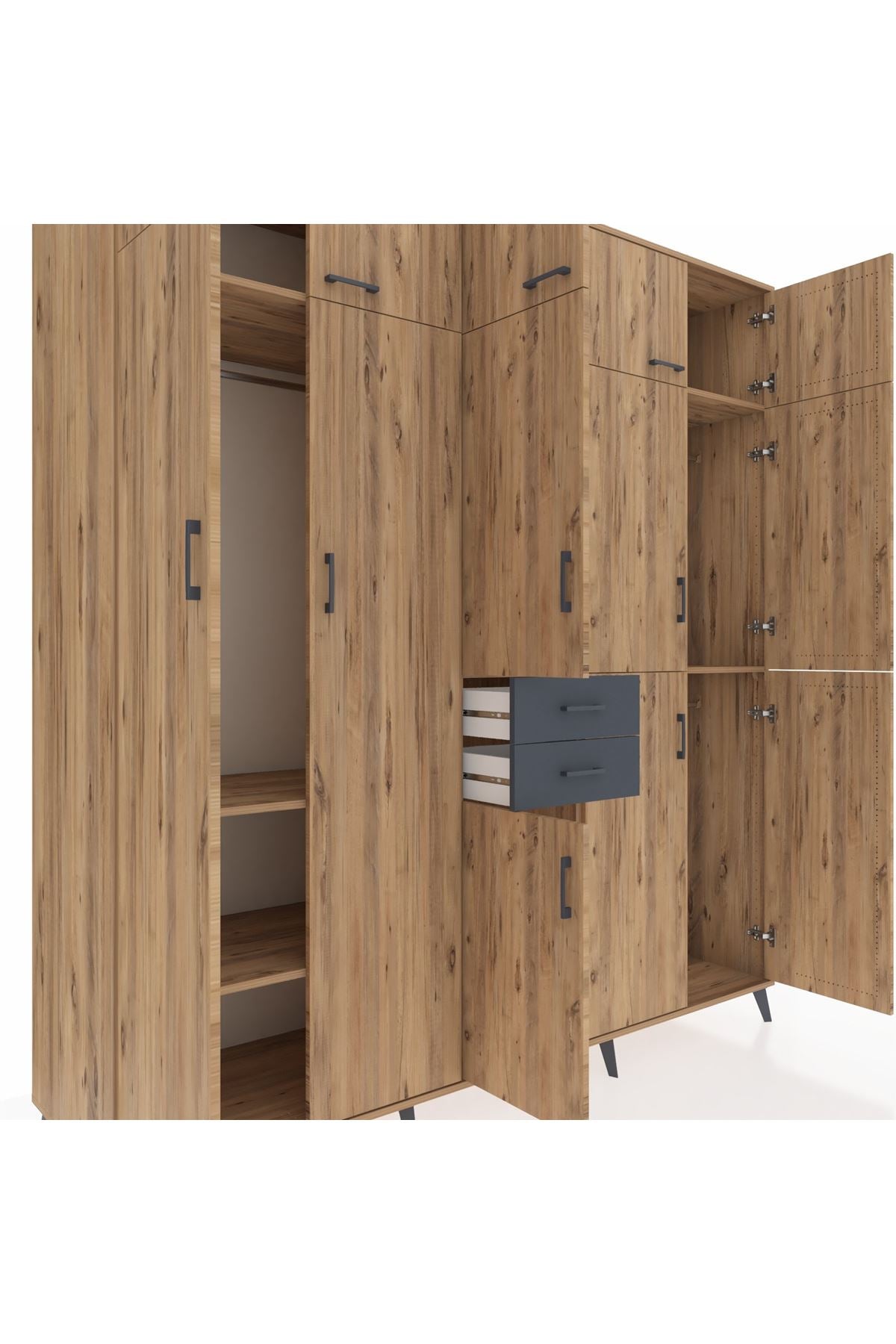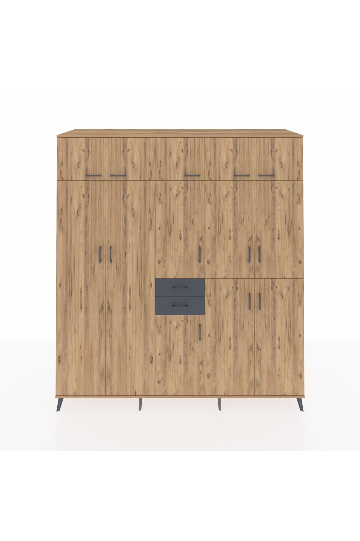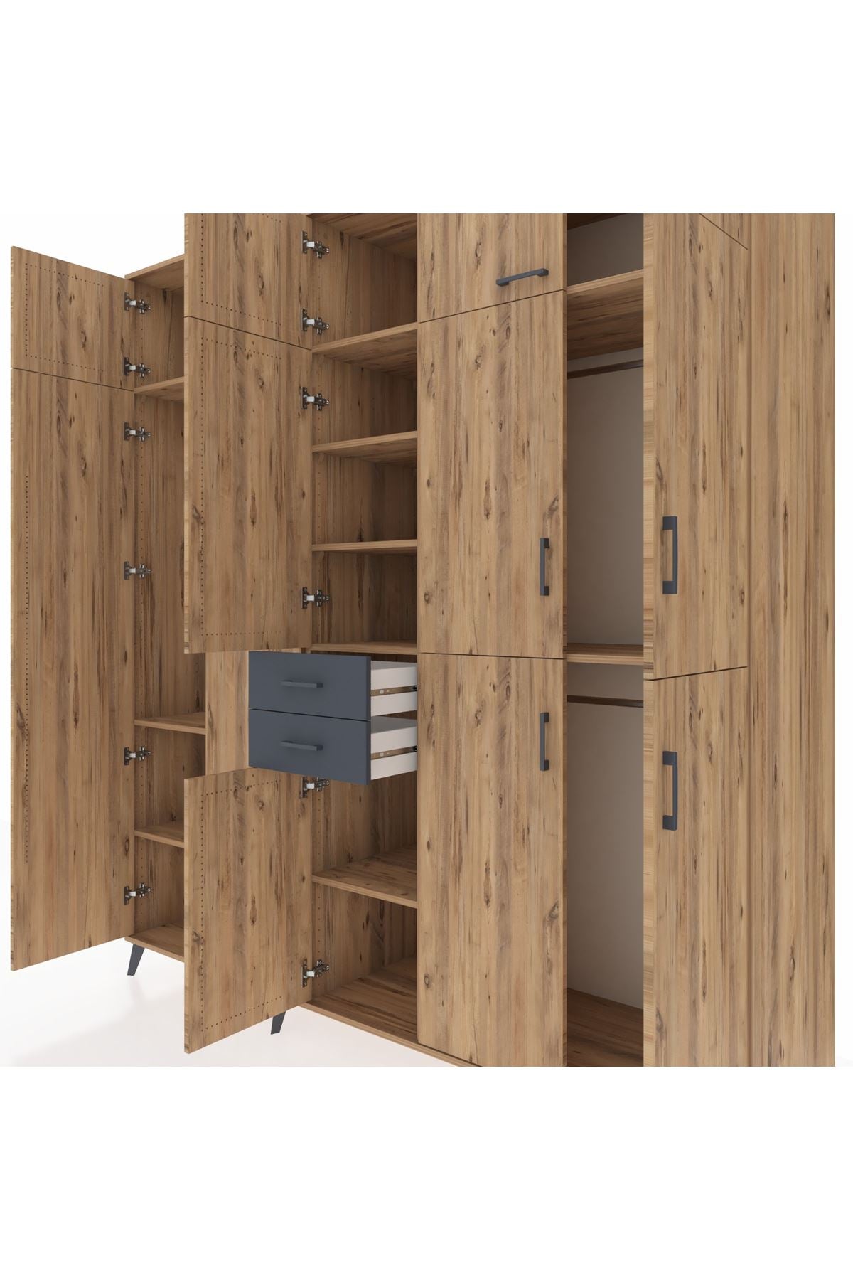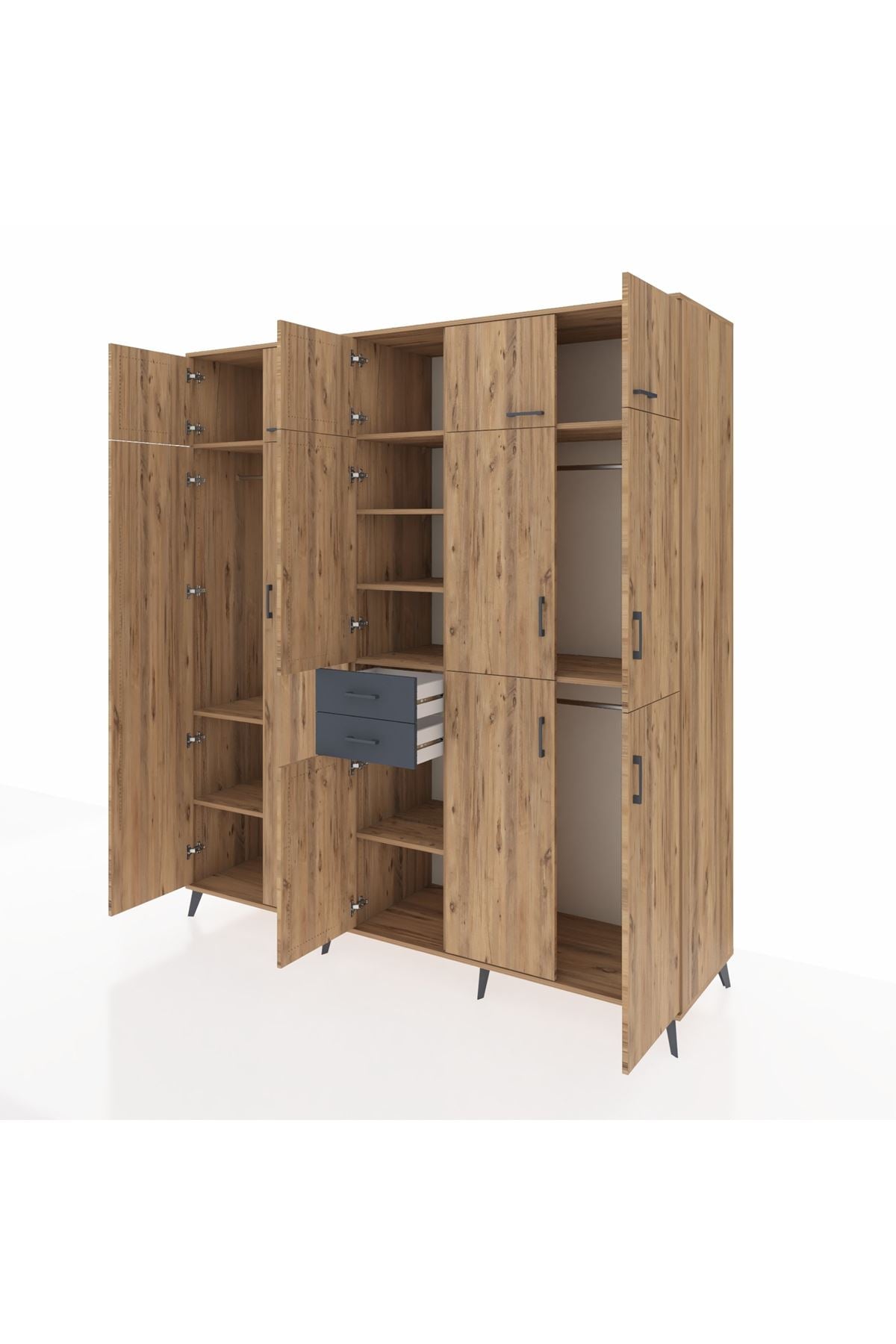 Kronos Dolap 10 Raflı 2 Çekmeceli 3 Askılı 220x59x243 Çam-Çam/Antrasit