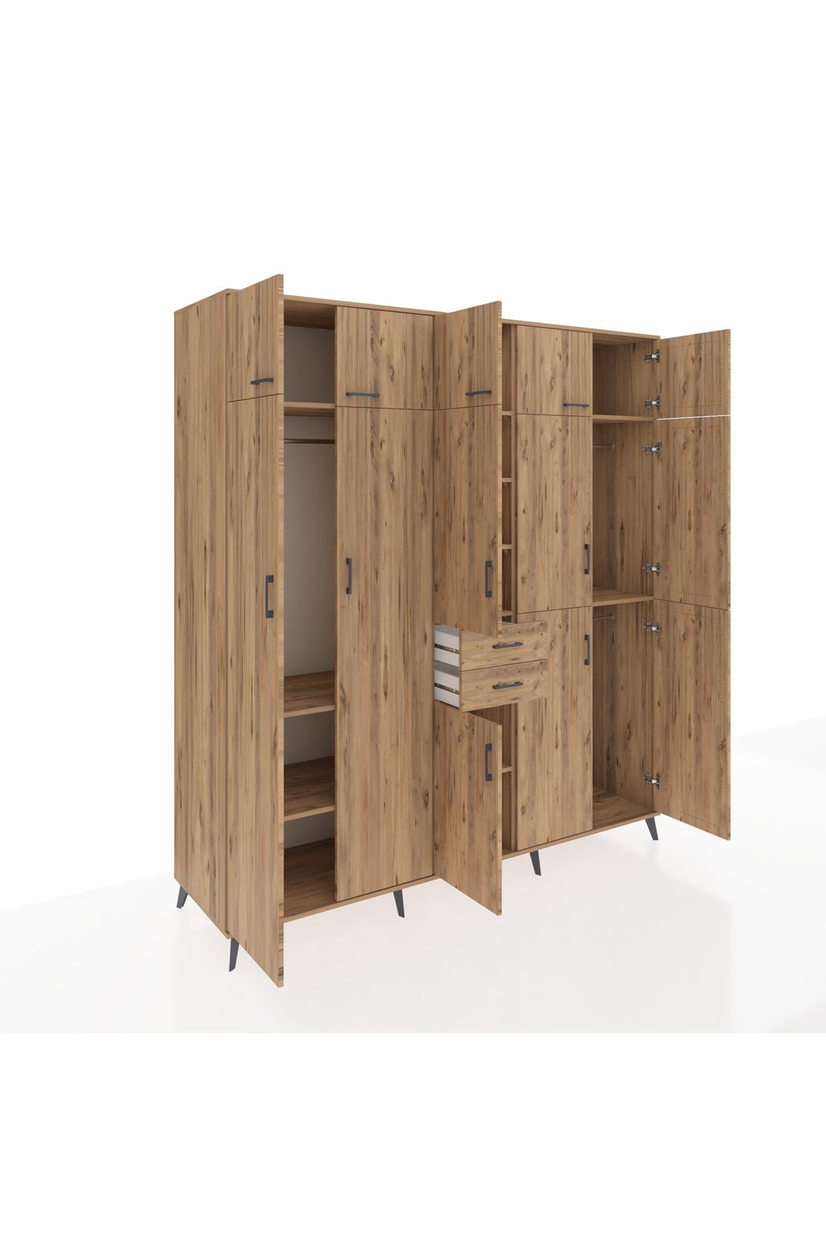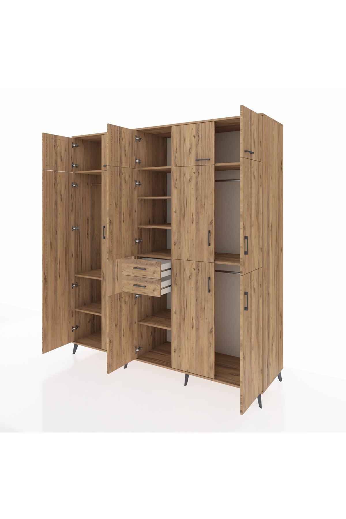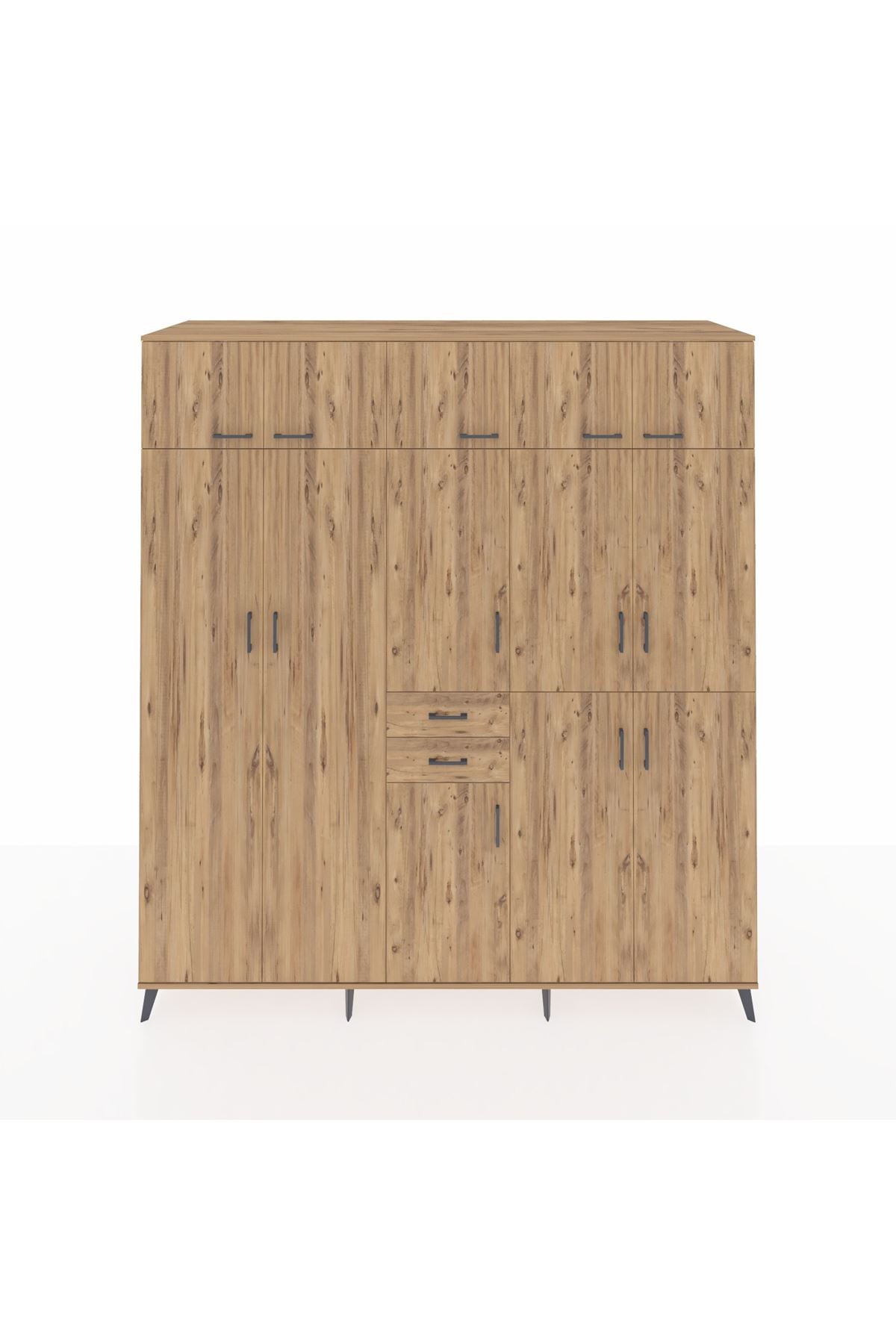 Kronos Dolap 10 Raflı 2 Çekmeceli 3 Askılı 220x59x243 Çam-Çam/Çam