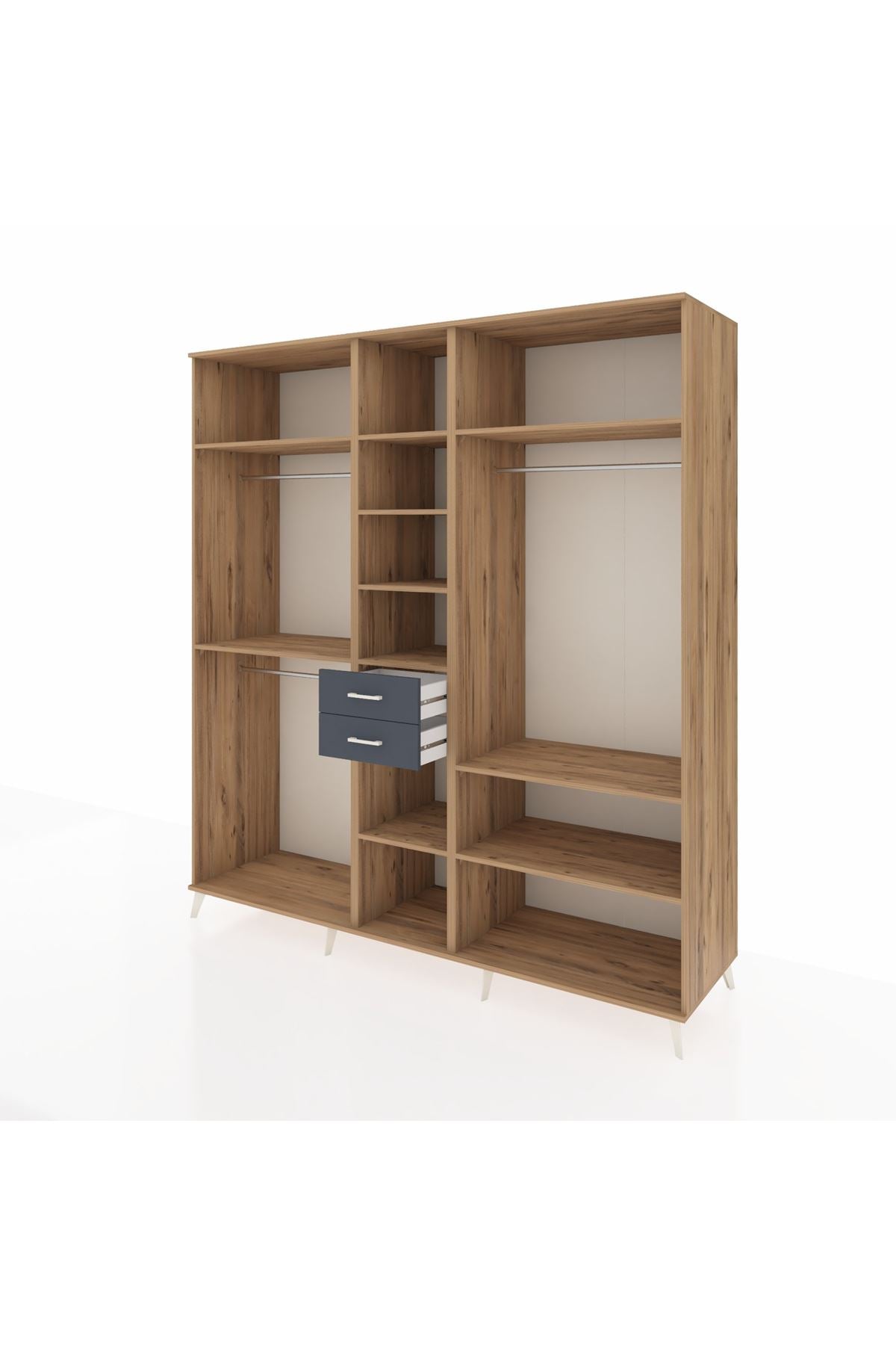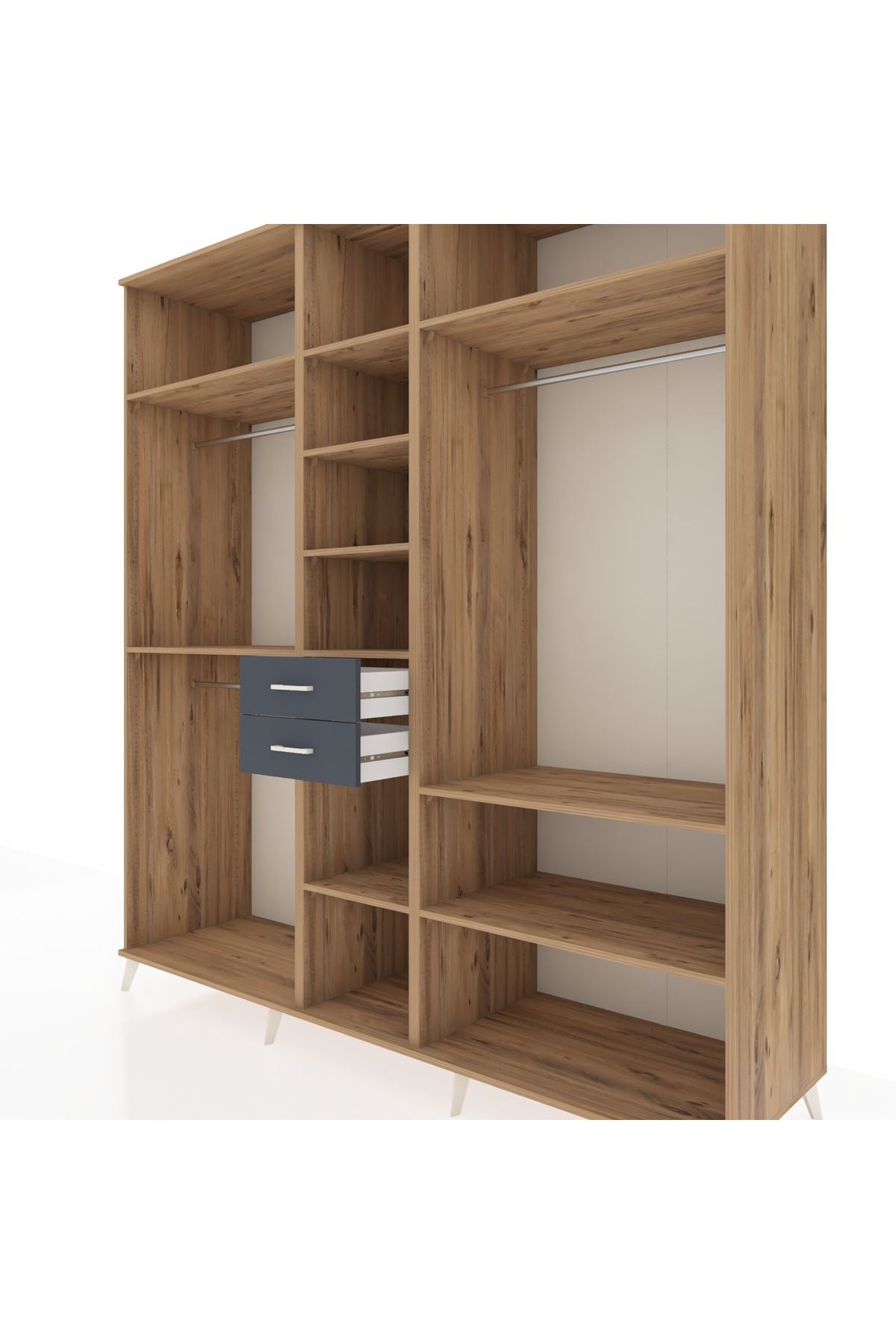 Kronos Dolap 10 Raflı 2 Çekmeceli 3 Askılı 220x59x243 Çam-Çam/Antrasit