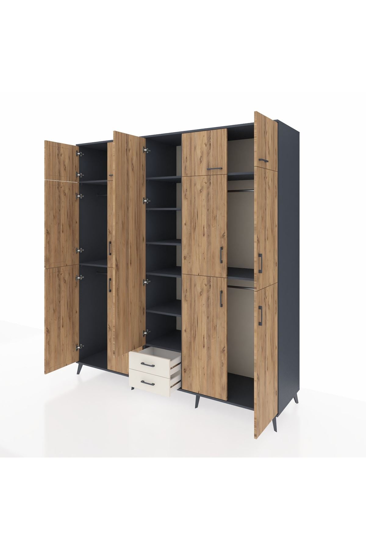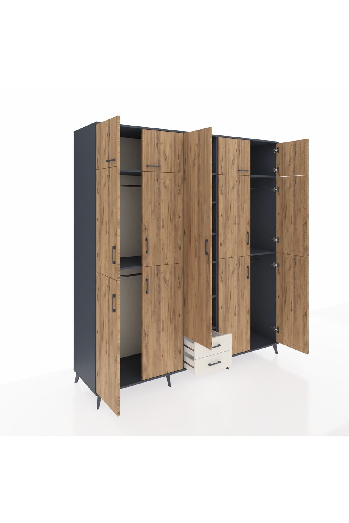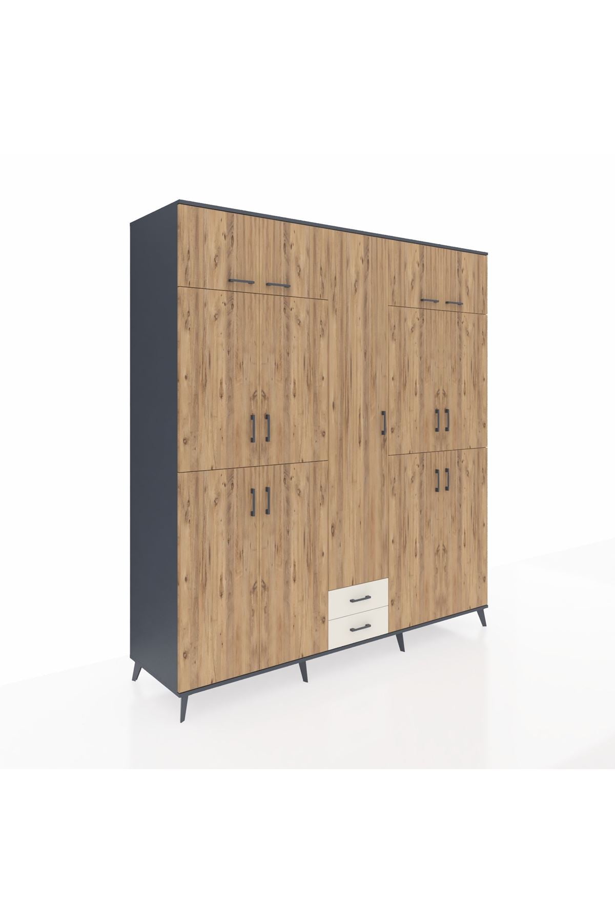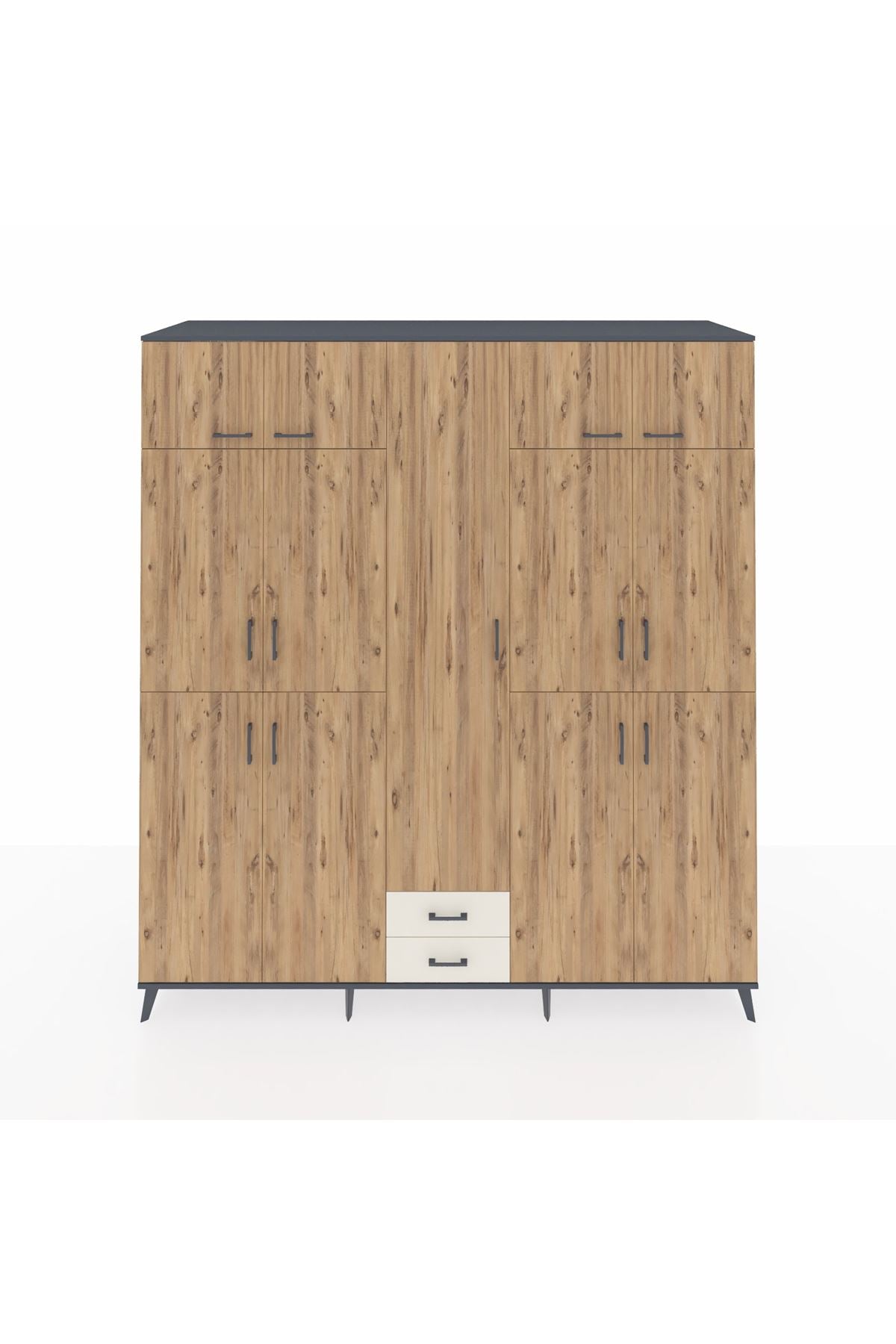 Kronos Dolap 10 Raflı 2 Çekmeceli 4 Askılı 220x59x243 Antrasit-Çam/Aytaşı