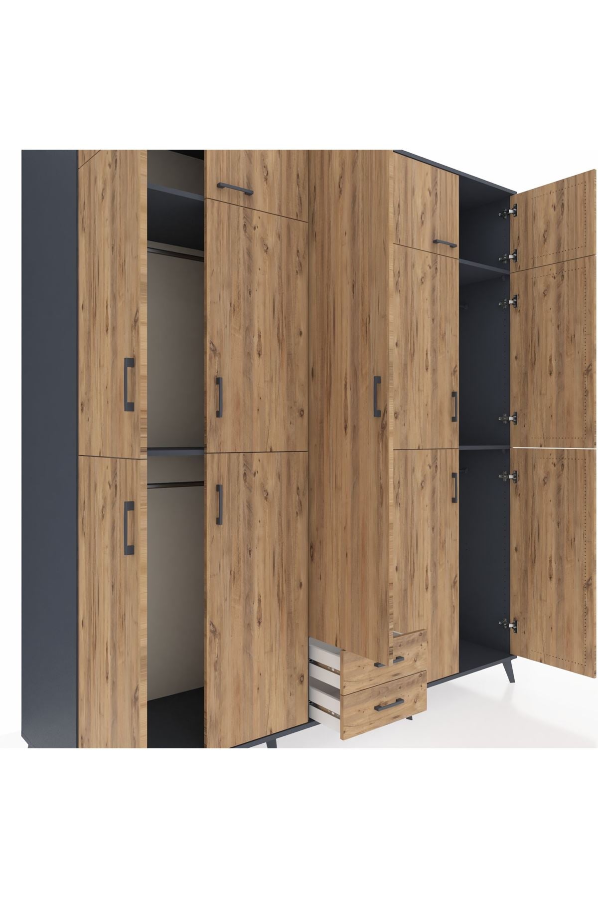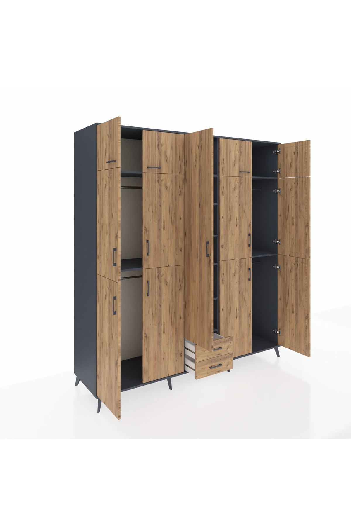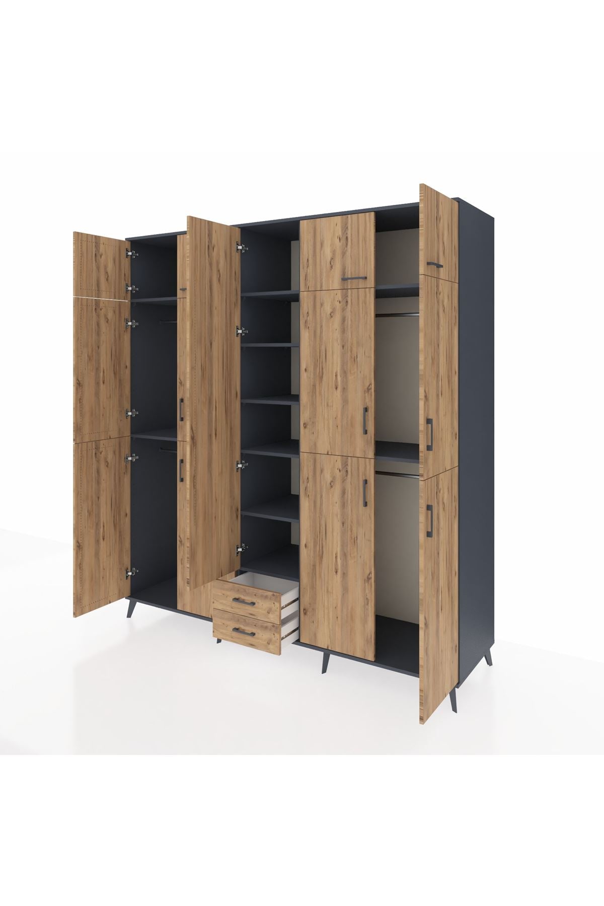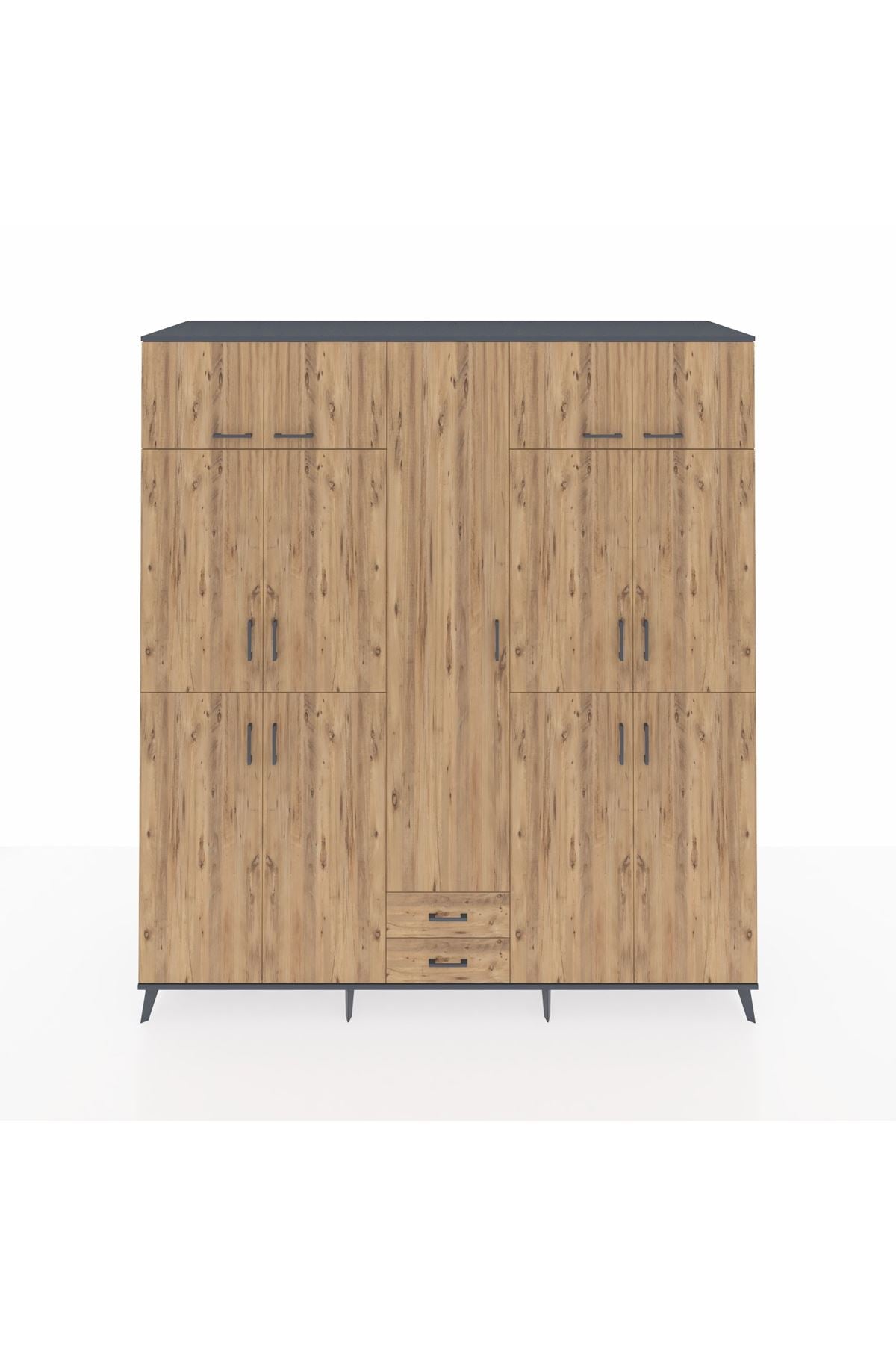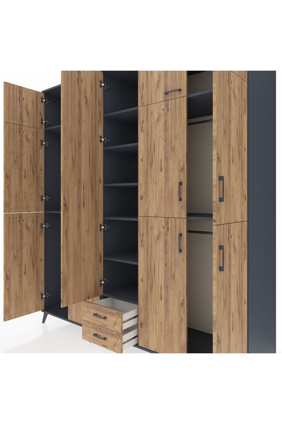 Kronos Dolap 10 Raflı 2 Çekmeceli 4 Askılı 220x59x243 Antrasit-Çam/Çam