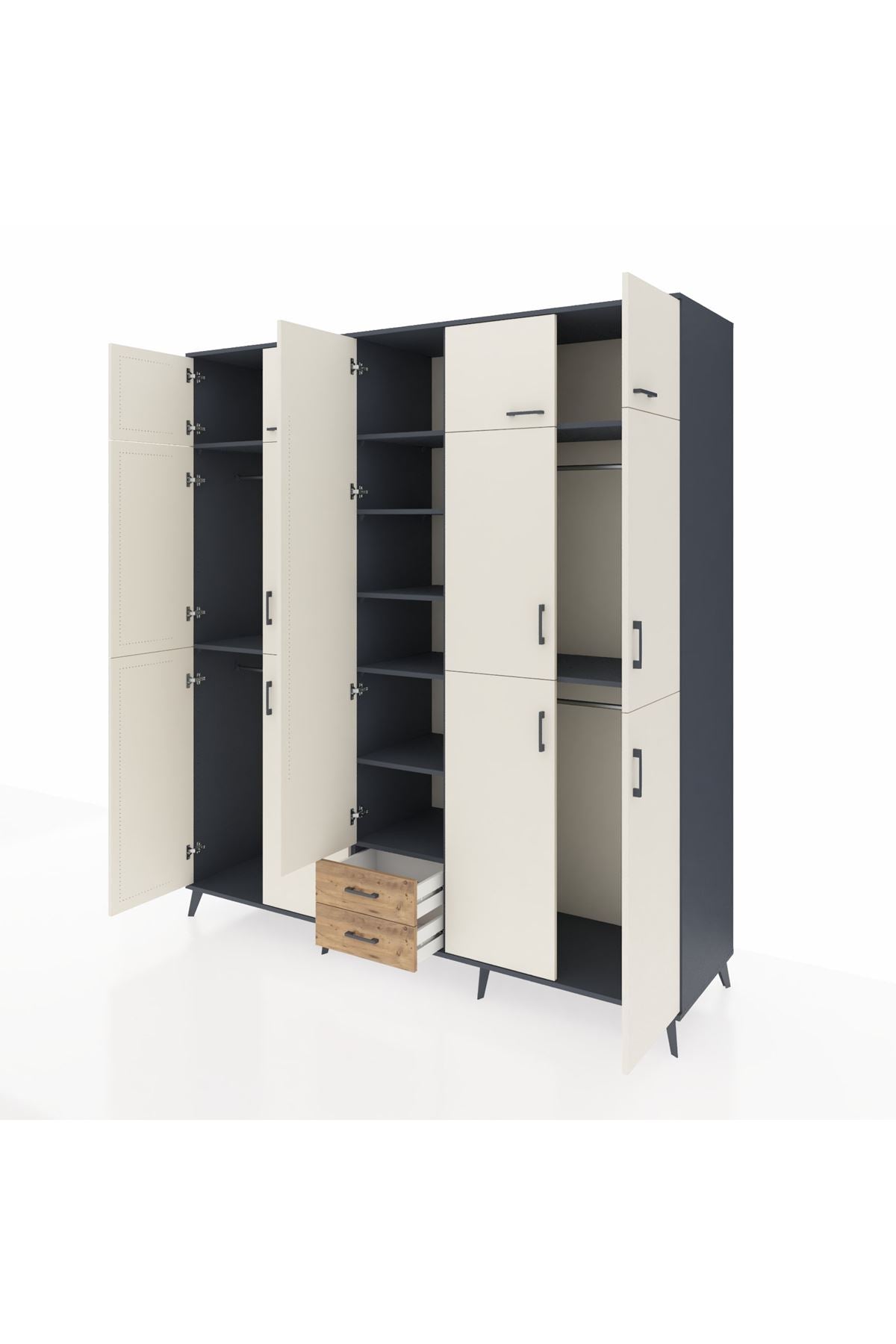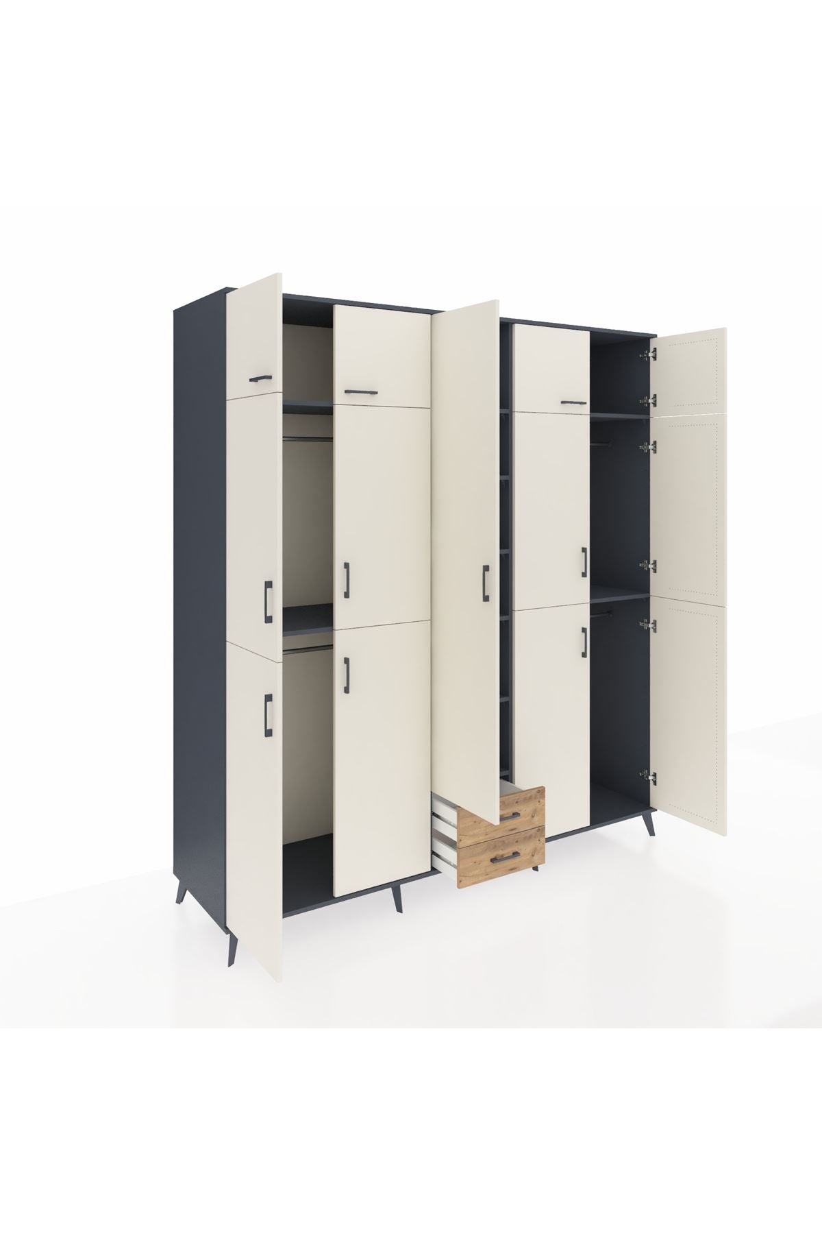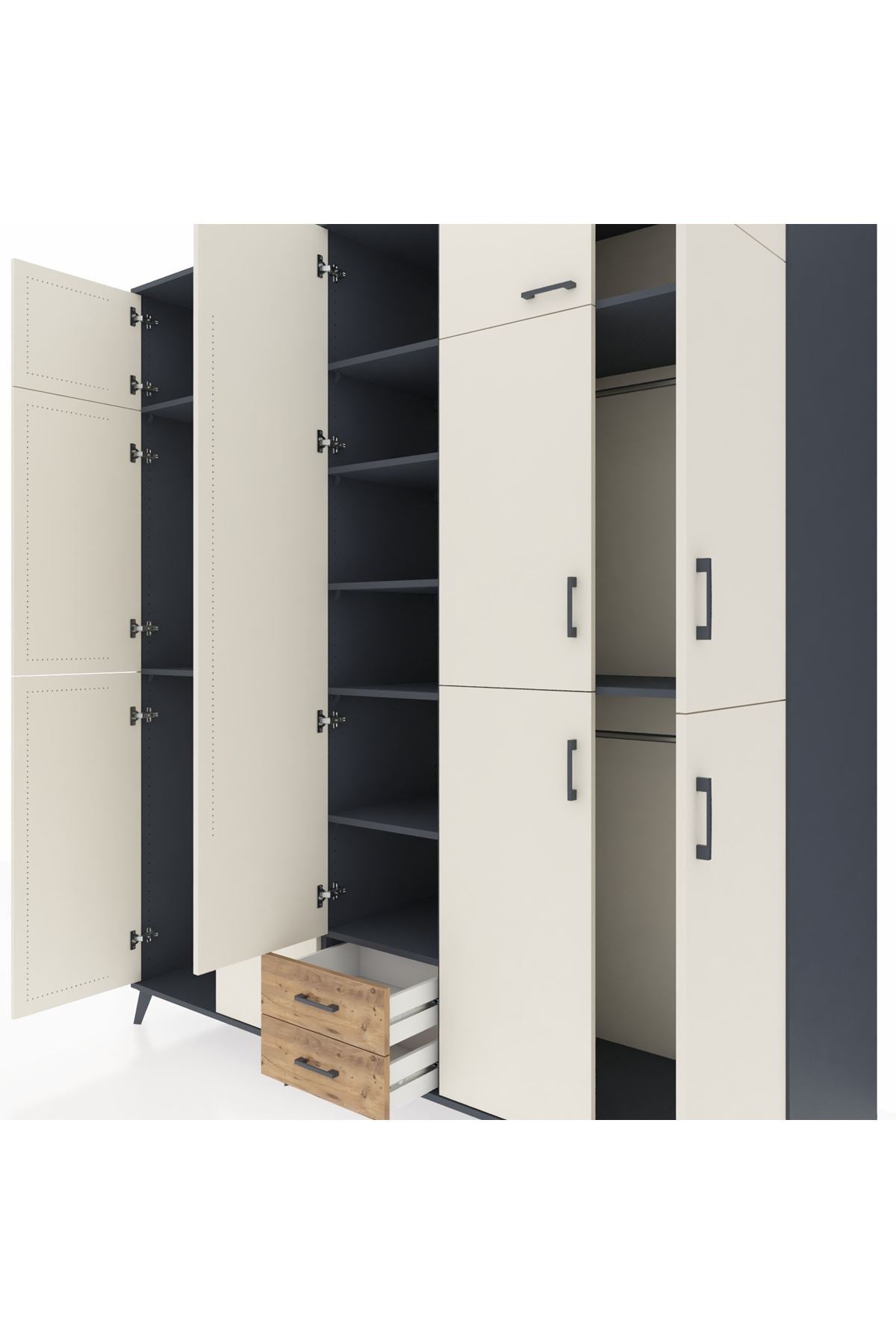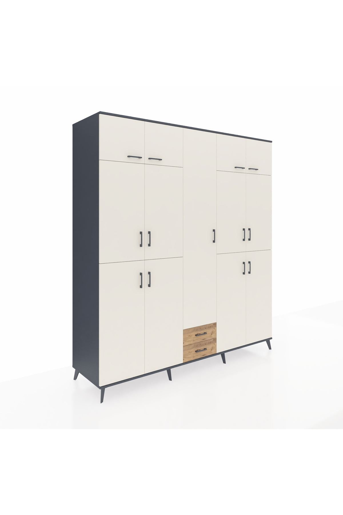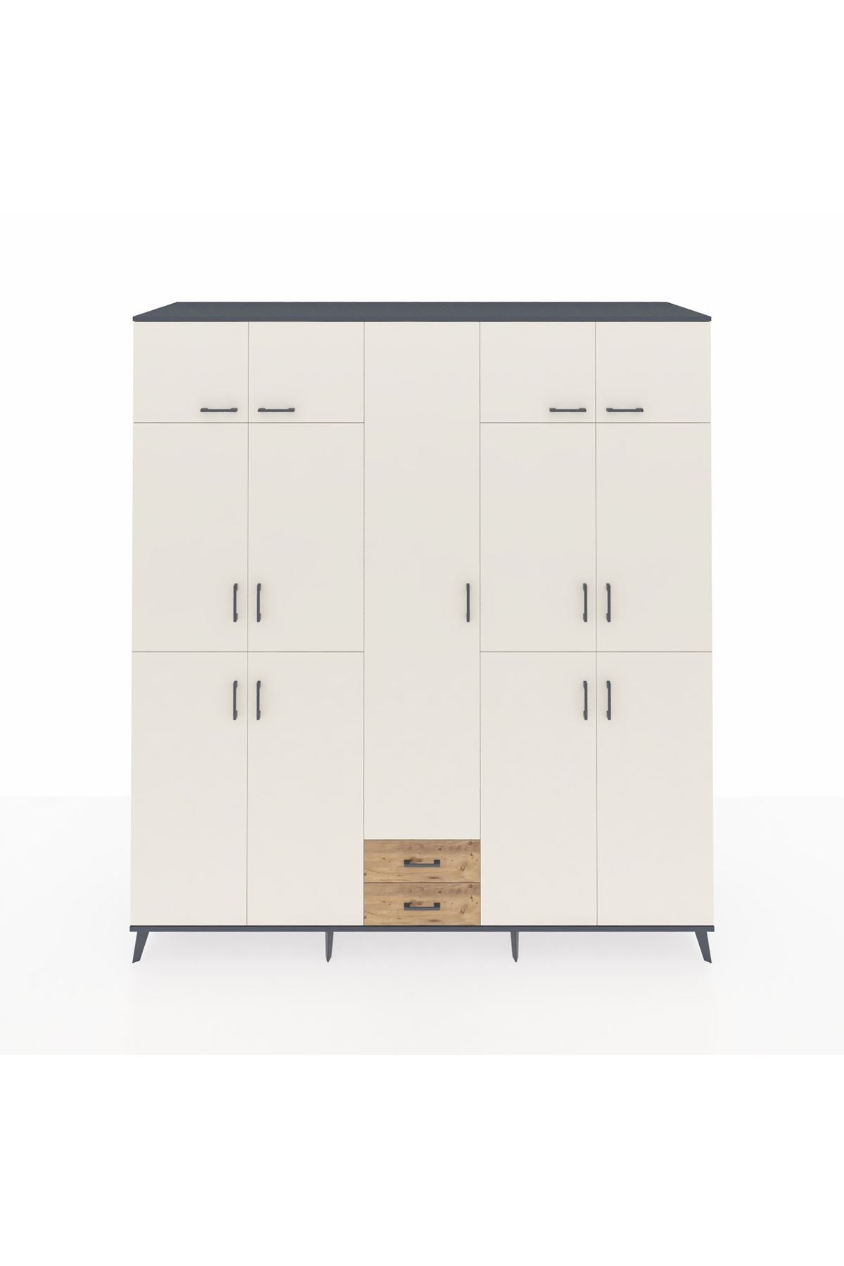 Kronos Dolap 10 Raflı 2 Çekmeceli 4 Askılı 220x59x243 Antrasit-Aytaşı/Çam