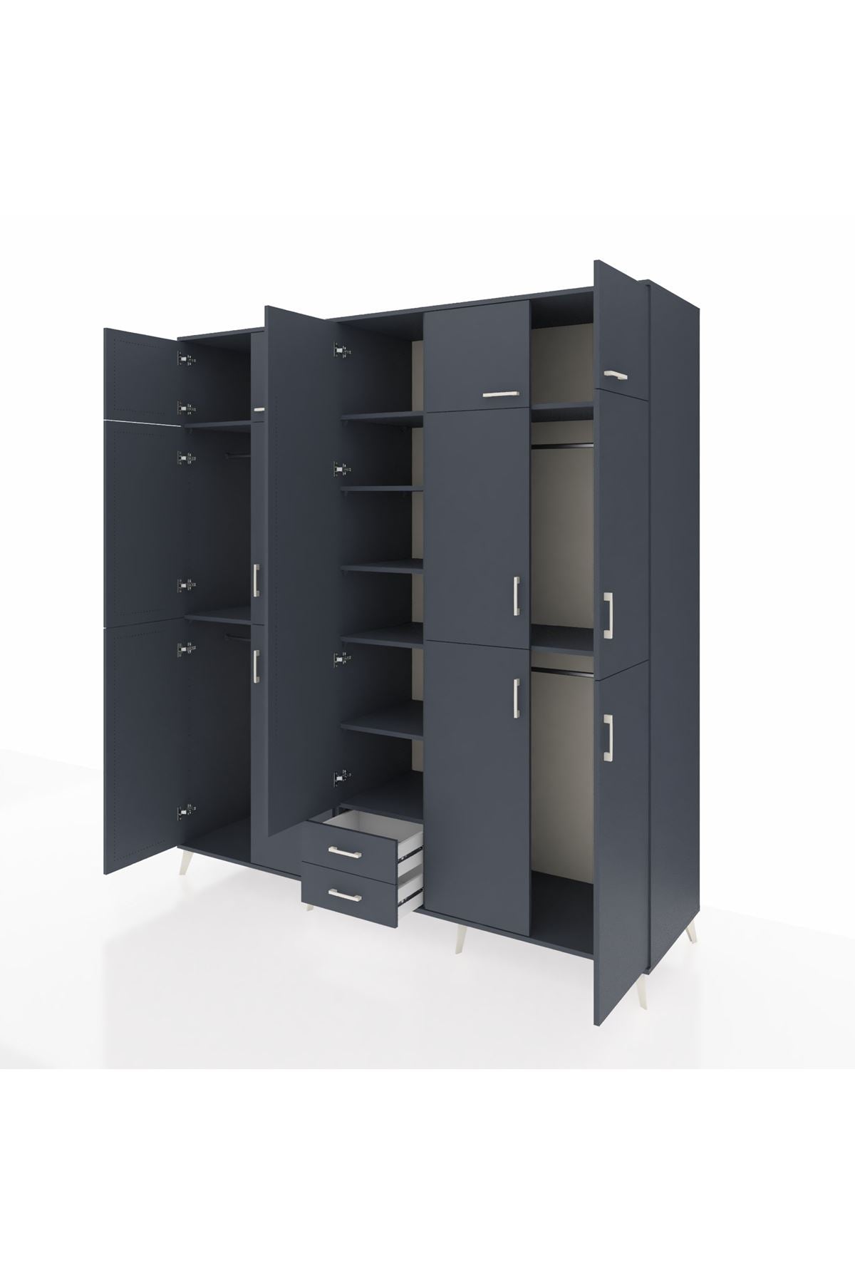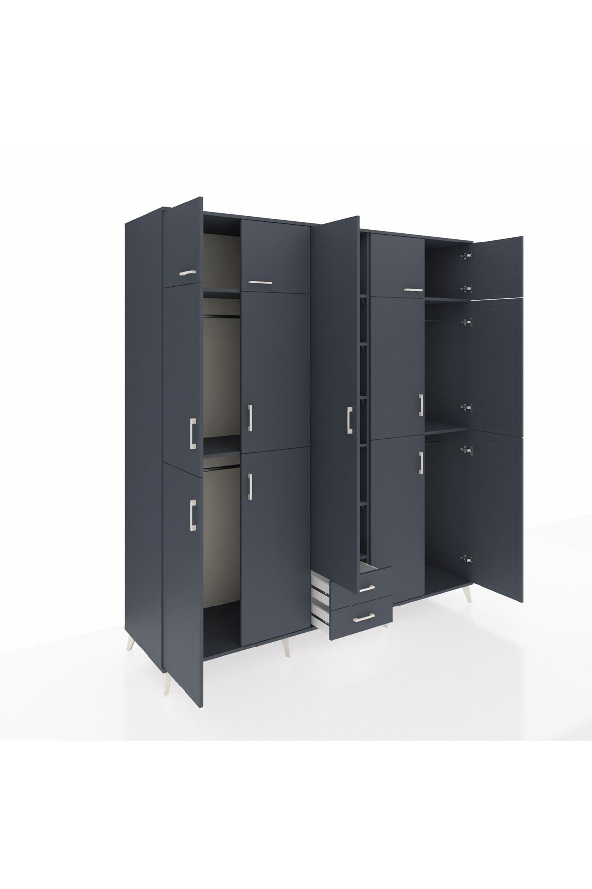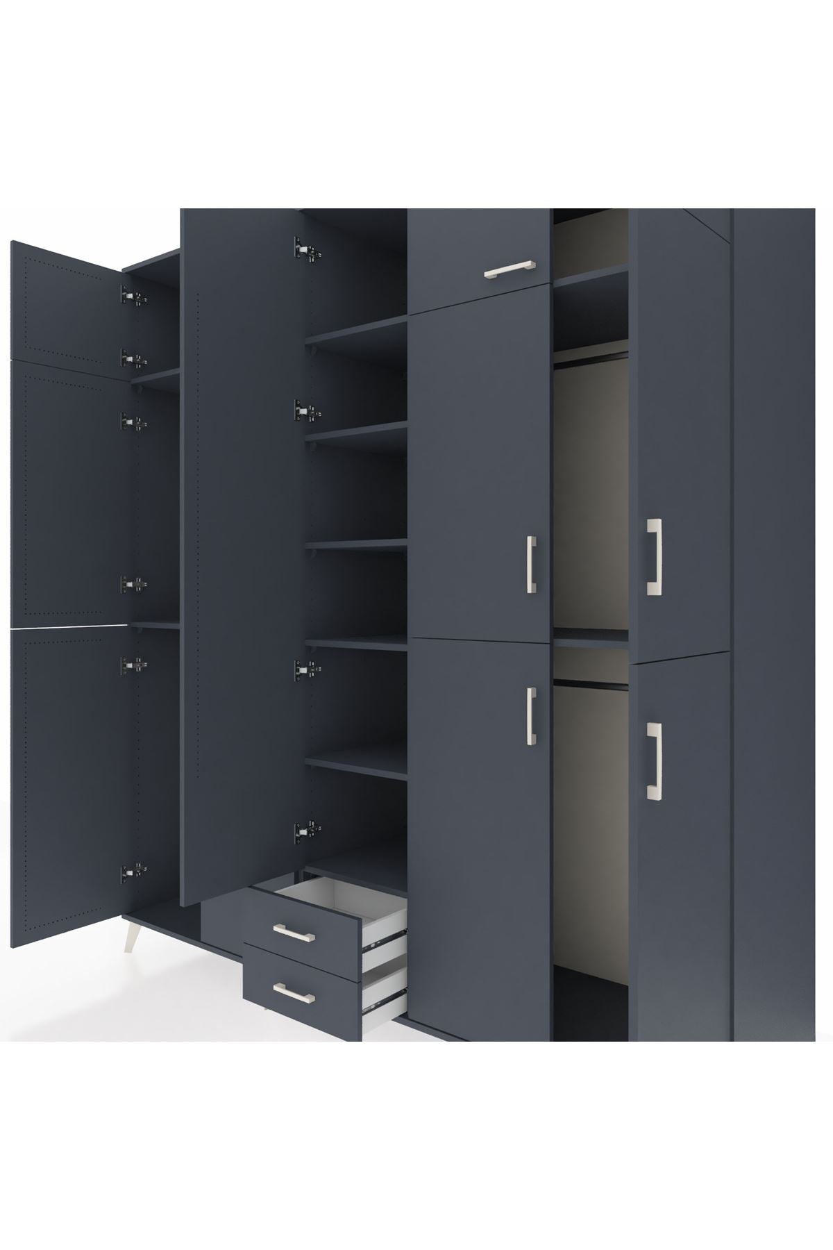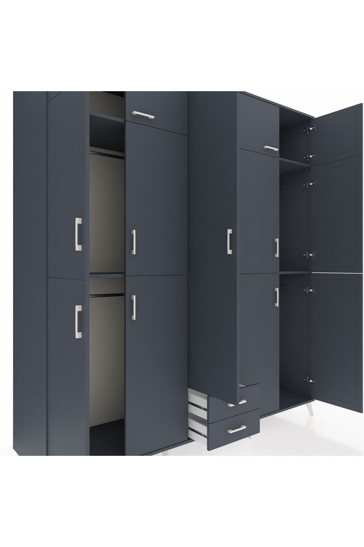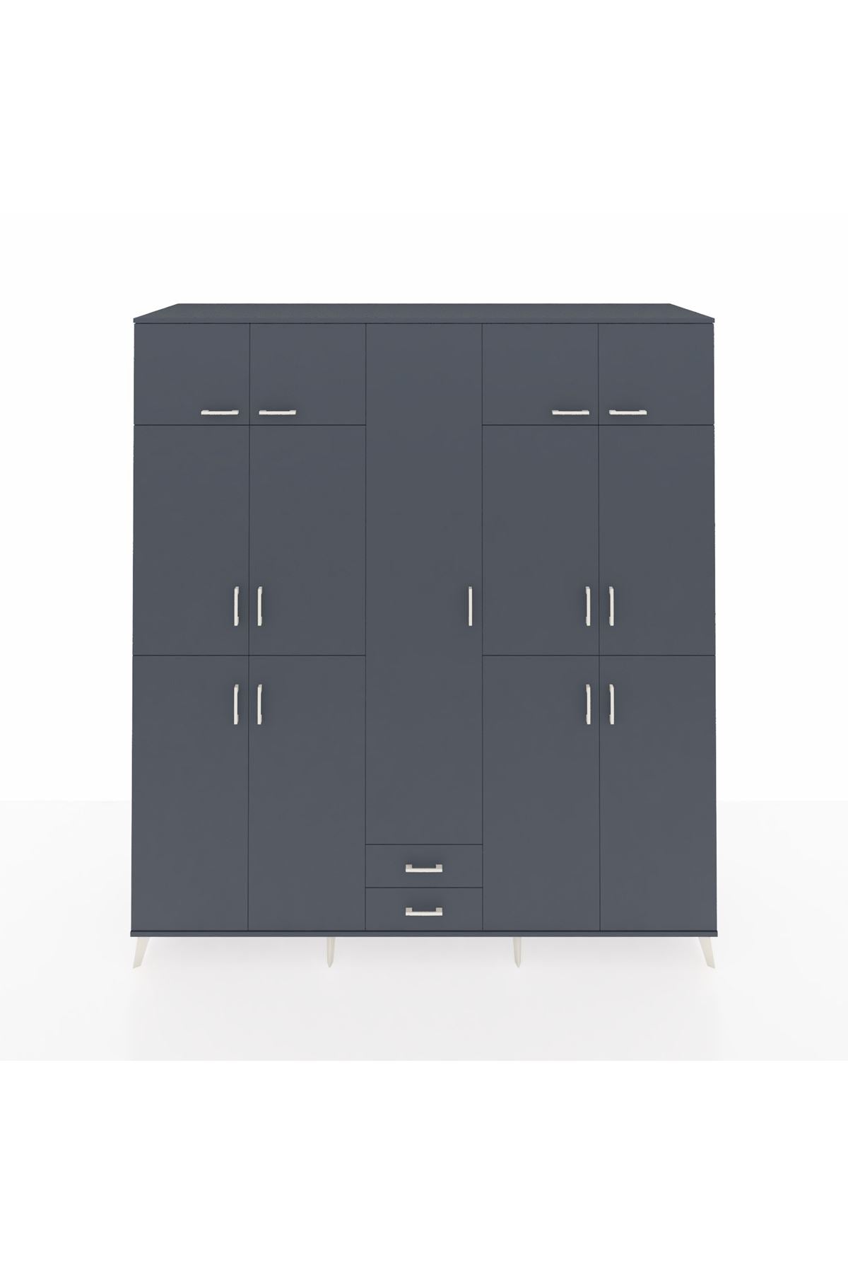 Kronos Dolap 10 Raflı 2 Çekmeceli 4 Askılı 220x59x243 Antrasit-Antrasit/Antrasit