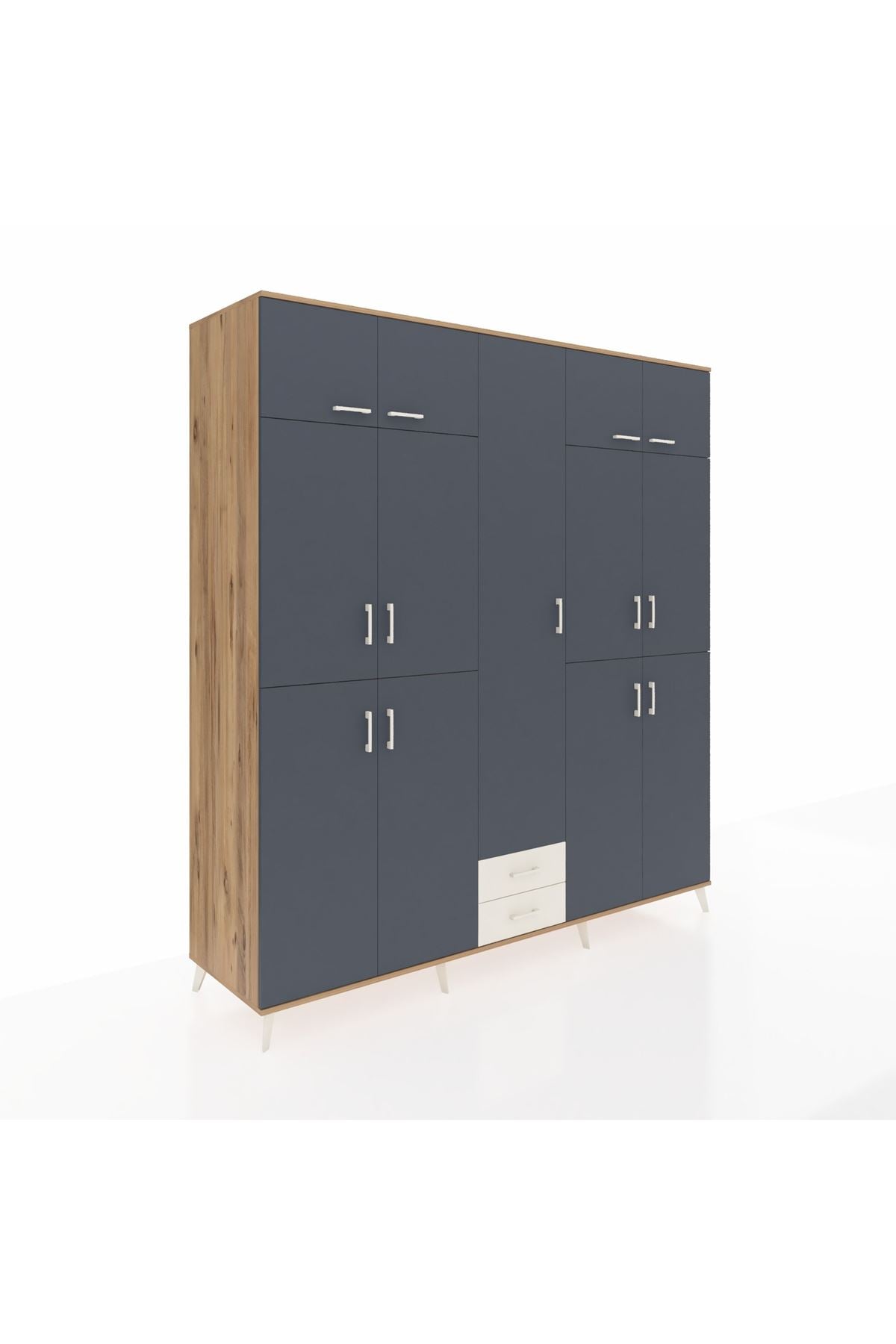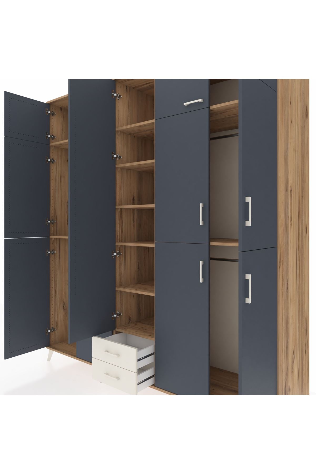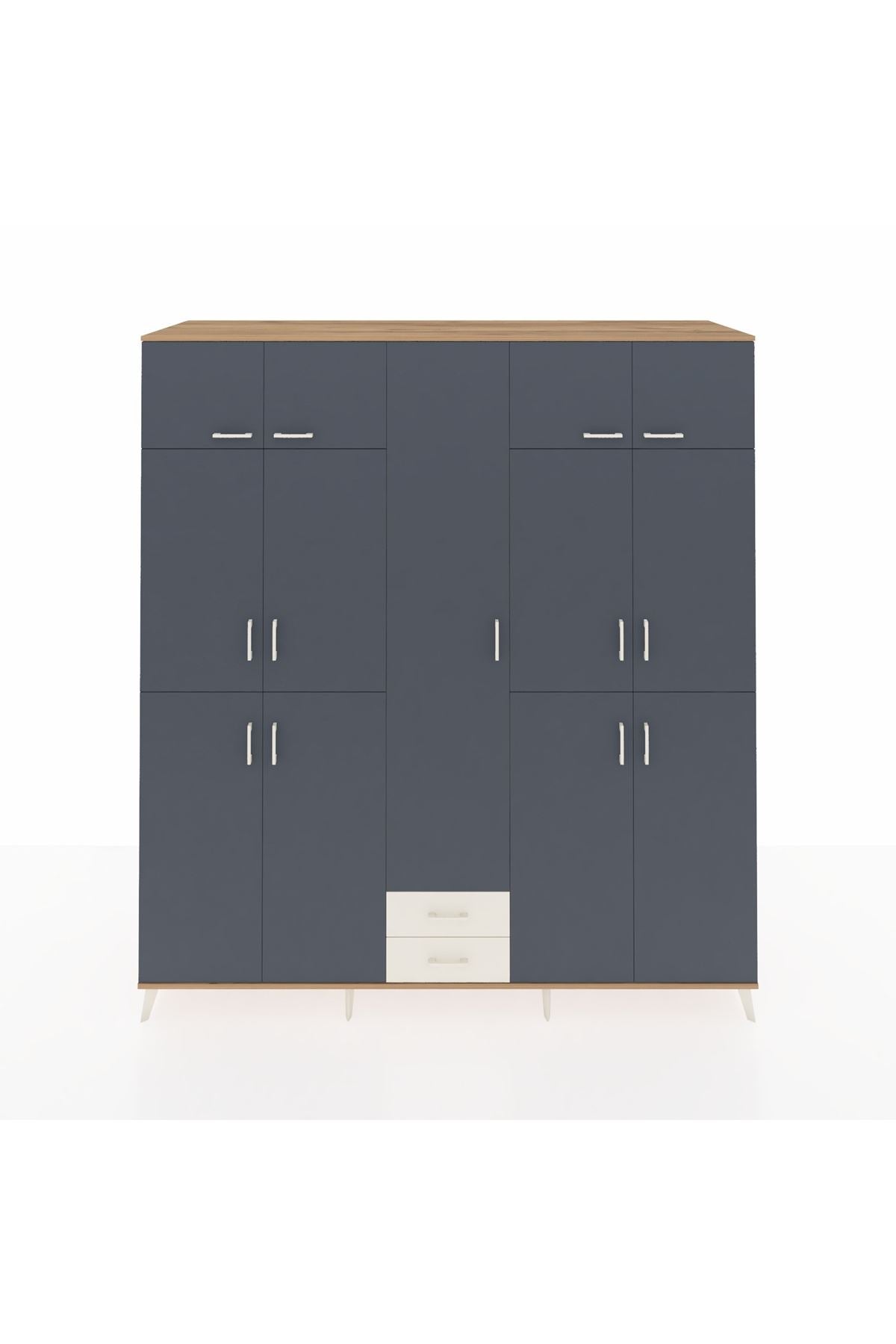 Kronos Dolap 10 Raflı 2 Çekmeceli 4 Askılı 220x59x243 Çam-Antrasit/Aytaşı
