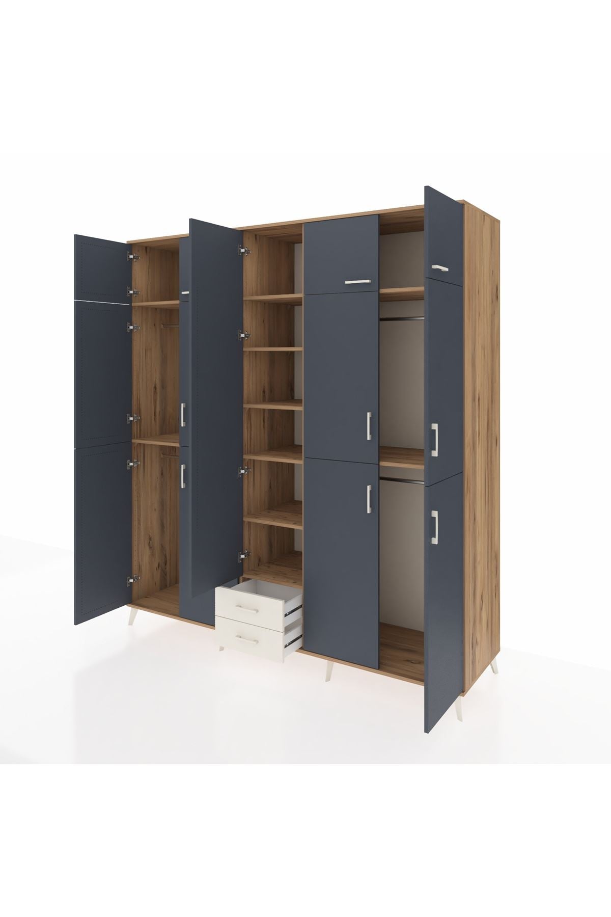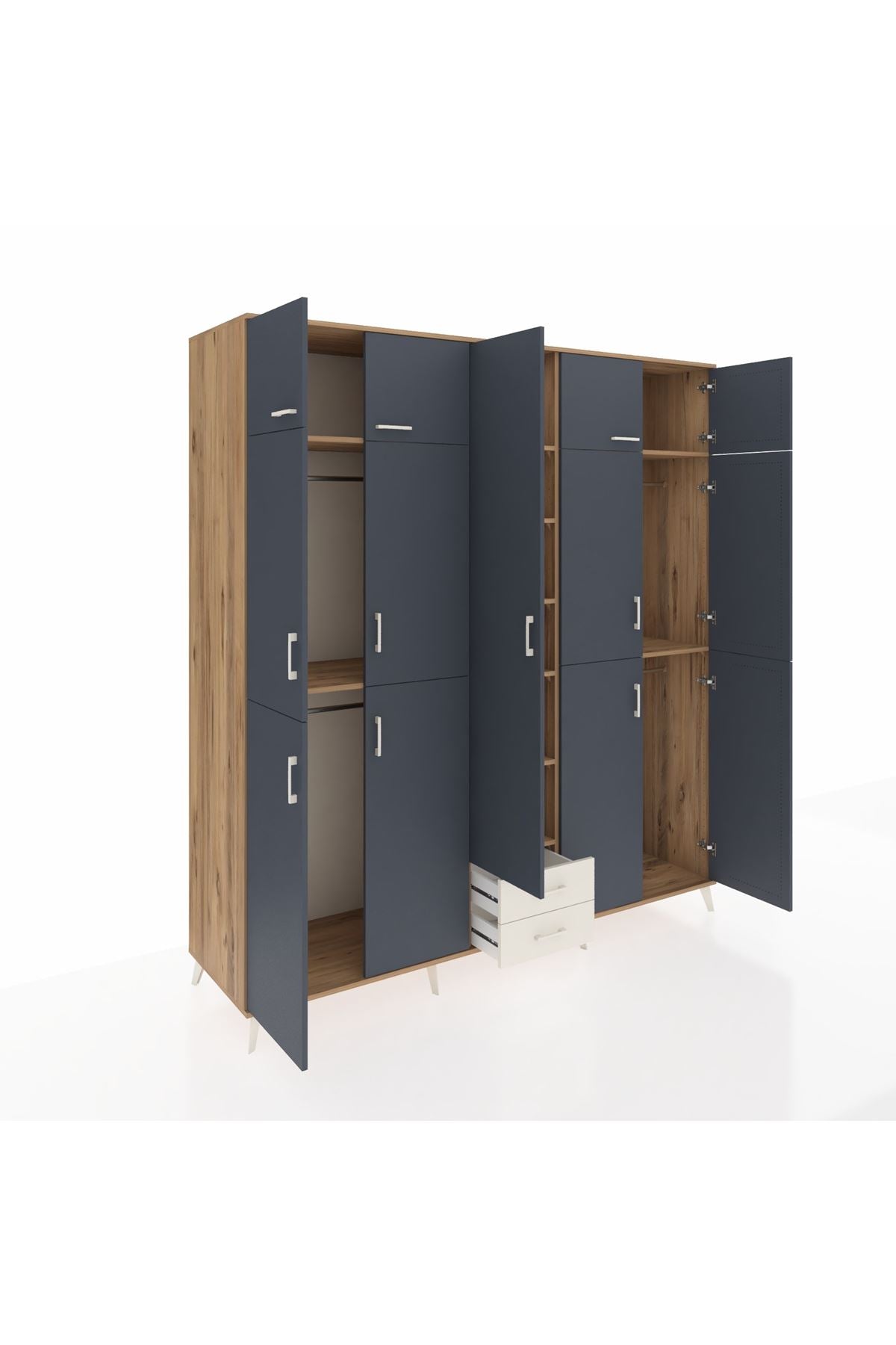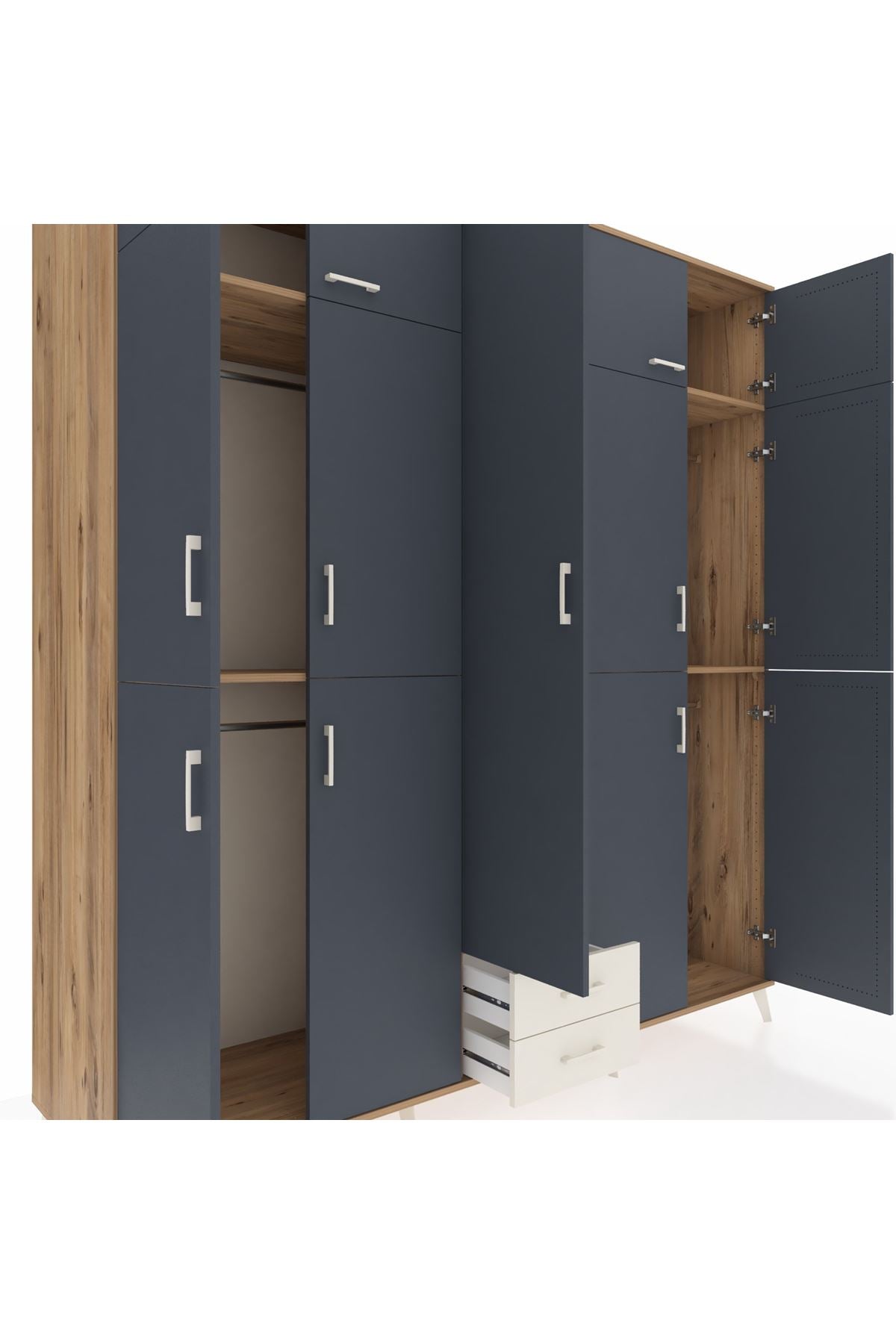 Kronos Dolap 10 Raflı 2 Çekmeceli 4 Askılı 220x59x243 Çam-Antrasit/Aytaşı
